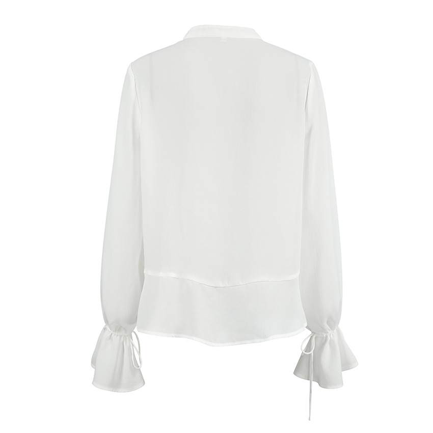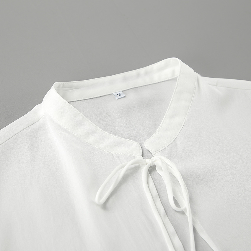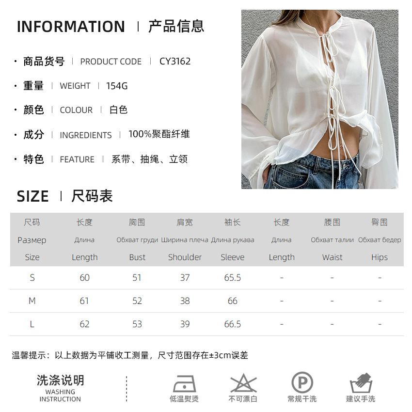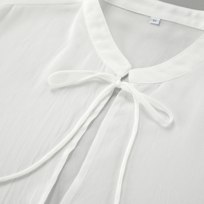 유럽과 미국의 고급스러운 느낌을 주는 러플 레이스업 화이트 쉬폰 셔츠 2025 봄 여름 신상 크로스보더 니치 시스루 탑스토어 가기