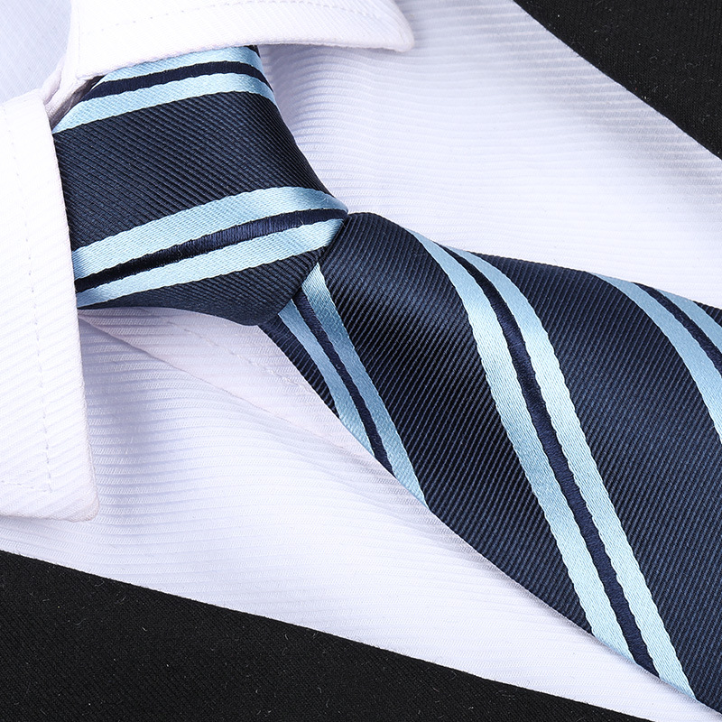• ZSY020 네이비 블루 라이트 블루 스트라이프 실크 핸드 프린팅