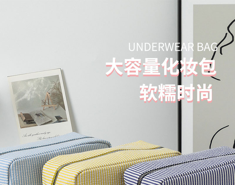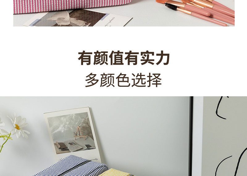 국경 간 유럽과 미국의 Seersucker 화장품 가방 대용량 스트라이프 워시 백 미시시피 인기 여행 보관 가방스토어 가기