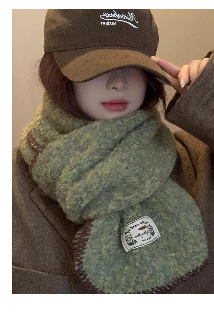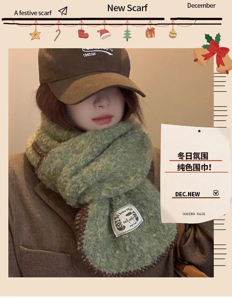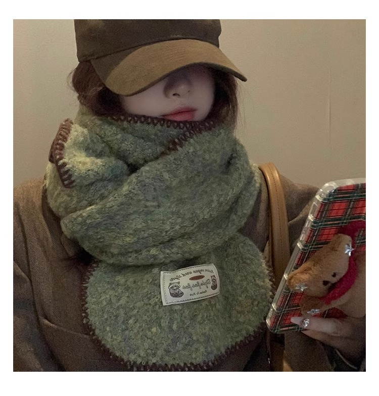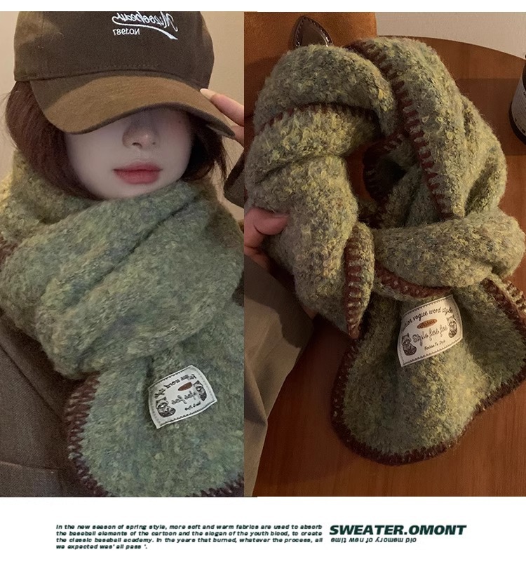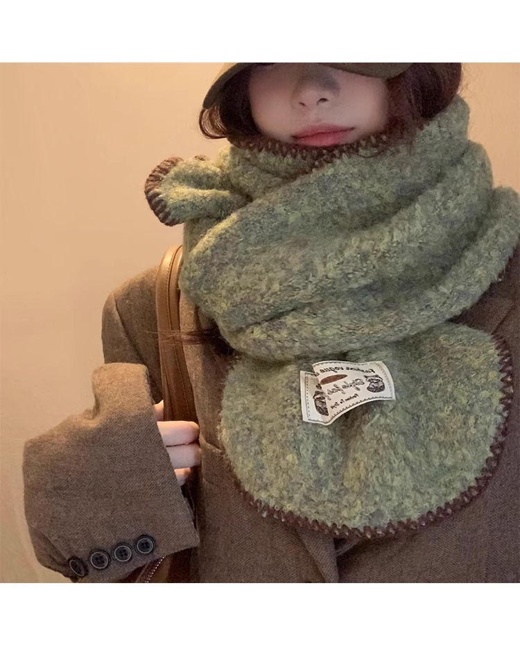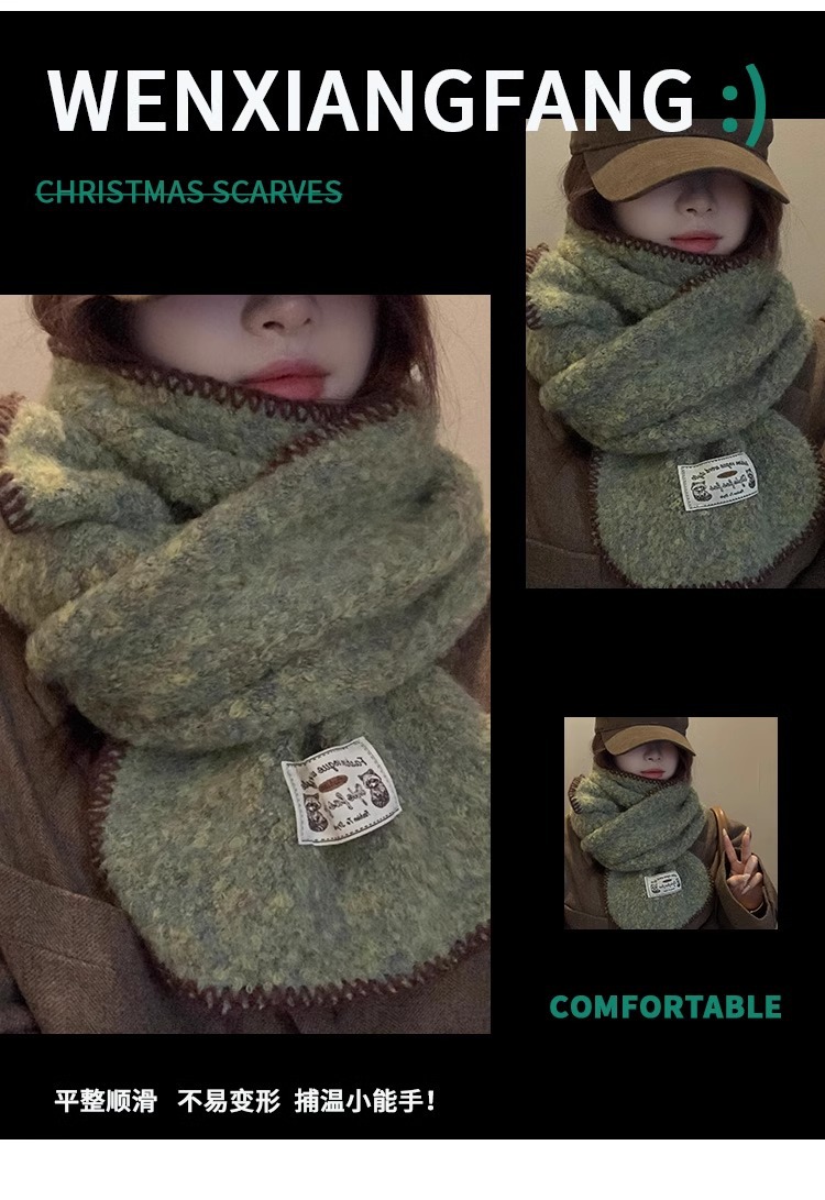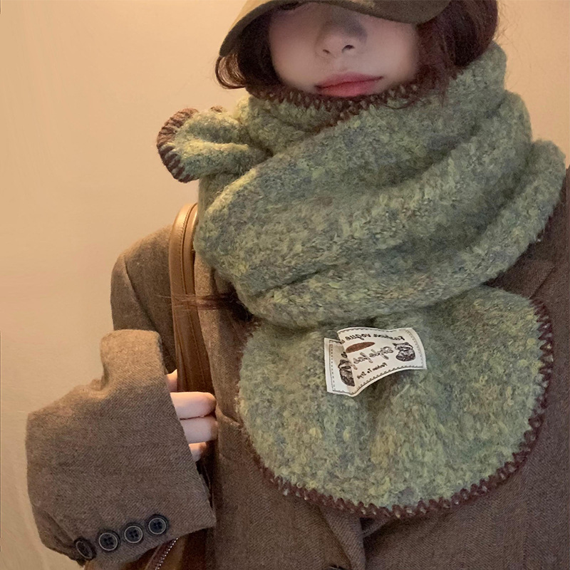 분위기 부드러운 왁스 그린 니트 울 스카프 여성의 2024 가을과 겨울 두꺼운 따뜻한 올 매치 넥 보호 목 패션스토어 가기