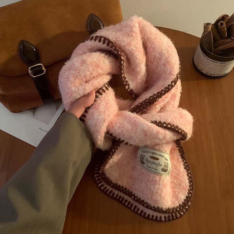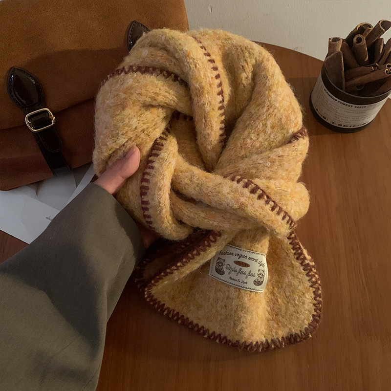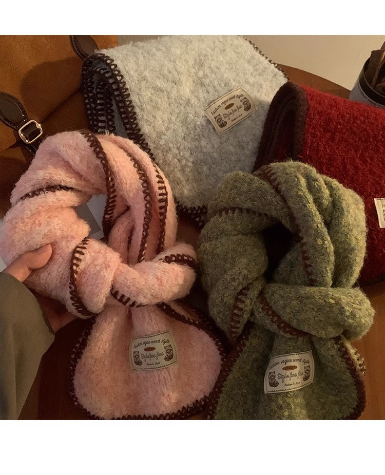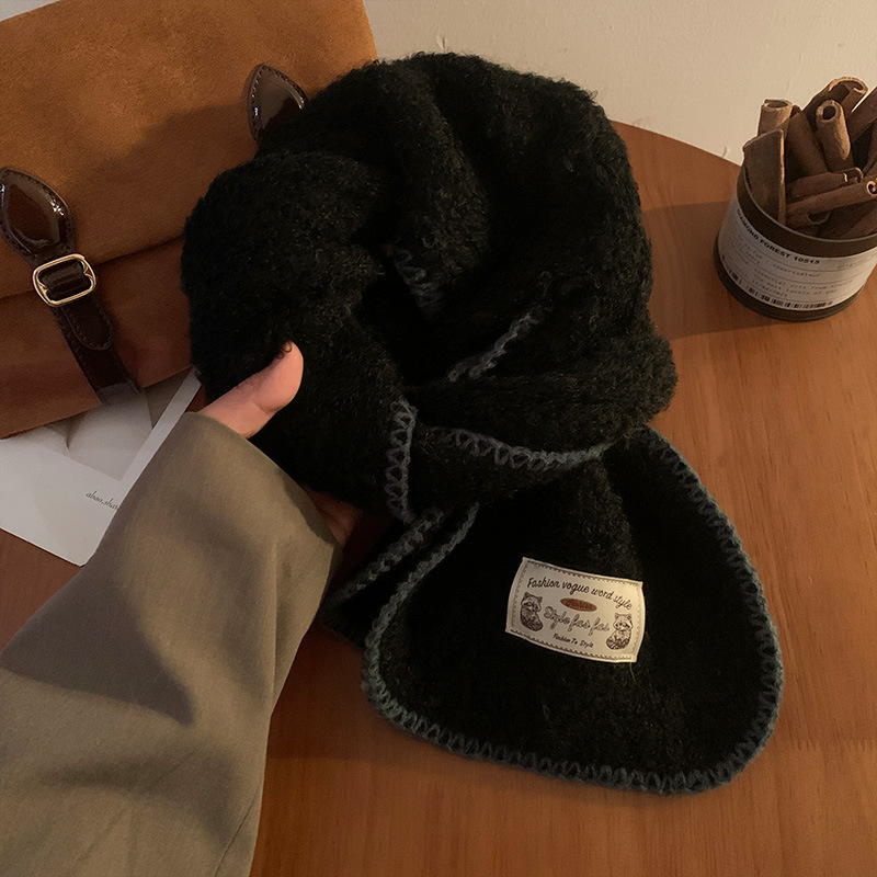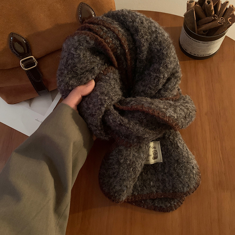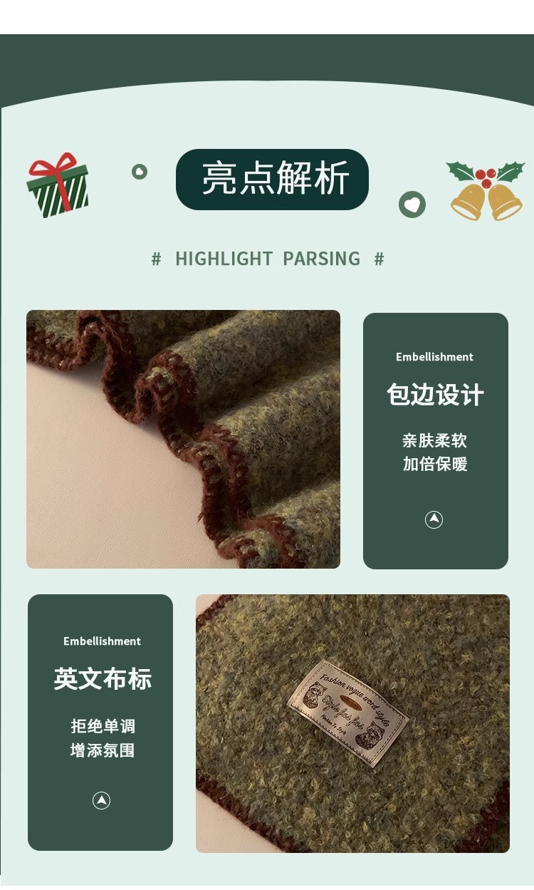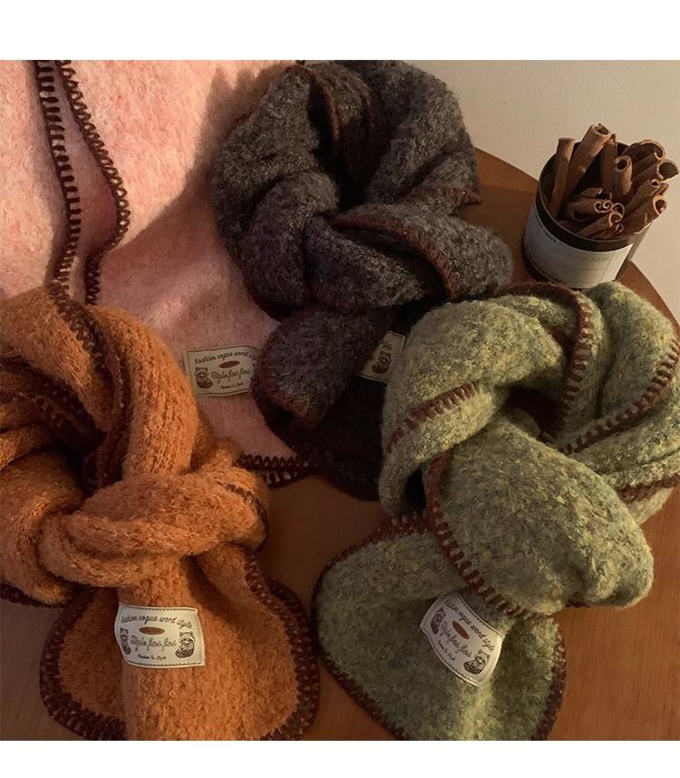 분위기 부드러운 왁스 그린 니트 울 스카프 여성의 2024 가을과 겨울 두꺼운 따뜻한 올 매치 넥 보호 목 패션스토어 가기