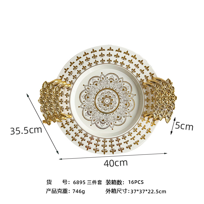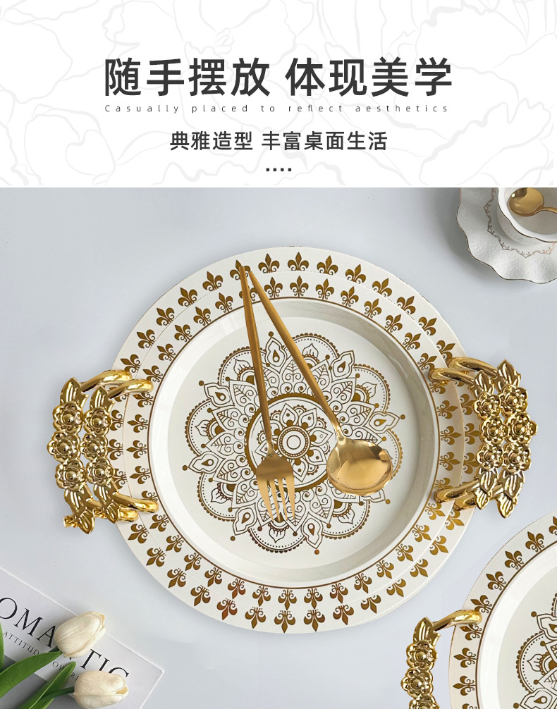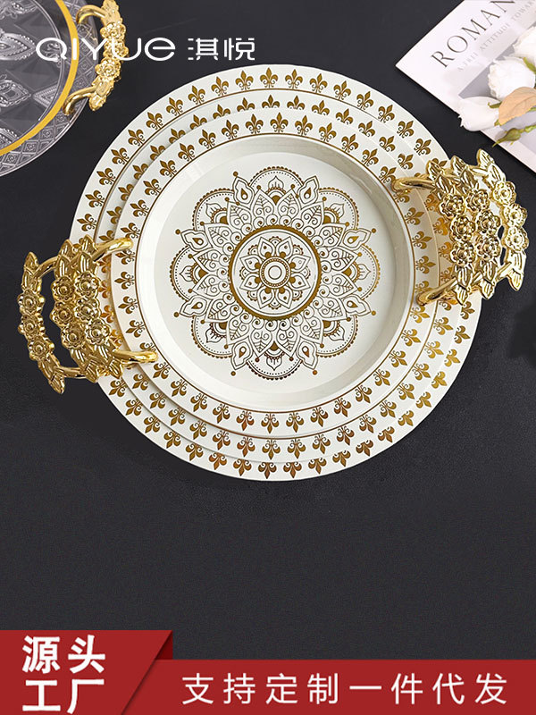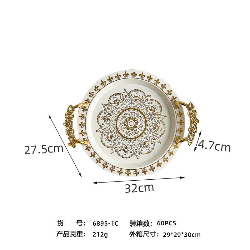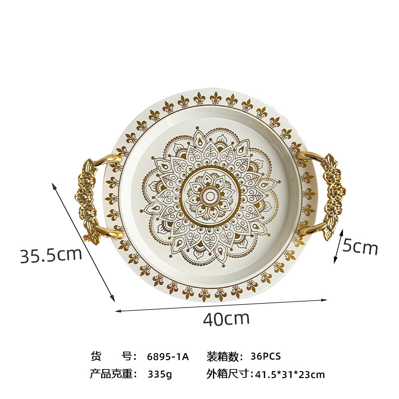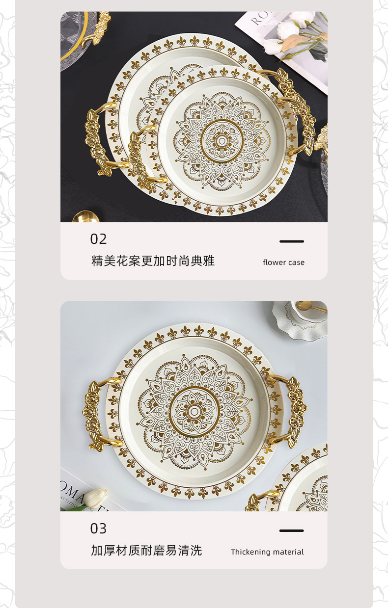라운드 브론 징 화이트 트레이 제조 업체 도매 북유럽 빛 고급 과일 트레이 티 트레이 높은 호텔 트레이 유럽 플레이트