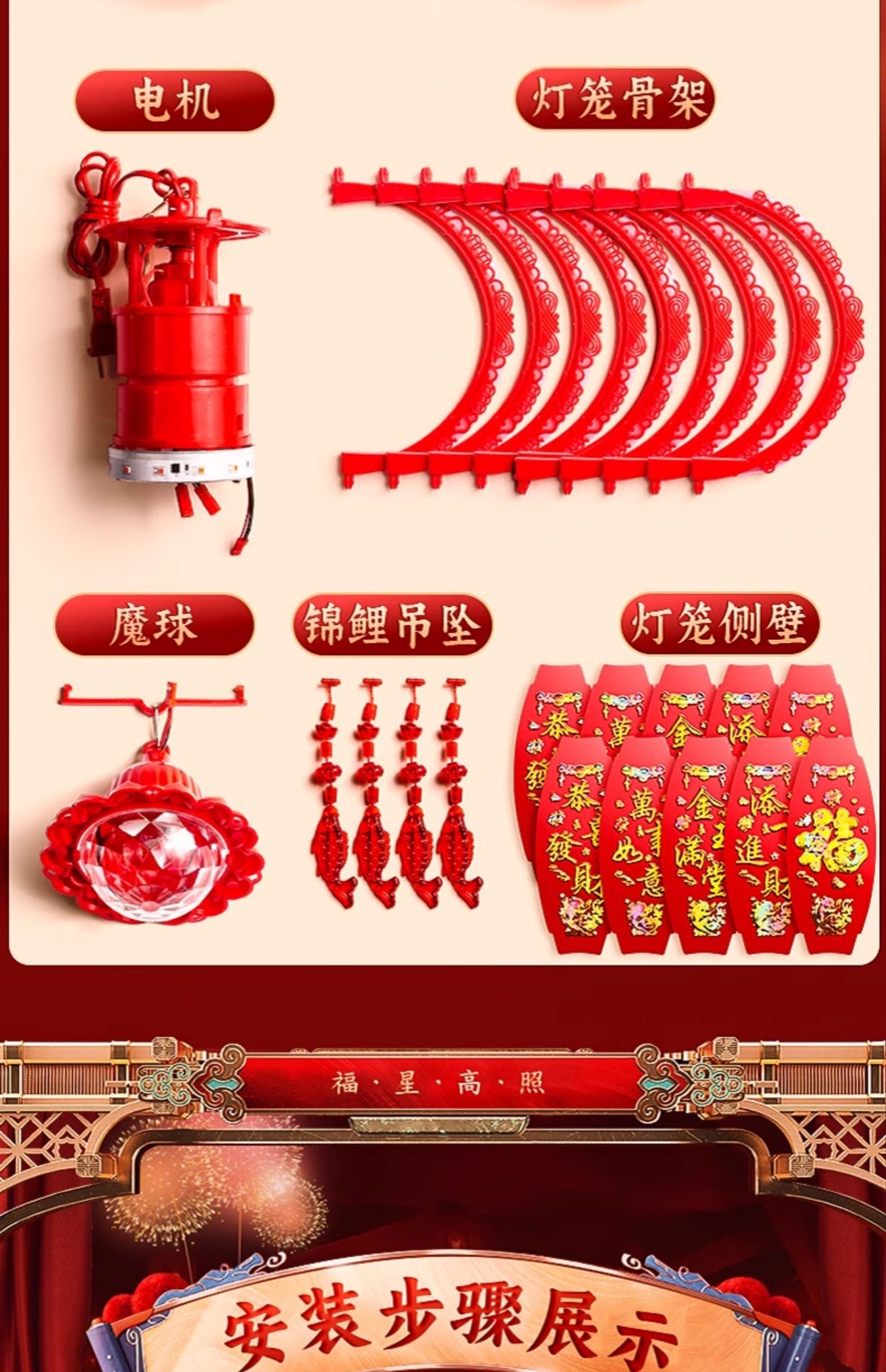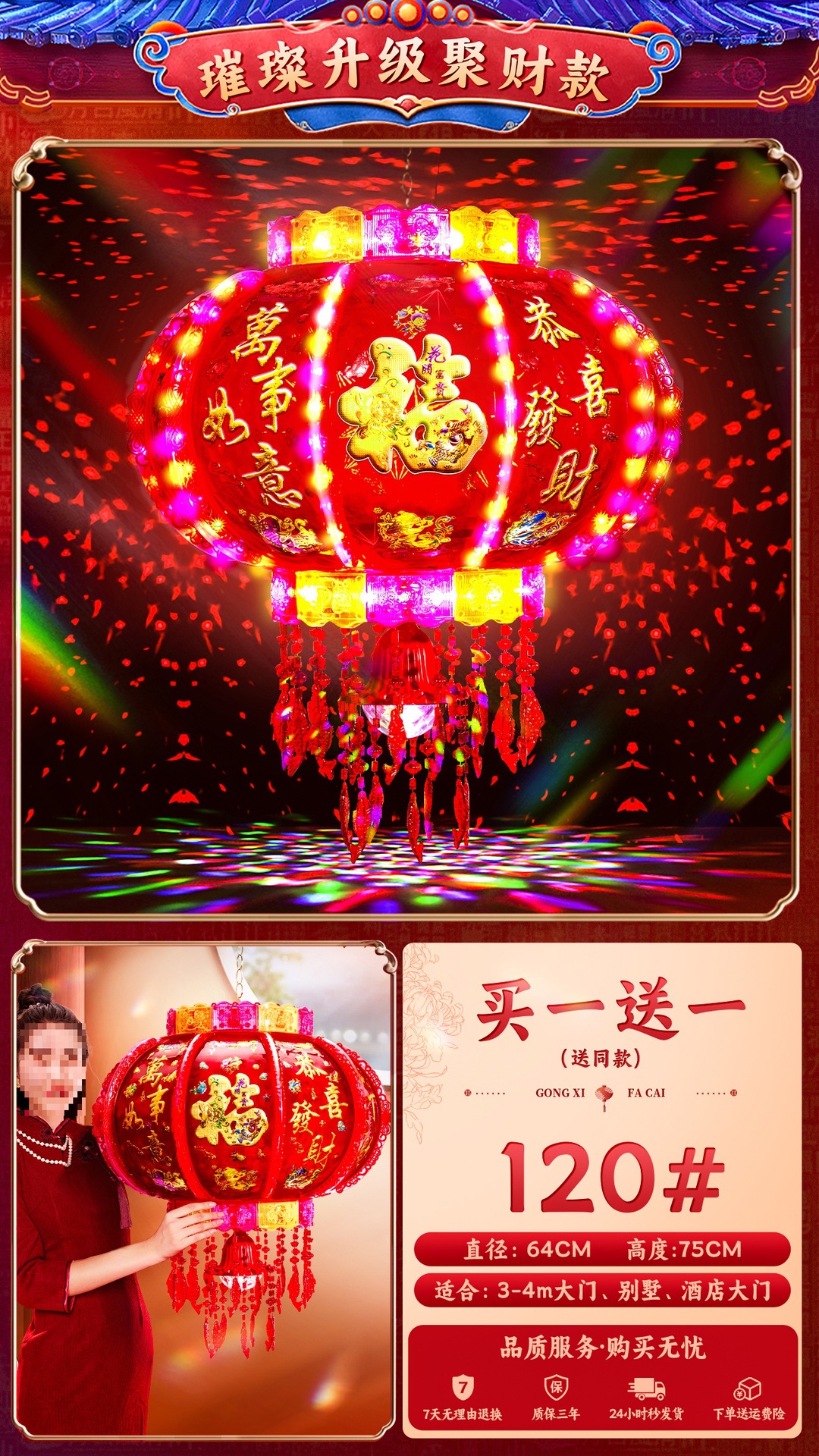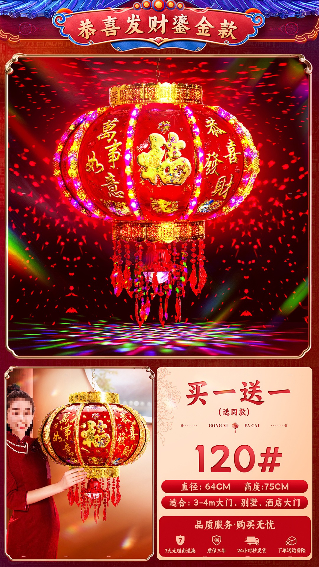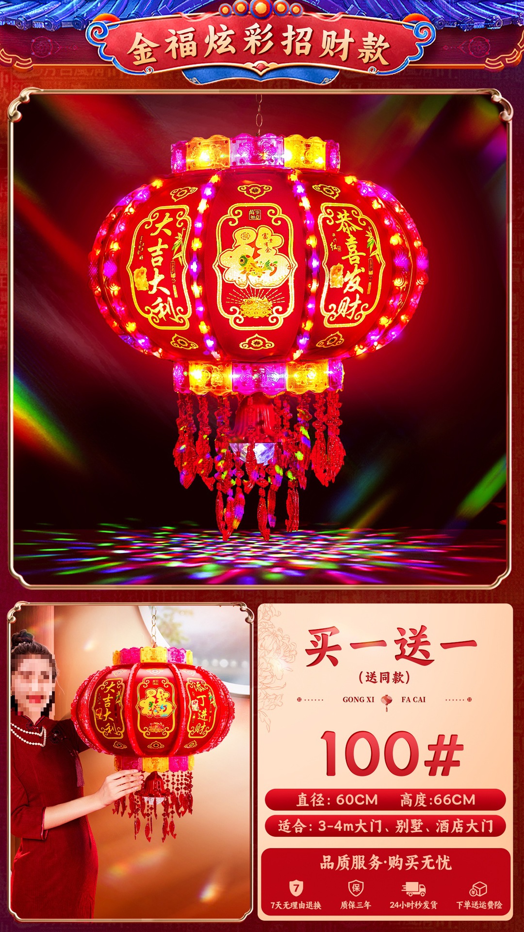 2024 새로운 회전 랜턴 게이트 화려한 구정 행운의 캐릭터 산책 랜턴 발코니 결혼식 집들이 장식스토어 가기