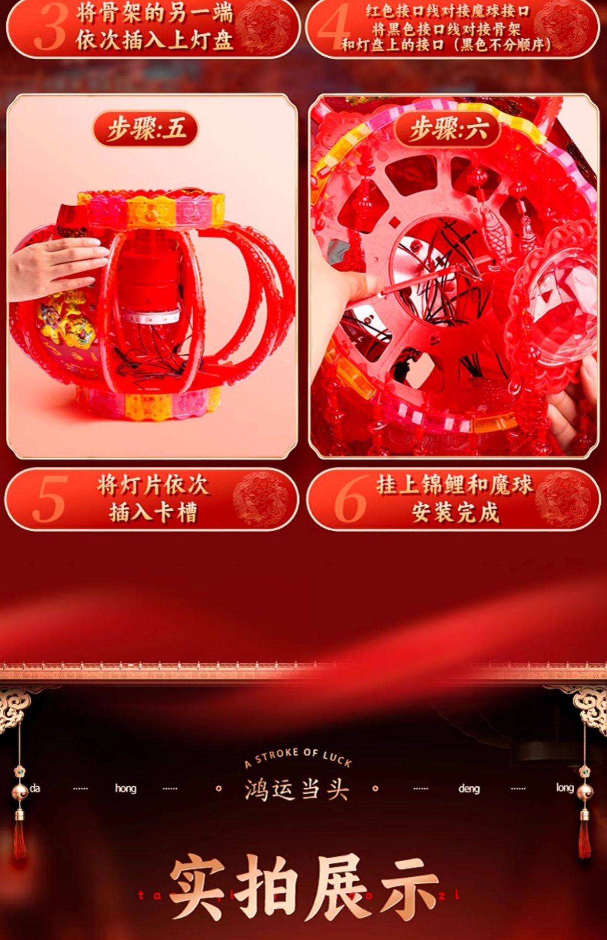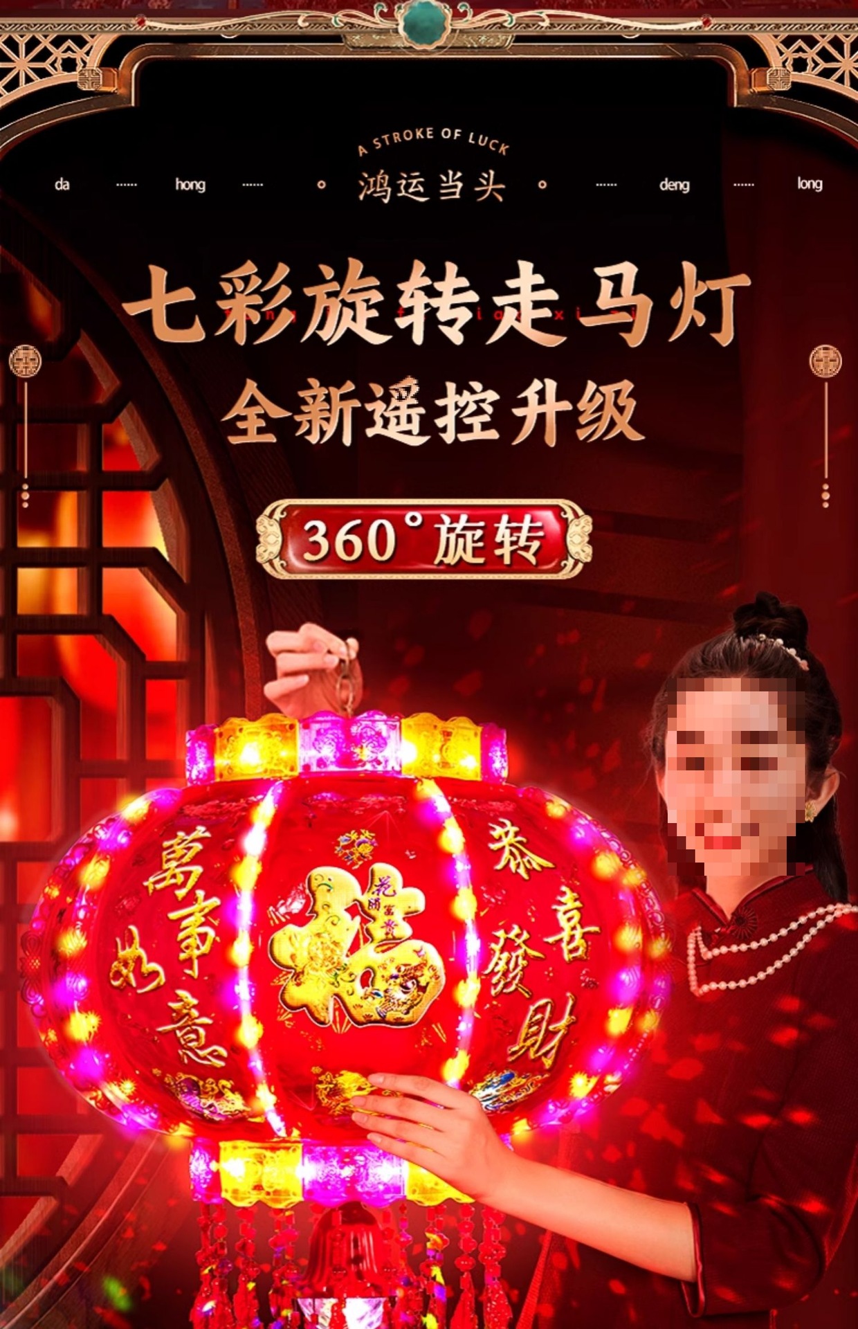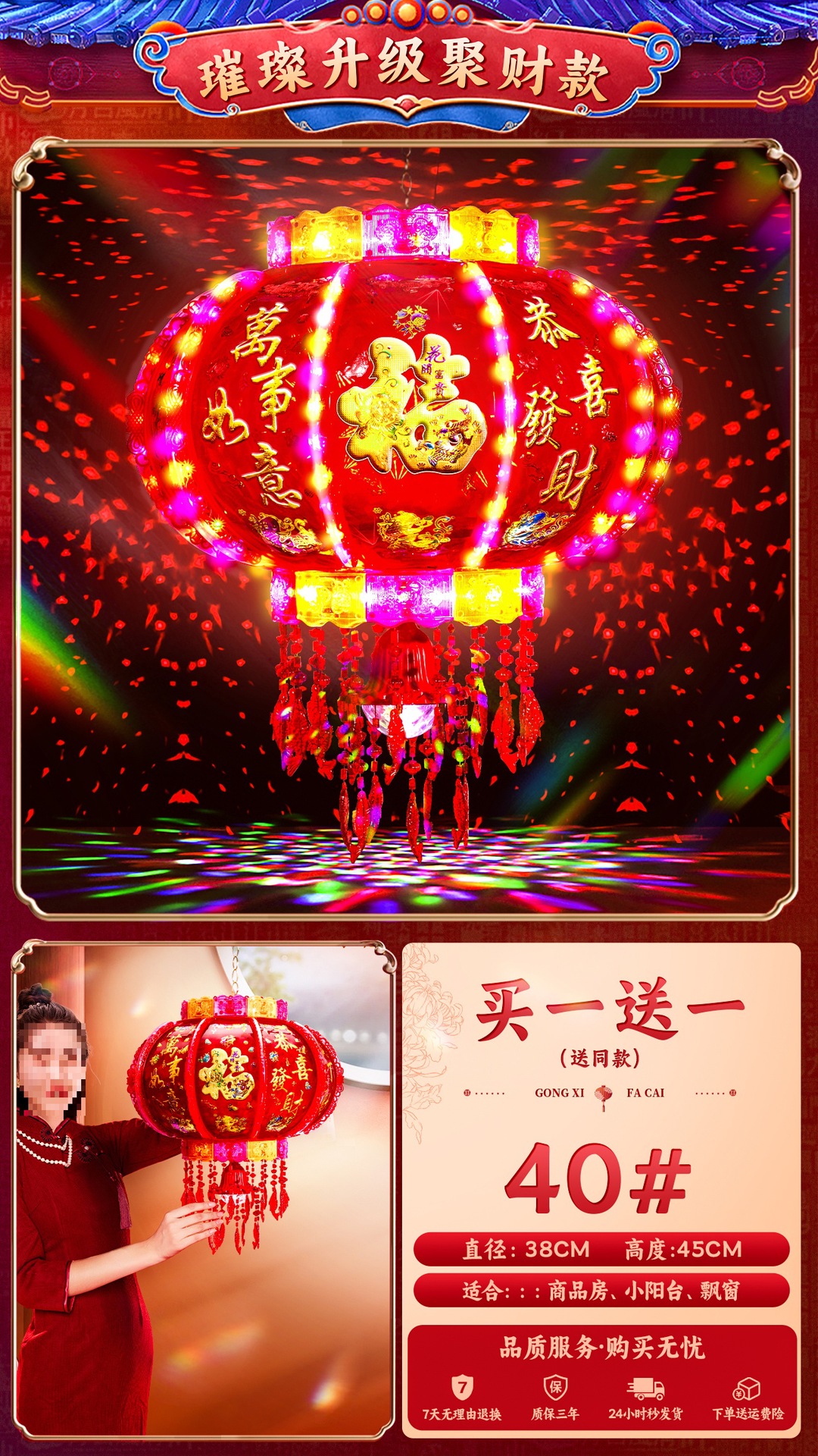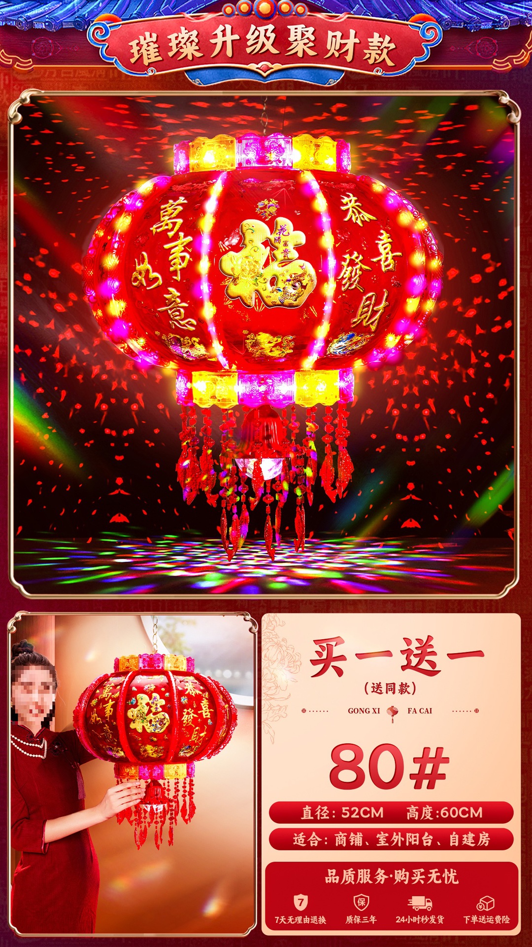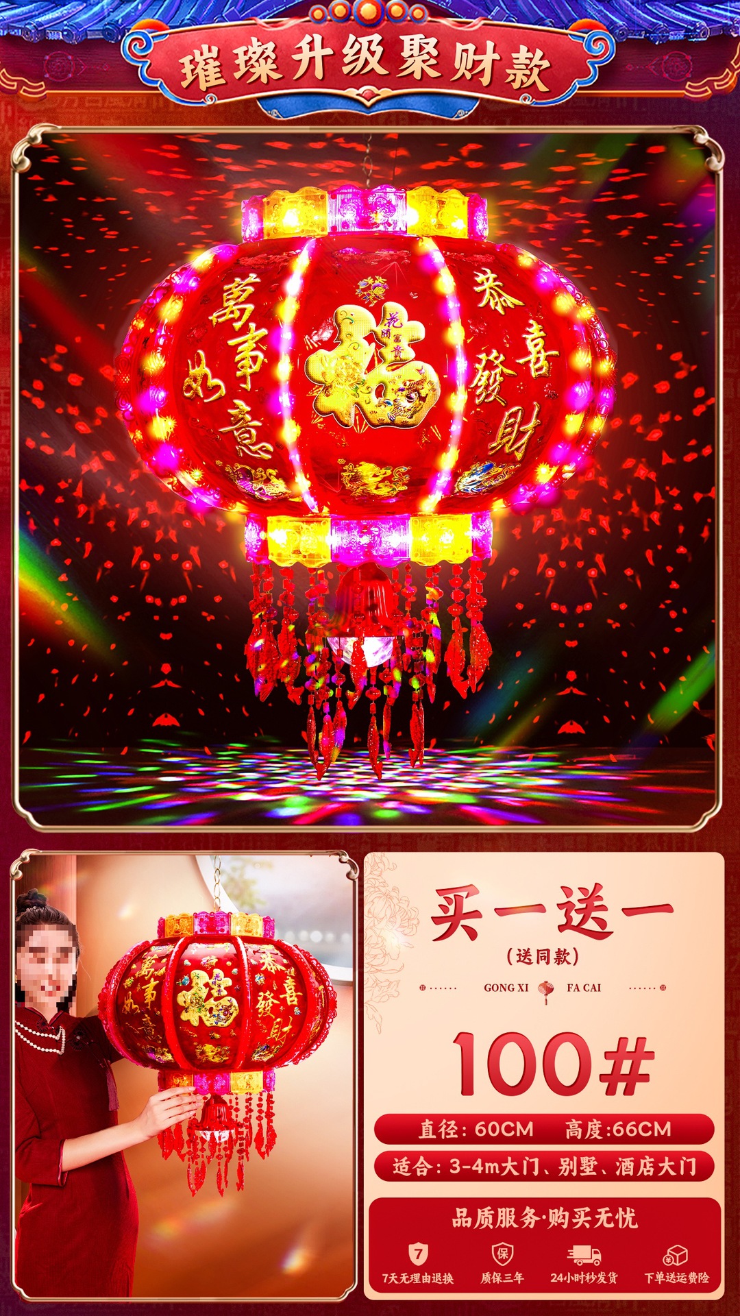 2024 새로운 회전 랜턴 게이트 화려한 구정 행운의 캐릭터 산책 랜턴 발코니 결혼식 집들이 장식스토어 가기