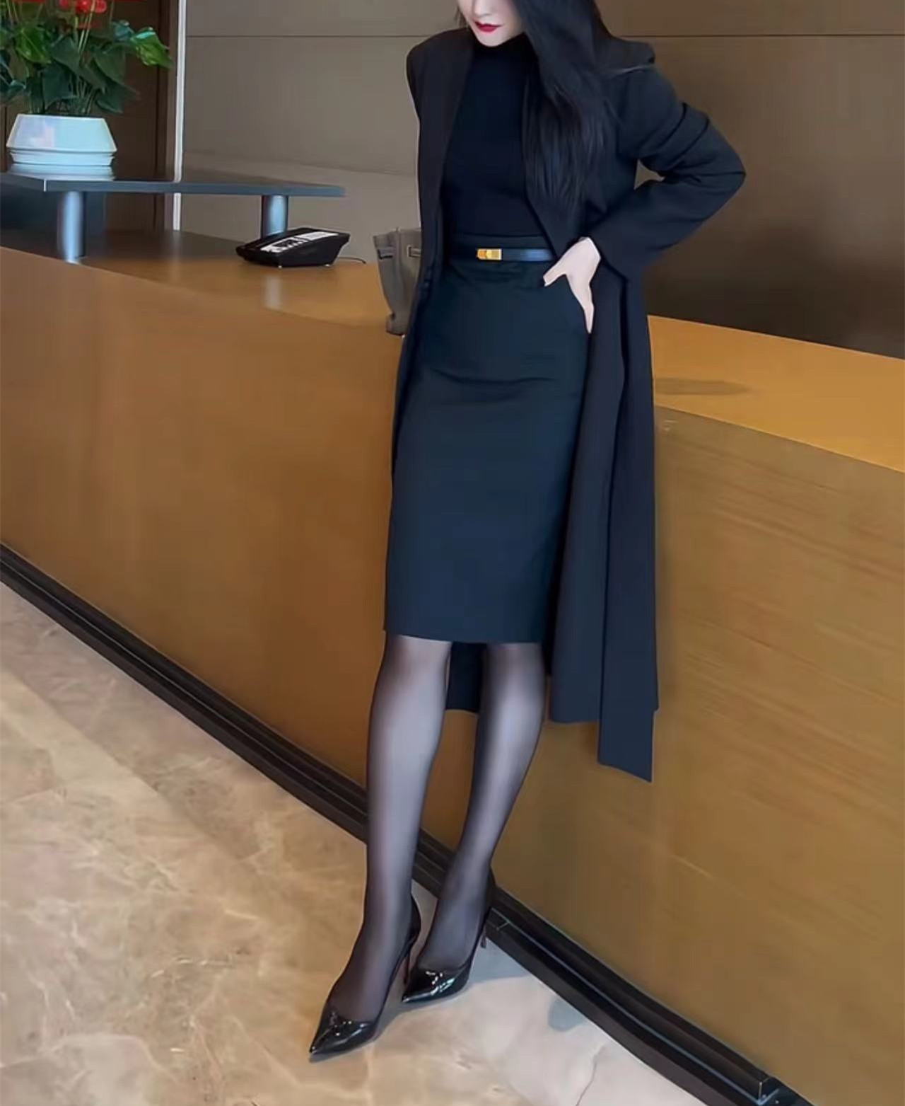 241006 빅 뷰티 에이미위안 2025 우아한 스타일 중간 길이 코트 슬림핏 이너웨어 스커트 여성용 슬림핏 패션스토어 가기
