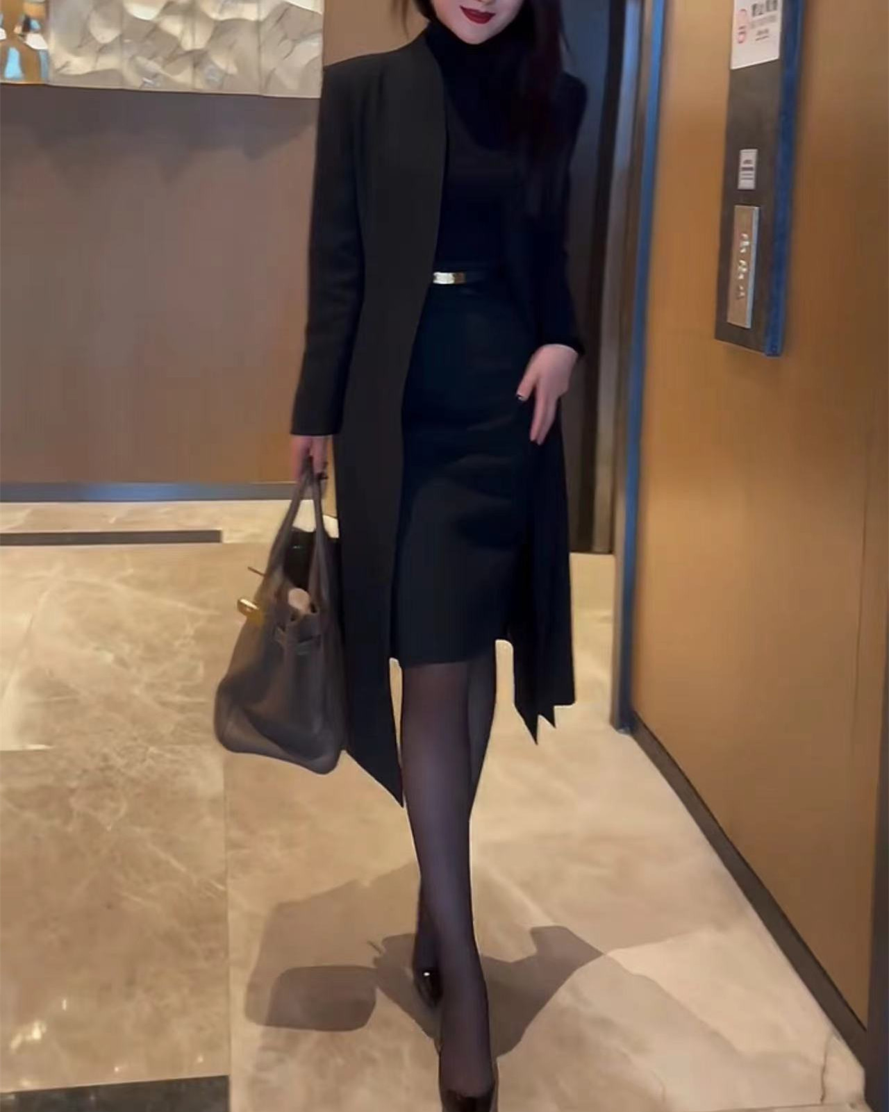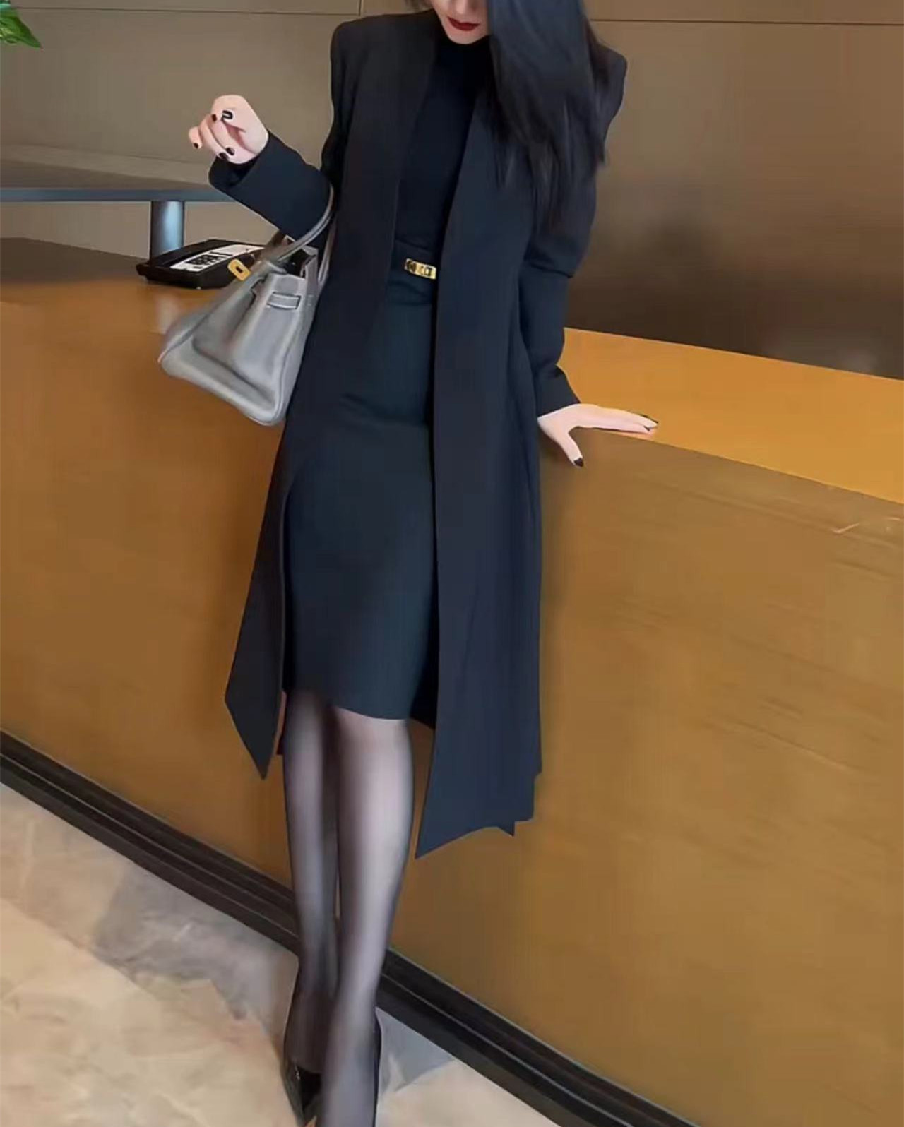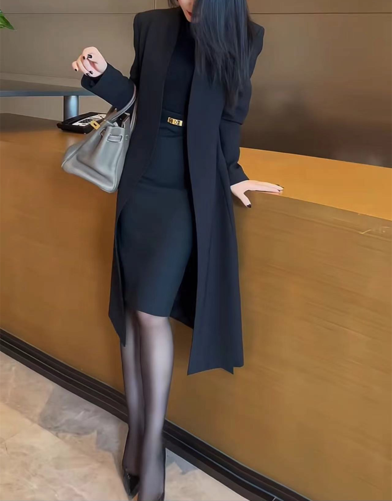 241006 빅 뷰티 에이미위안 2025 우아한 스타일 중간 길이 코트 슬림핏 이너웨어 스커트 여성용 슬림핏 패션