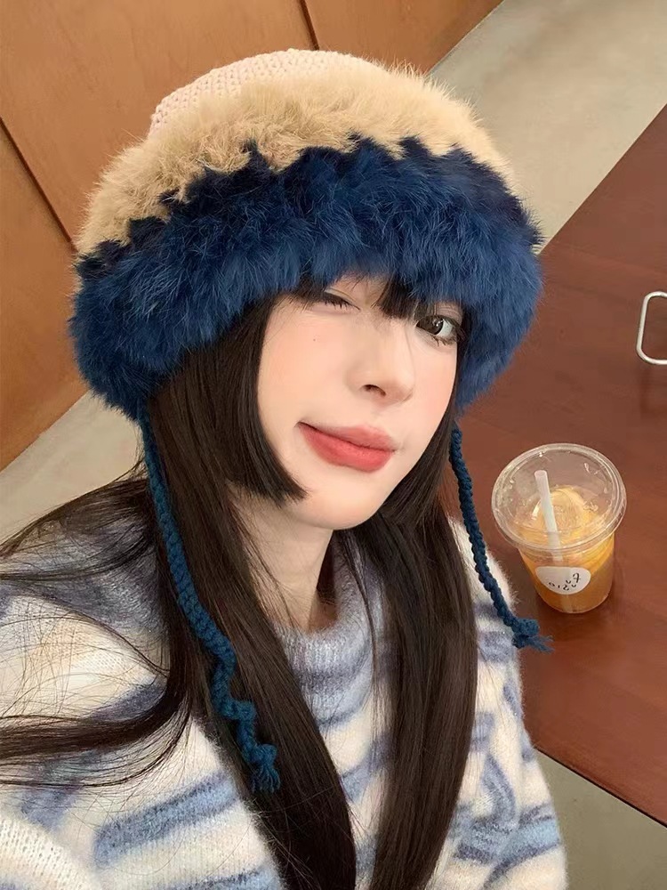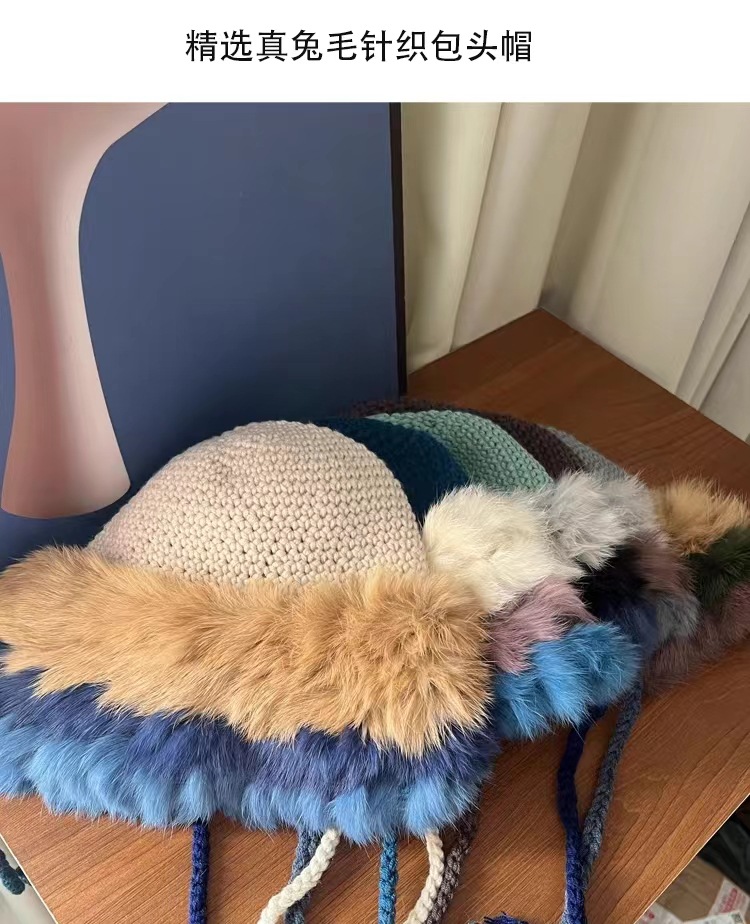 手工针织帽,兔毛色差不在退换范畴内,介意者慎拍