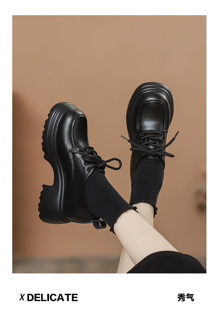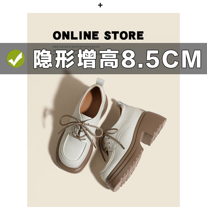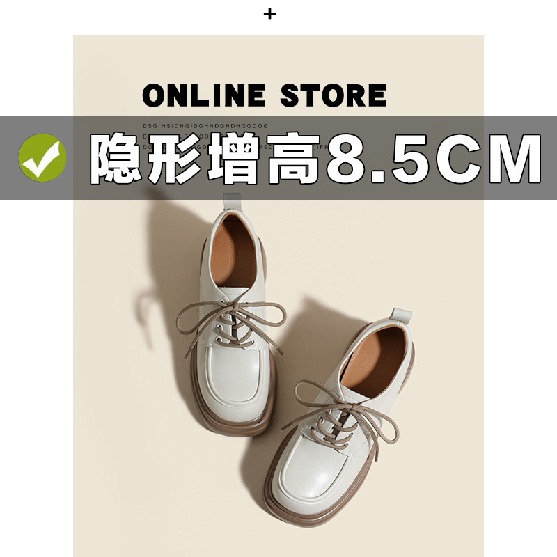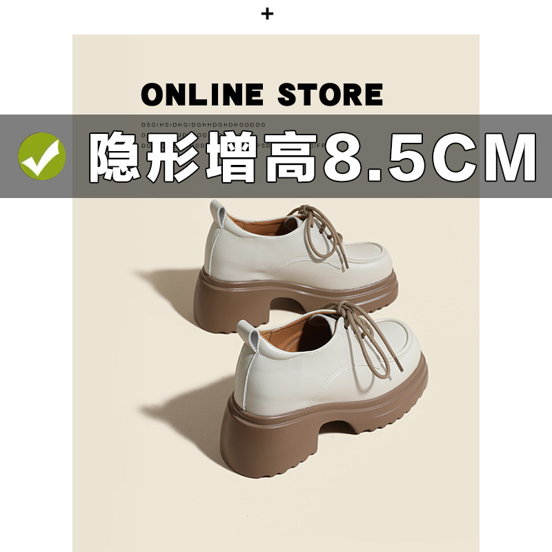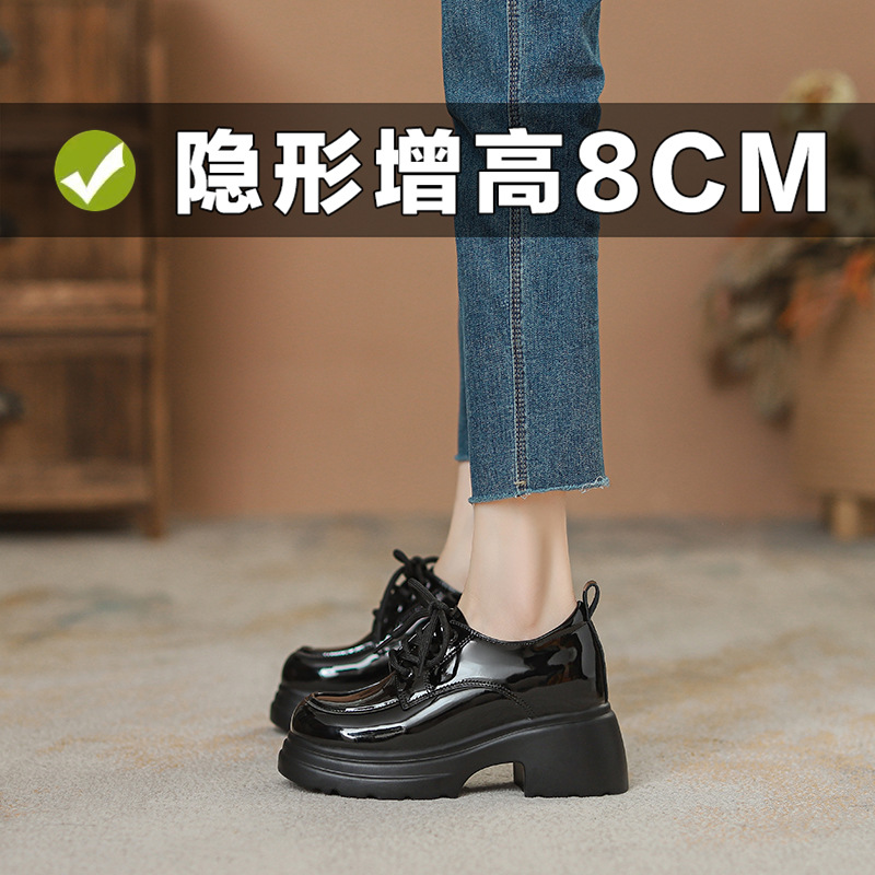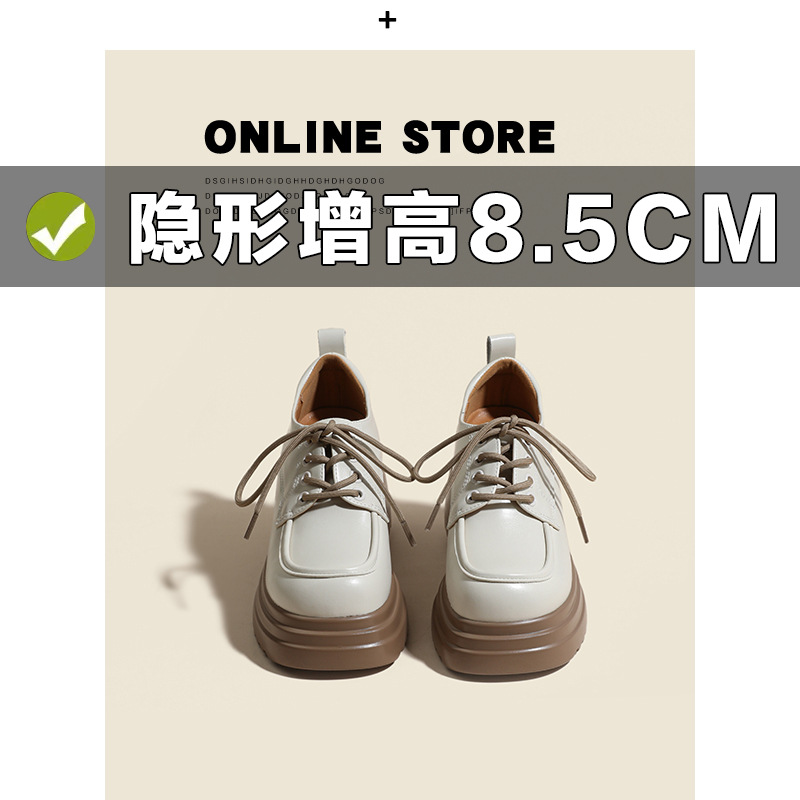내부 키높이 여성용 가죽 신발 2025 봄 신상 플랫폼 슈즈 두꺼운 밑창 로퍼 두꺼운 굽 끈 묶는 8.5CM 단화스토어 가기