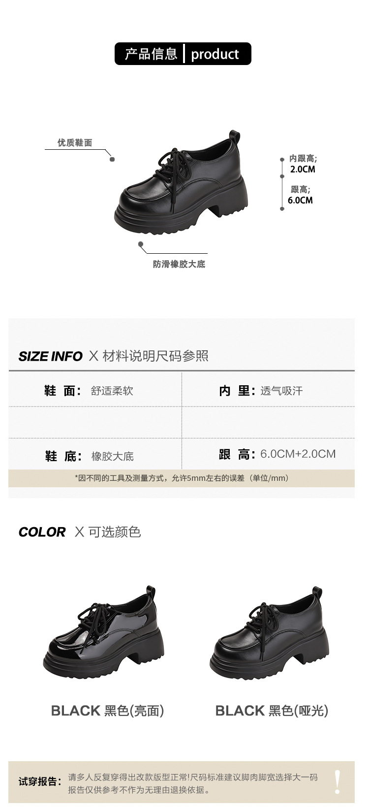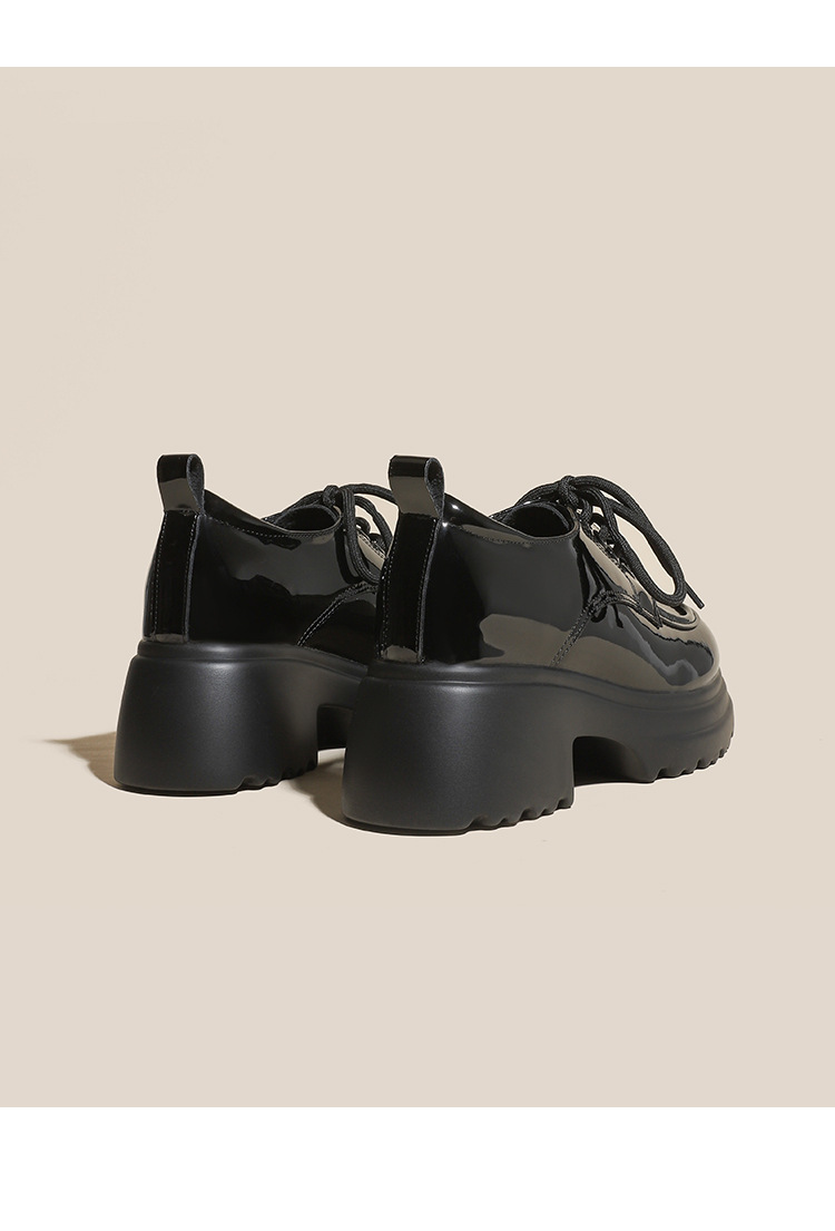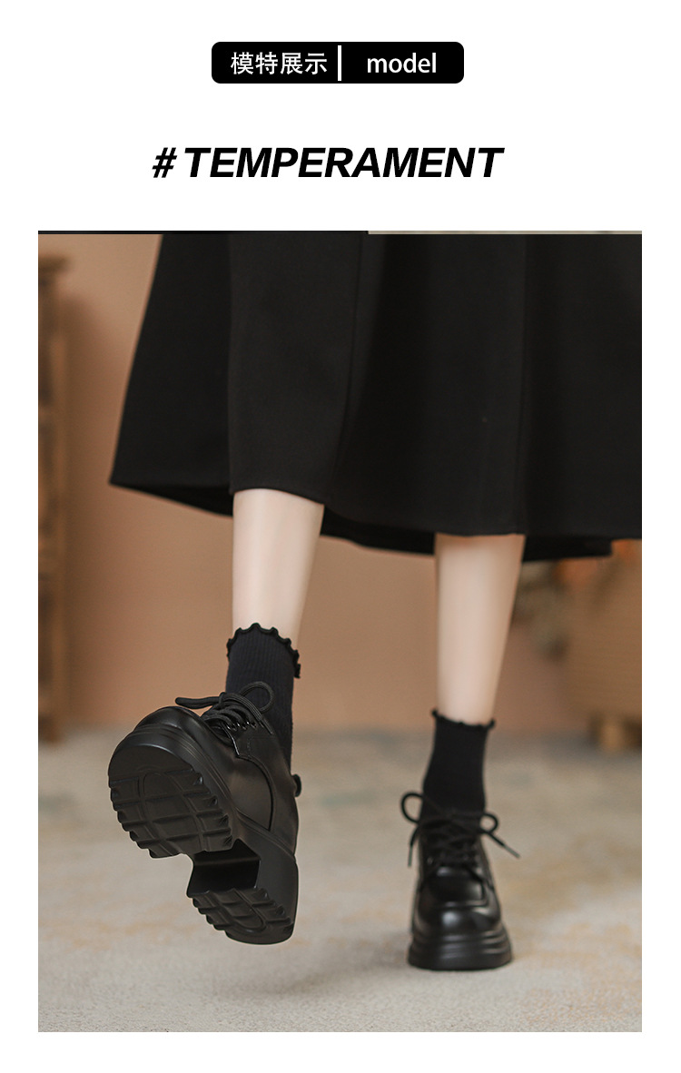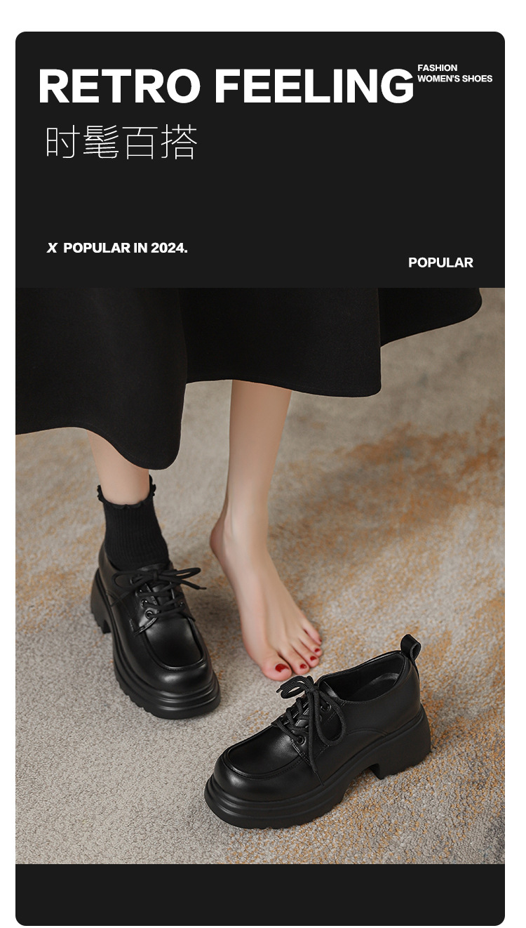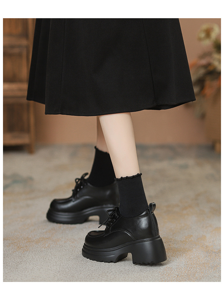 내부 키높이 여성용 가죽 신발 2025 봄 신상 플랫폼 슈즈 두꺼운 밑창 로퍼 두꺼운 굽 끈 묶는 8.5CM 단화스토어 가기