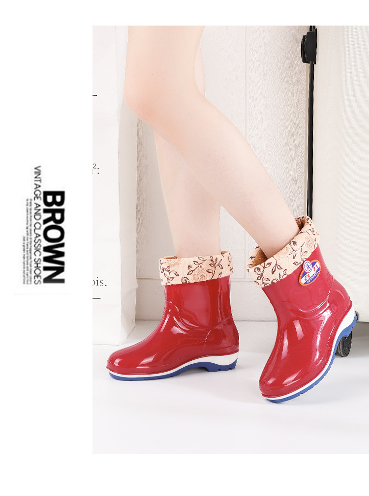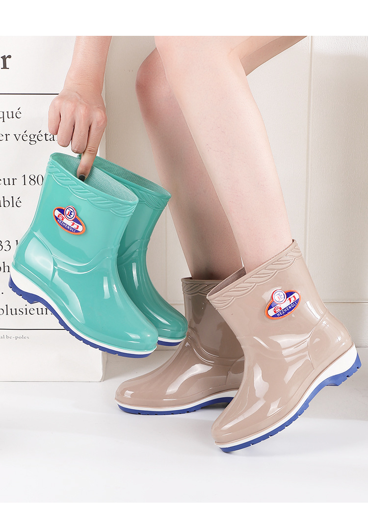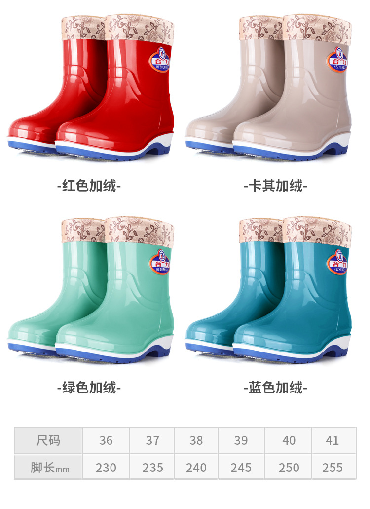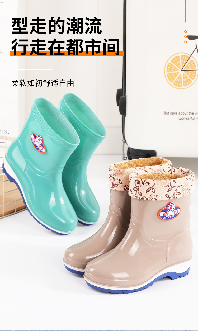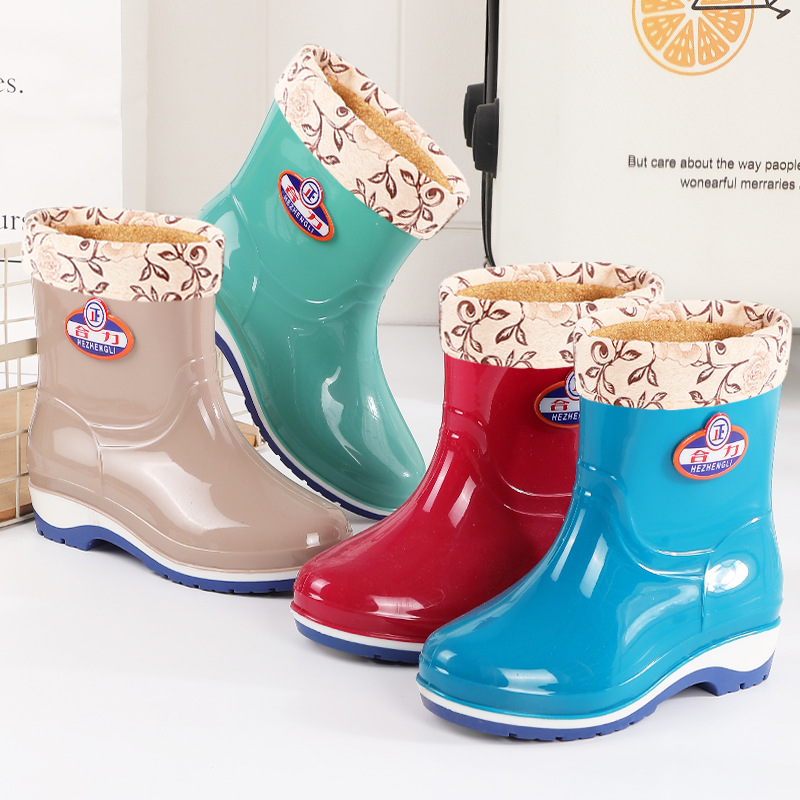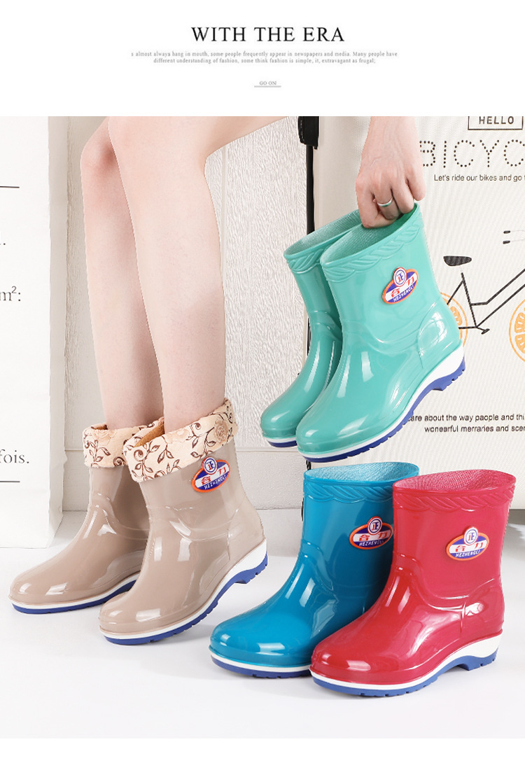 비 부츠 여성 중간 배럴 가을 및 겨울 면화 장화 주방 작업 미끄럼 방지 워터 부츠 캐주얼 내마모성 따뜻한 물 신발 여성