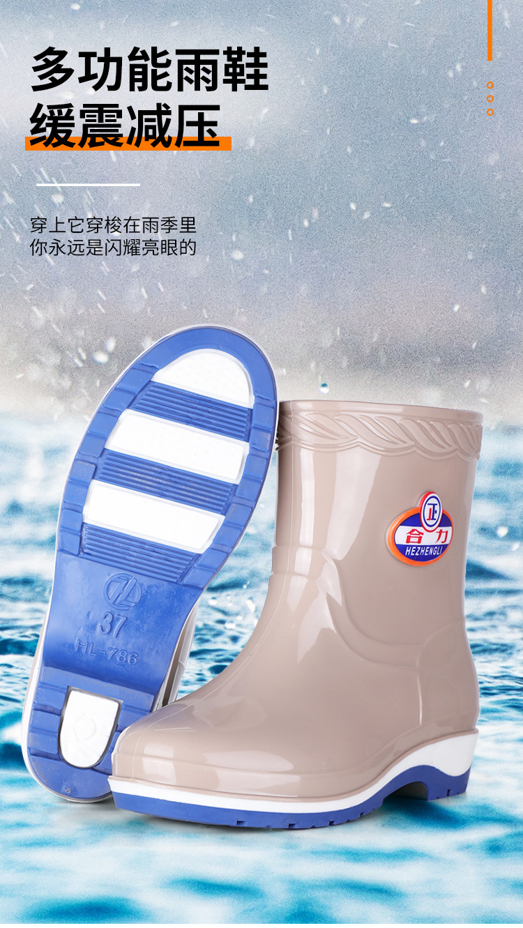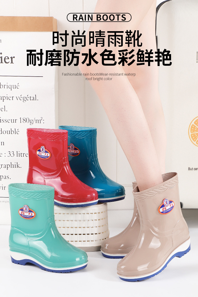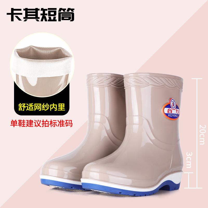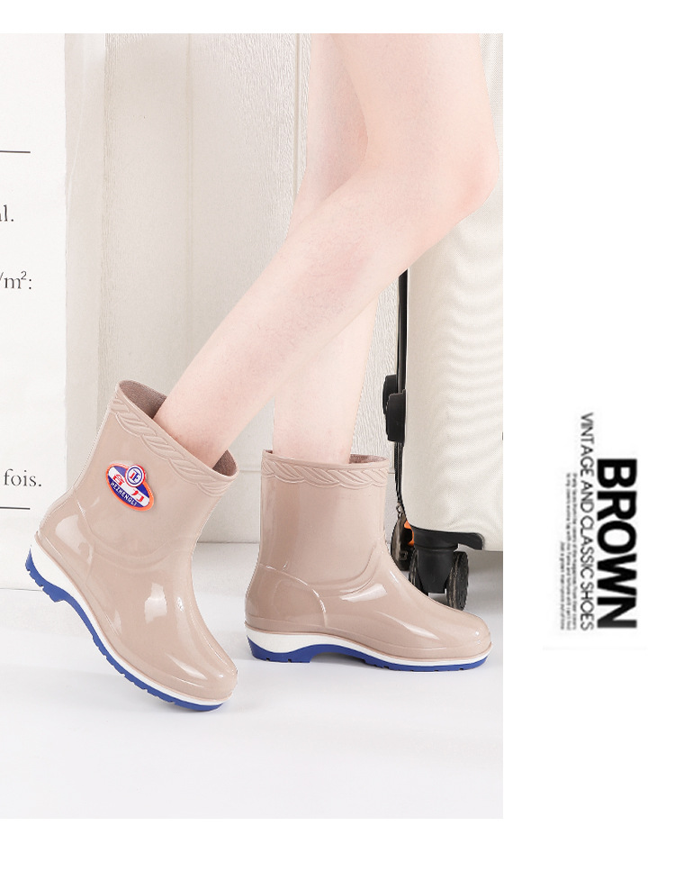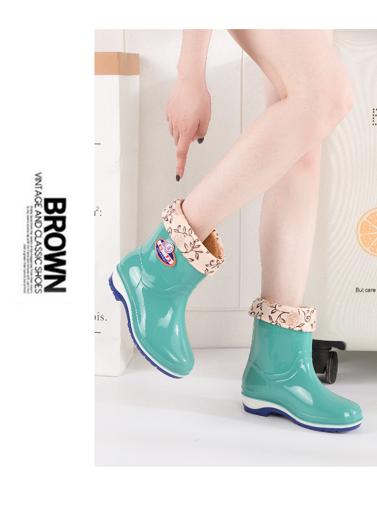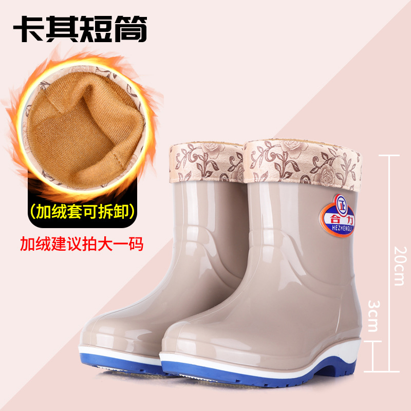 비 부츠 여성 중간 배럴 가을 및 겨울 면화 장화 주방 작업 미끄럼 방지 워터 부츠 캐주얼 내마모성 따뜻한 물 신발 여성