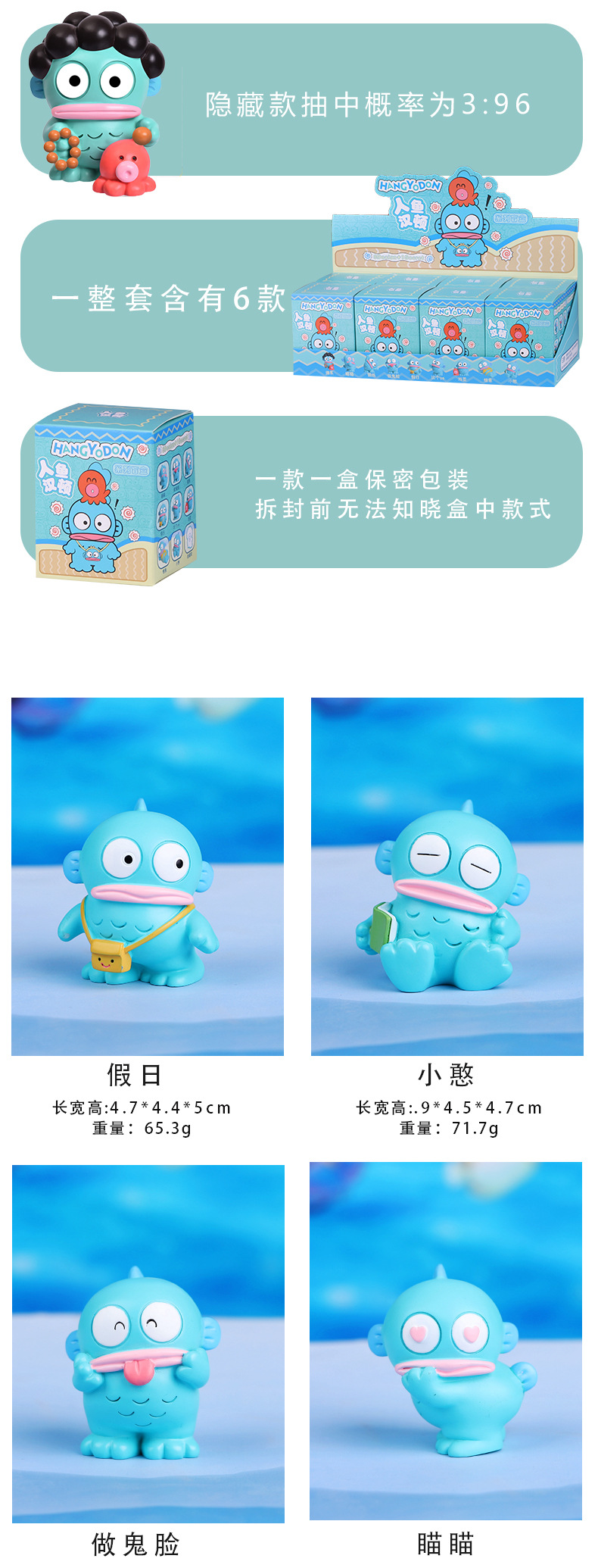 새로운 창조적 인 인어 한톤 블라인드 박스 손으로 만든 인형 귀여운 재미있는 큰 입 물고기 수지 장식품스토어 가기