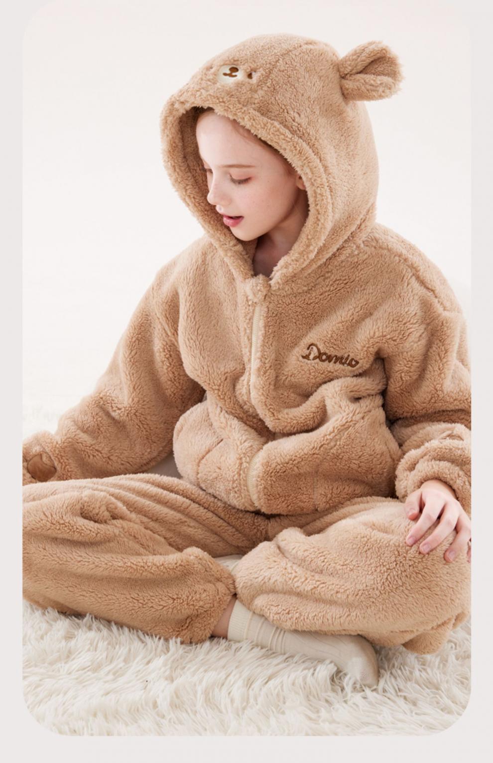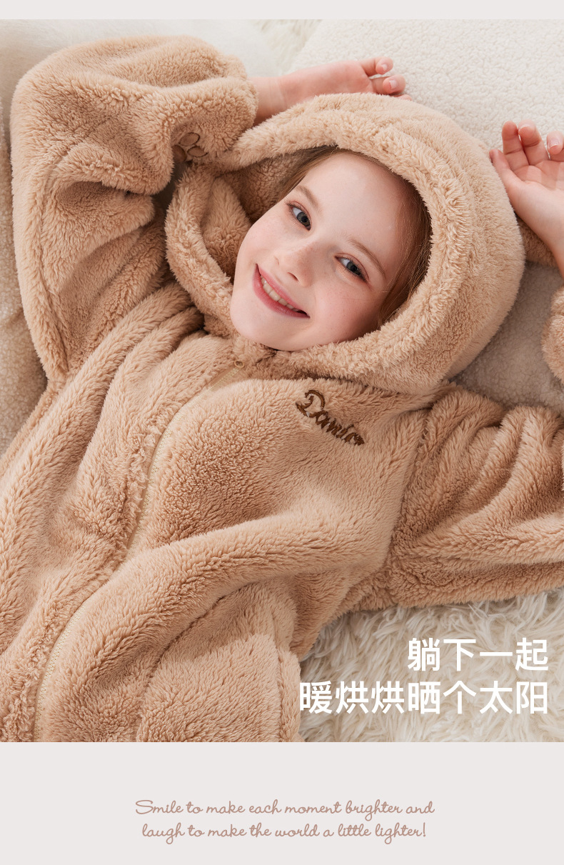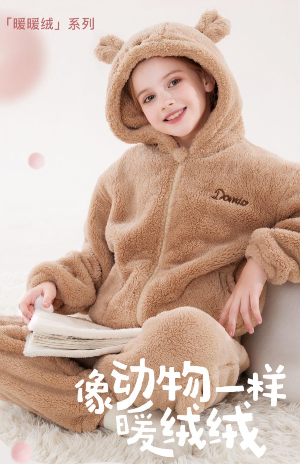 여아 잠옷 어린이 2025 가을 겨울 신상품 산호 벨벳 플러스 벨벳 두꺼운 플란넬 중대형 어린이 홈웨어 세트스토어 가기