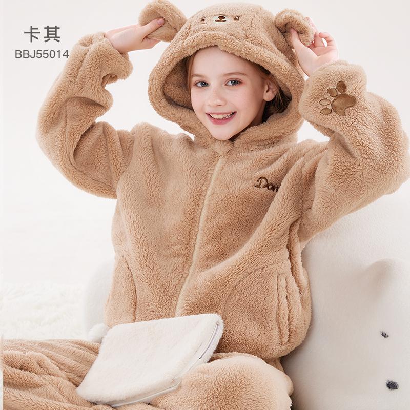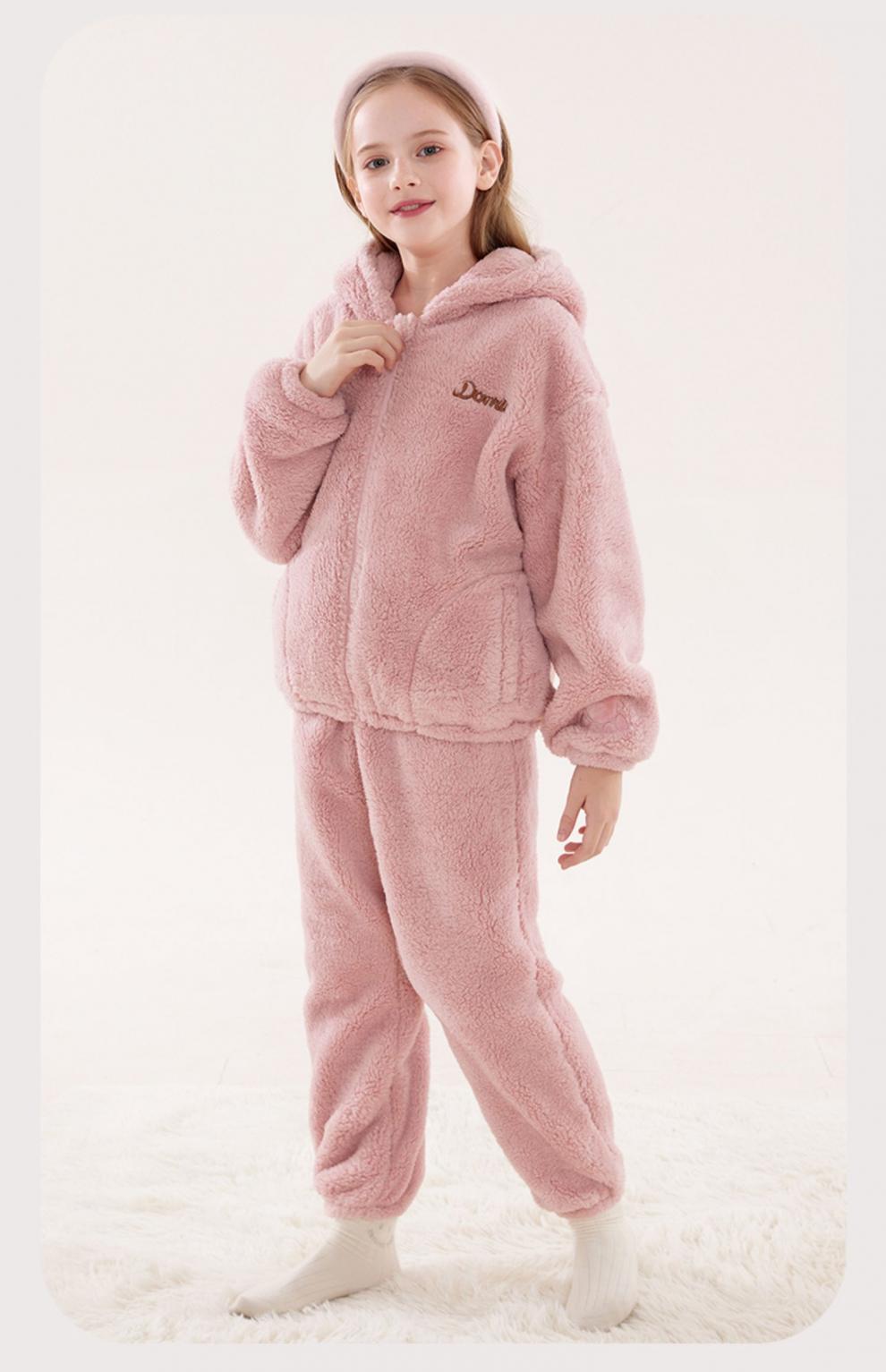 여아 잠옷 어린이 2025 가을 겨울 신상품 산호 벨벳 플러스 벨벳 두꺼운 플란넬 중대형 어린이 홈웨어 세트