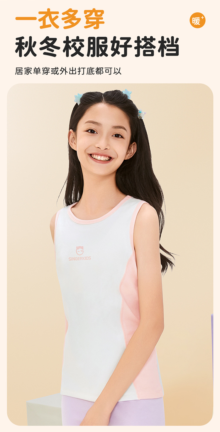 가을과 겨울 일정한 온도 따뜻한 조끼 소녀 탑 부드러운 정전기 방지 수축 탄성 통풍 7A 항균 가을과 겨울