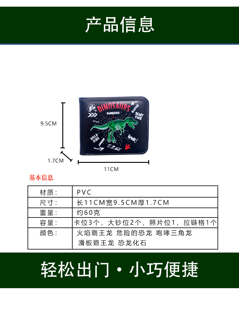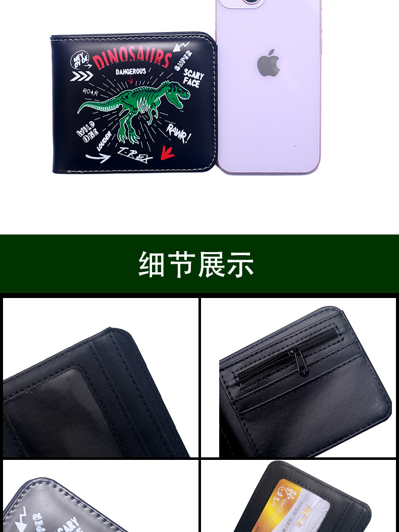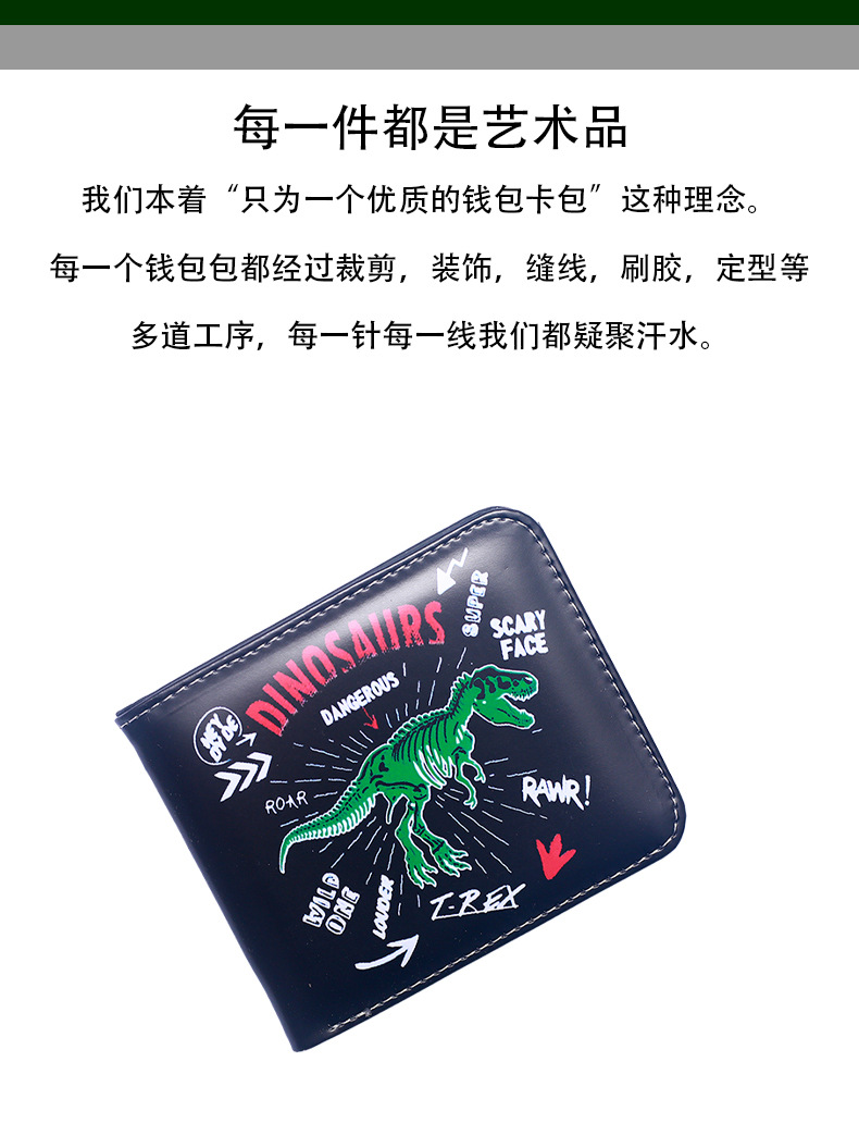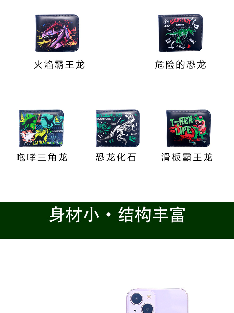 독립 스테이션 지갑 아마존 동물 울트라 얇은 짧은 지갑 공룡 인쇄 개인화 된 남성과 여성의 동전 지갑