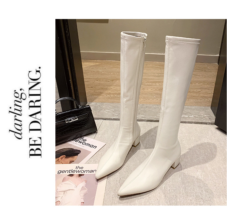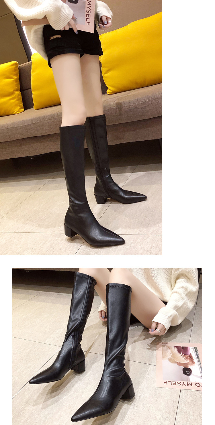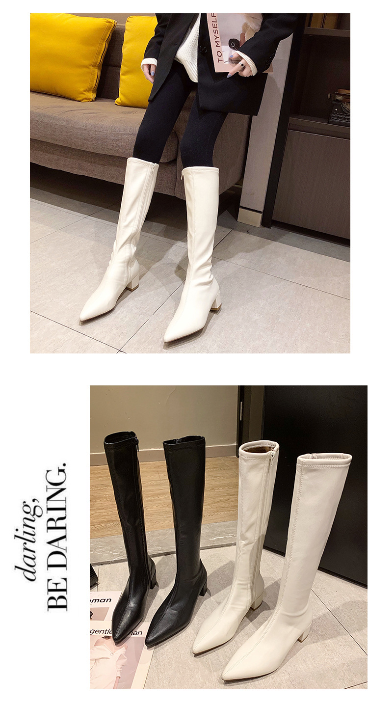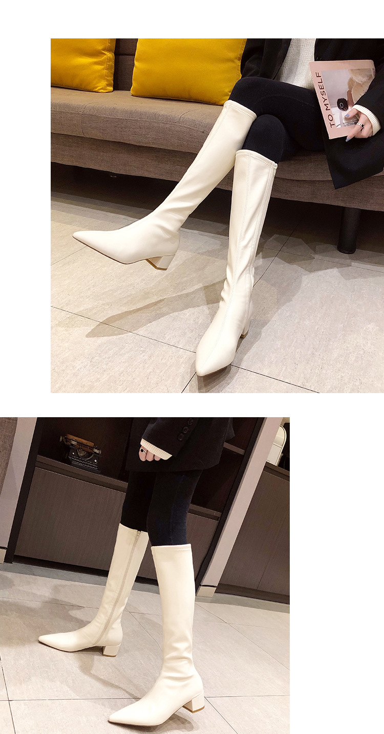 가을/겨울 2024 새로운 스트레치 부츠 사이드 지퍼 두꺼운 뒤꿈치 미드 힐 부츠는 여성용 부츠에 헤어 세대를 재고.
