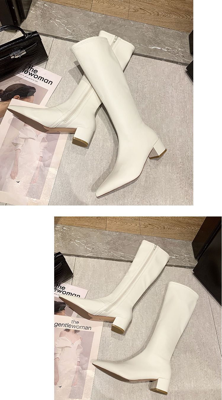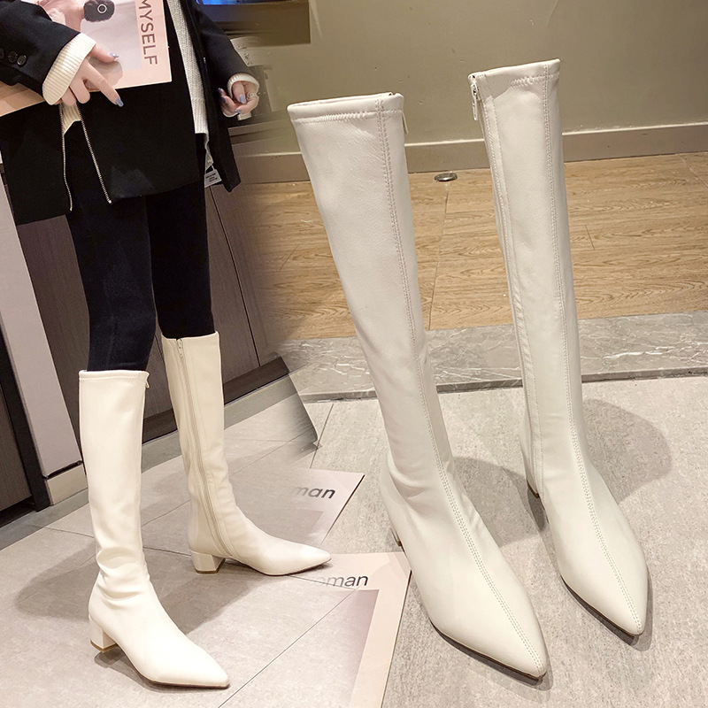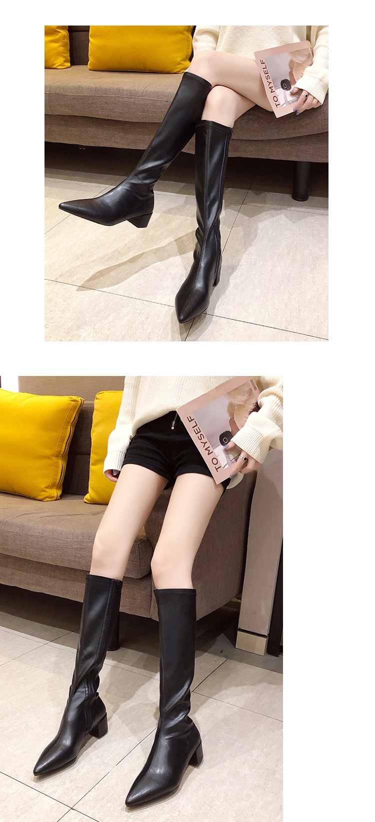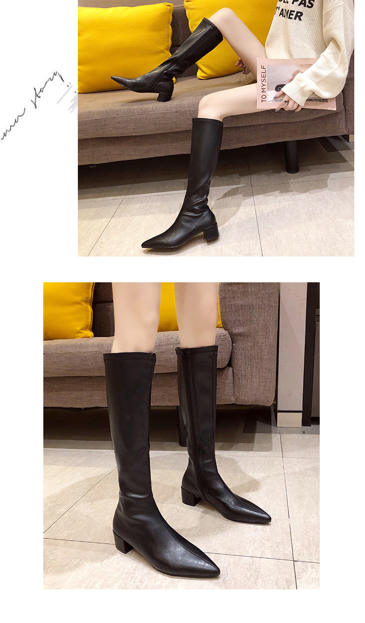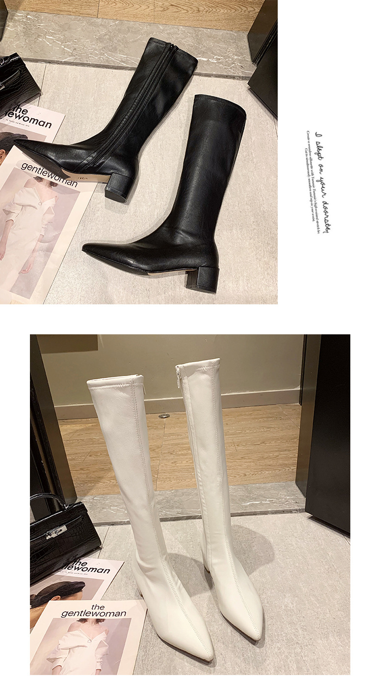 가을/겨울 2024 새로운 스트레치 부츠 사이드 지퍼 두꺼운 뒤꿈치 미드 힐 부츠는 여성용 부츠에 헤어 세대를 재고.