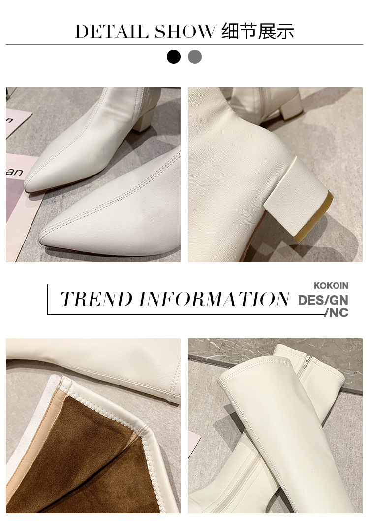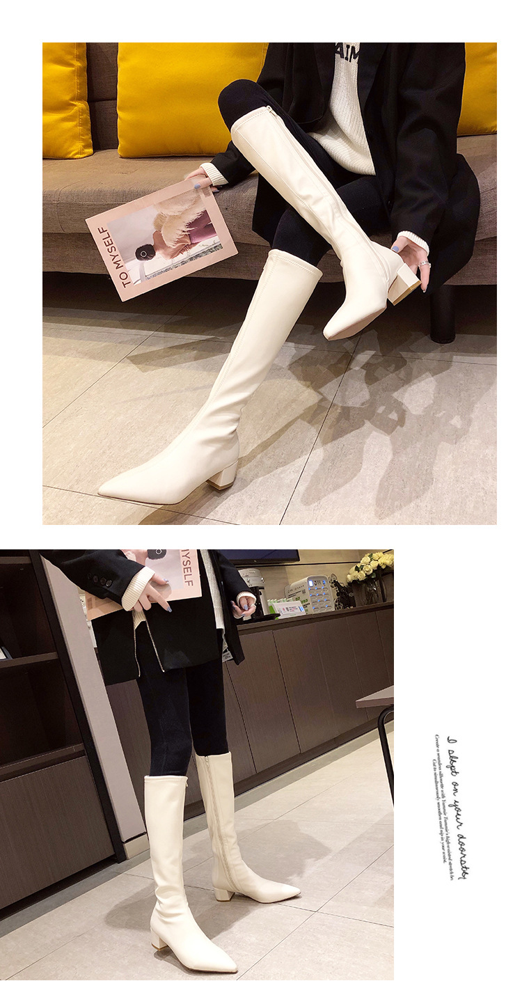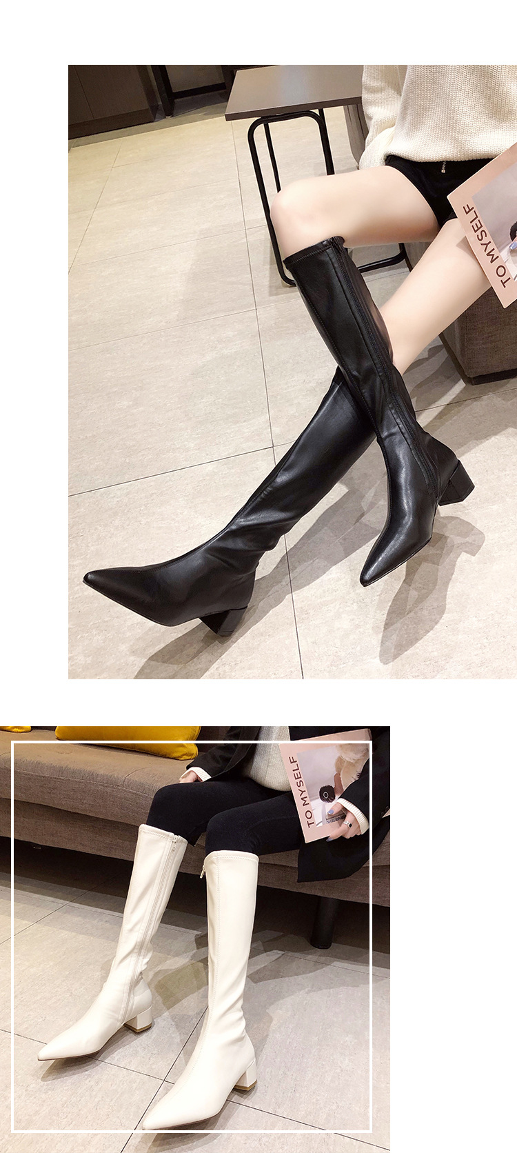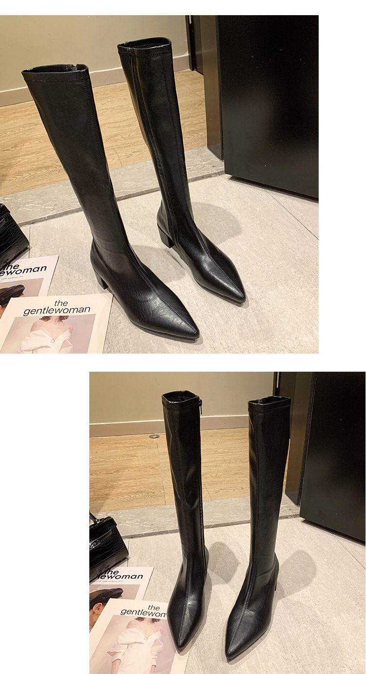 가을/겨울 2024 새로운 스트레치 부츠 사이드 지퍼 두꺼운 뒤꿈치 미드 힐 부츠는 여성용 부츠에 헤어 세대를 재고.