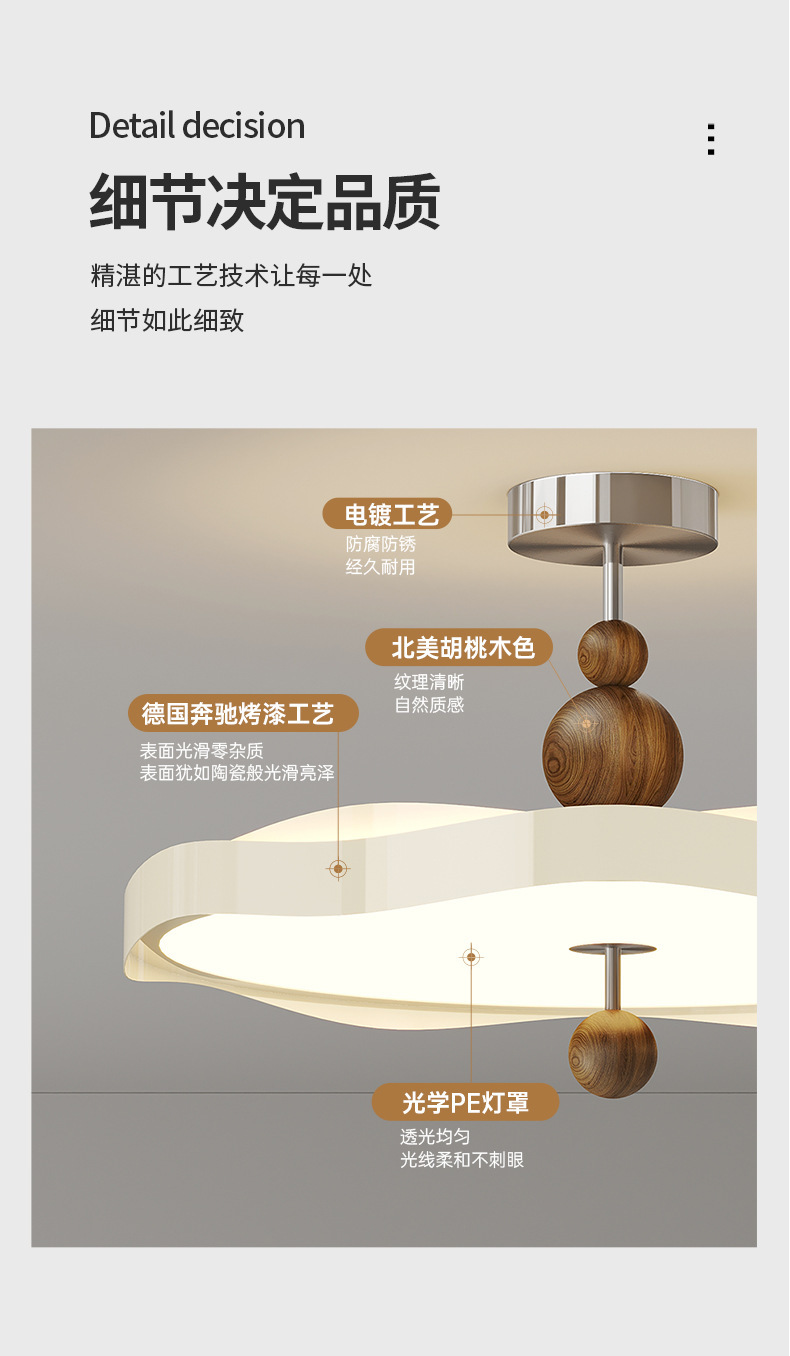 중간 고대 조용한 바람 침실 샹들리에 눈 보호 비행 접시 램프 프랑스 크림 바람 호두 나무 패턴 룸 마스터 침실 천장 램프