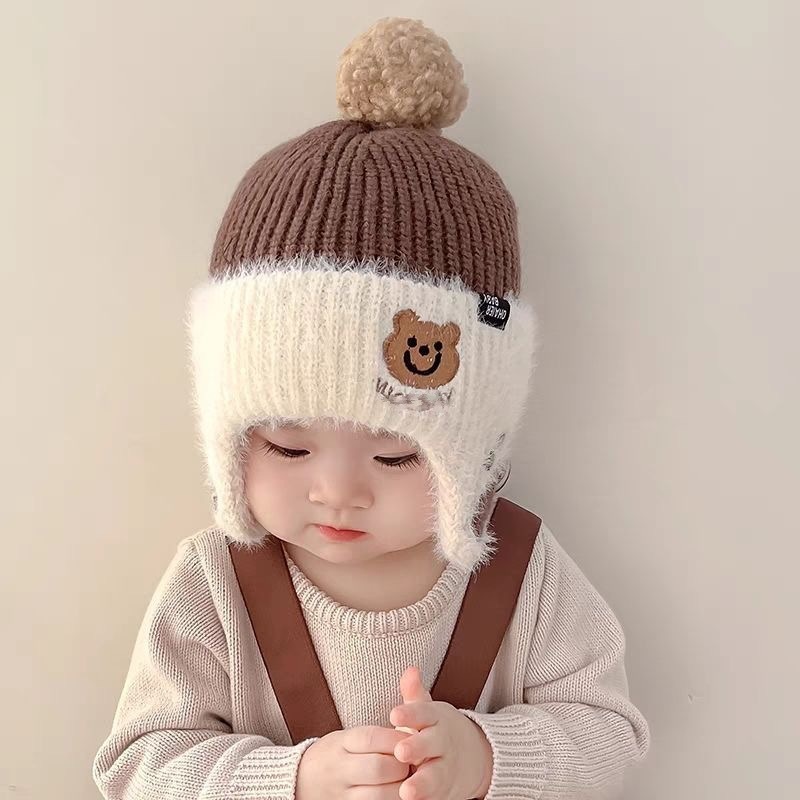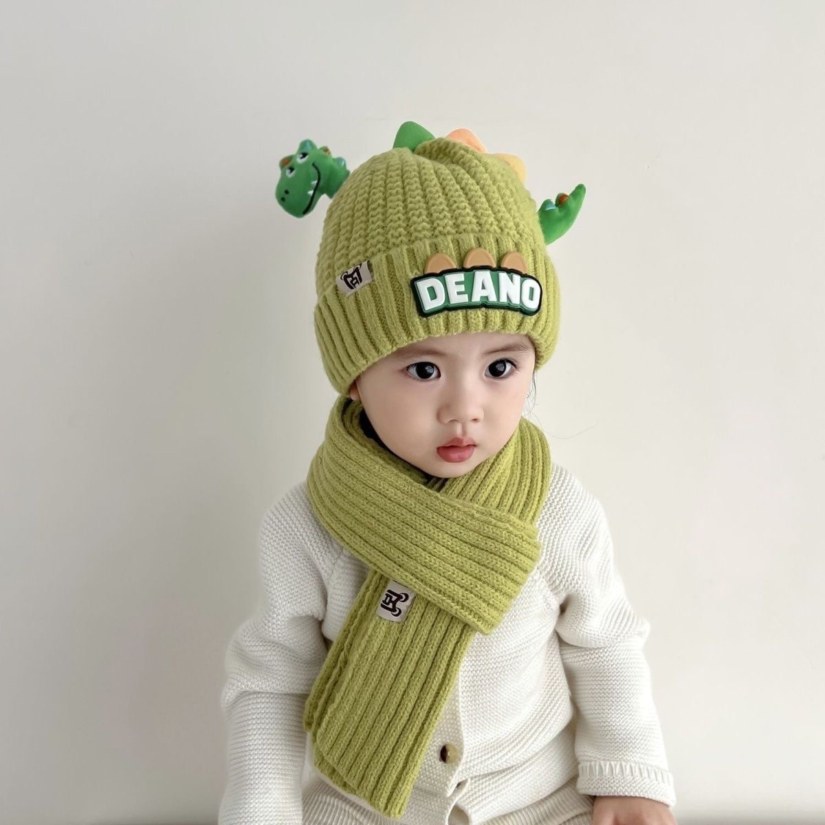 작은 공룡 만화 귀 보호 모자 아기 소년의 니트 모자 가을과 겨울 새로운 어린이 양모 따뜻한 모자 소녀의 방풍 모자