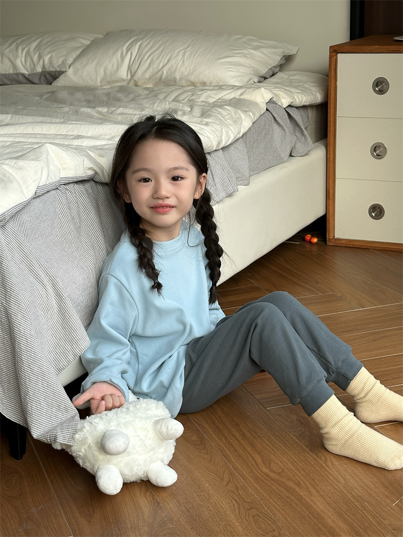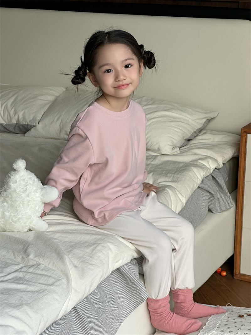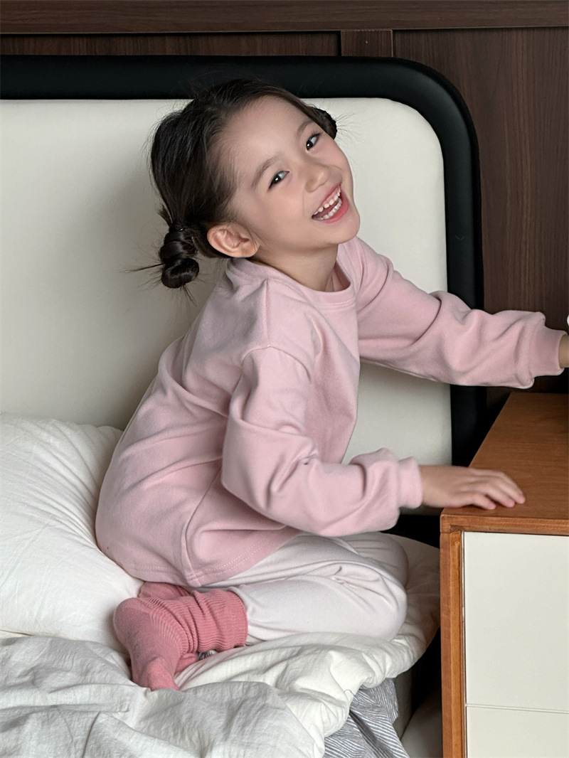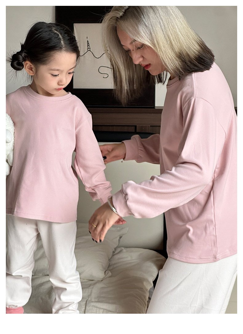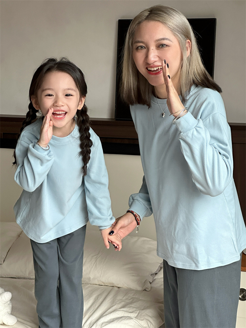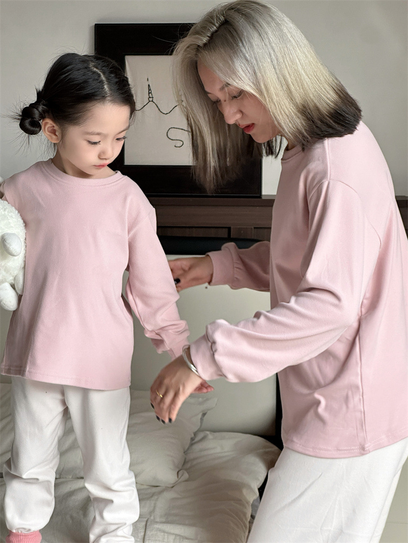 2025 신상 가을 겨울 부모 자녀 커플룩 홈웨어 아동 피부 친화적 크림 무스 기모 속옷 세트 도매