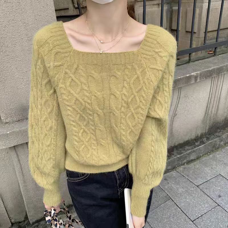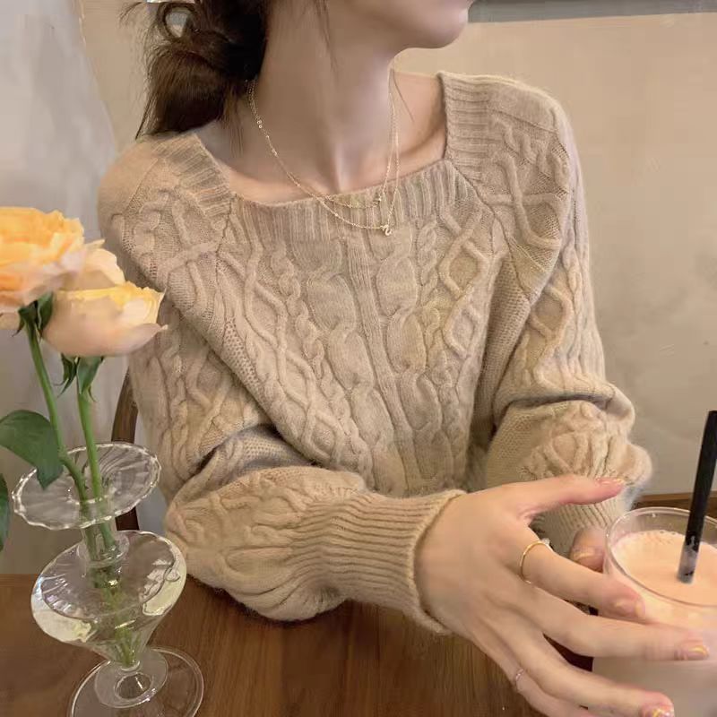 니치 랜턴 슬리브 트위스트 스웨터 여성 디자인 센스 가을과 겨울 일본 스타일 게으른 스타일 외부 착용 니트베이스 셔츠 여성용 봄과 가을스토어 가기