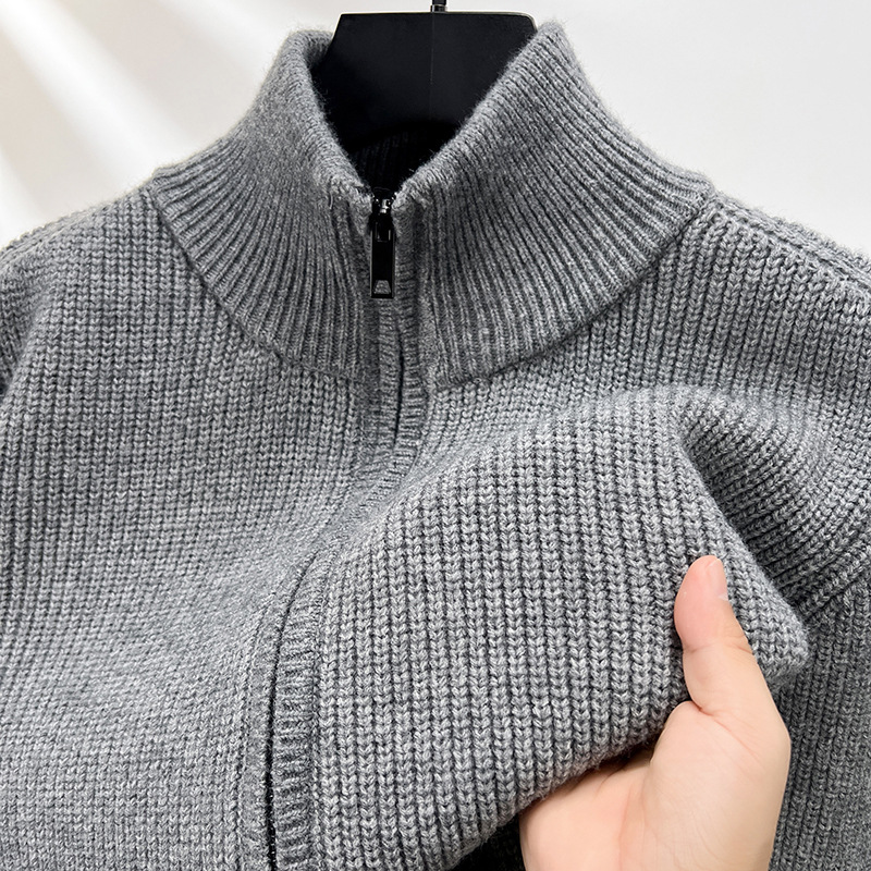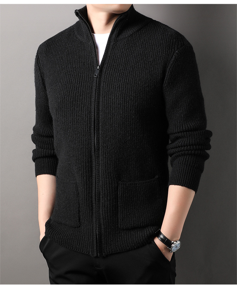남성용 하이 엔드 스탠드 칼라 가을과 겨울 지퍼 포켓 수직 핏 니트 카디건 유행 스태킹 스웨터 재킷