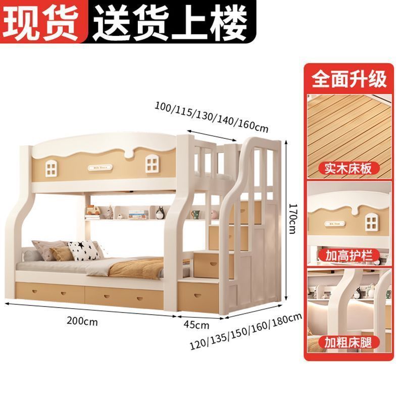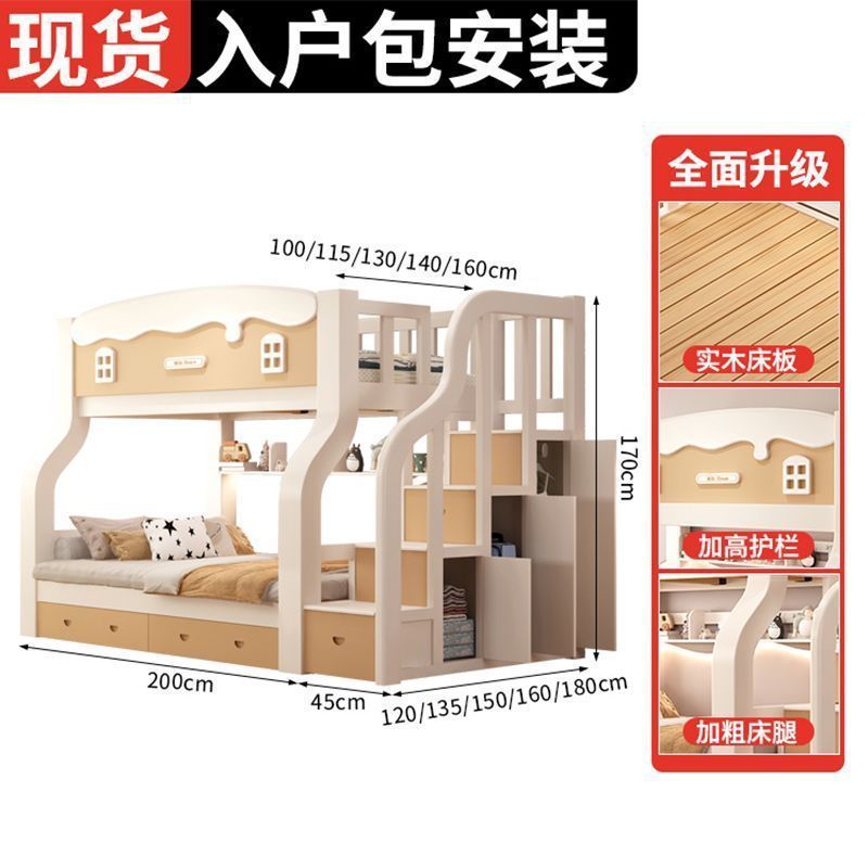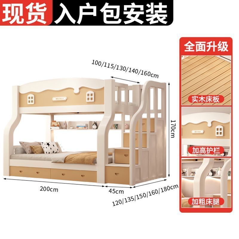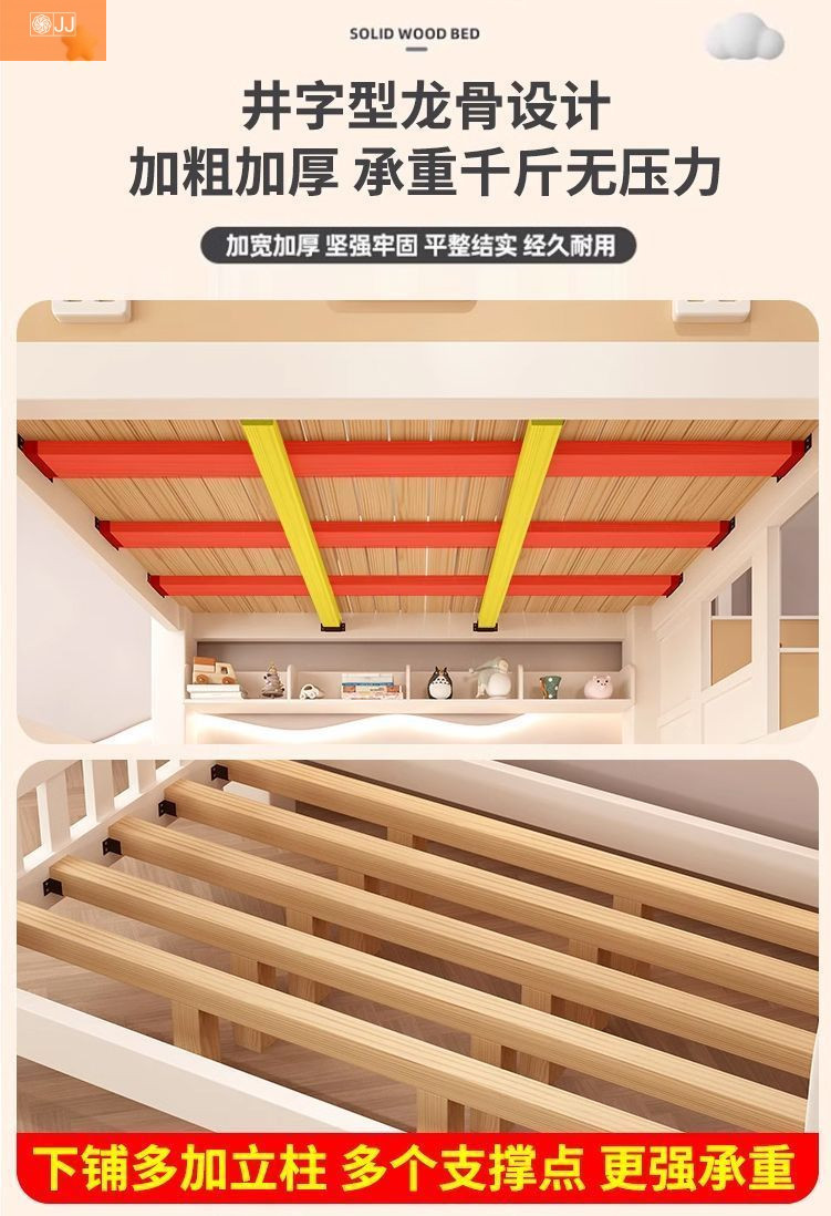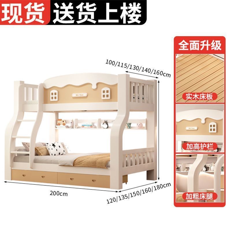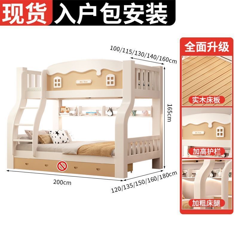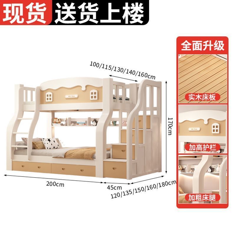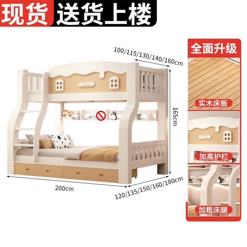 원목 2층 침대, 더블 레이어 침대, 더블 레이어 침대, 두껍고 높은 싱글 및 더블 공주 어린이 침대, 다기능 2층 침대 조합