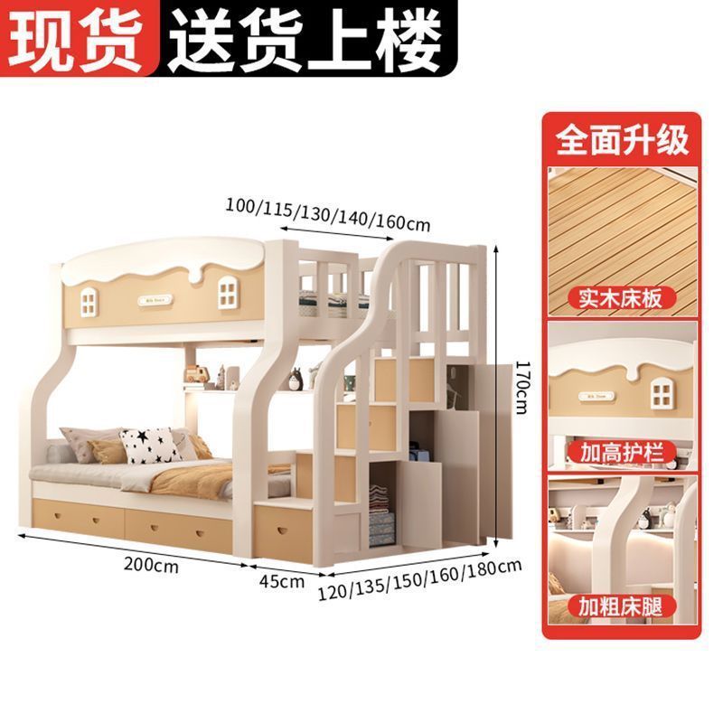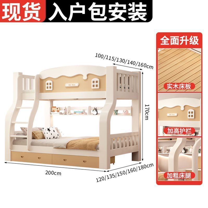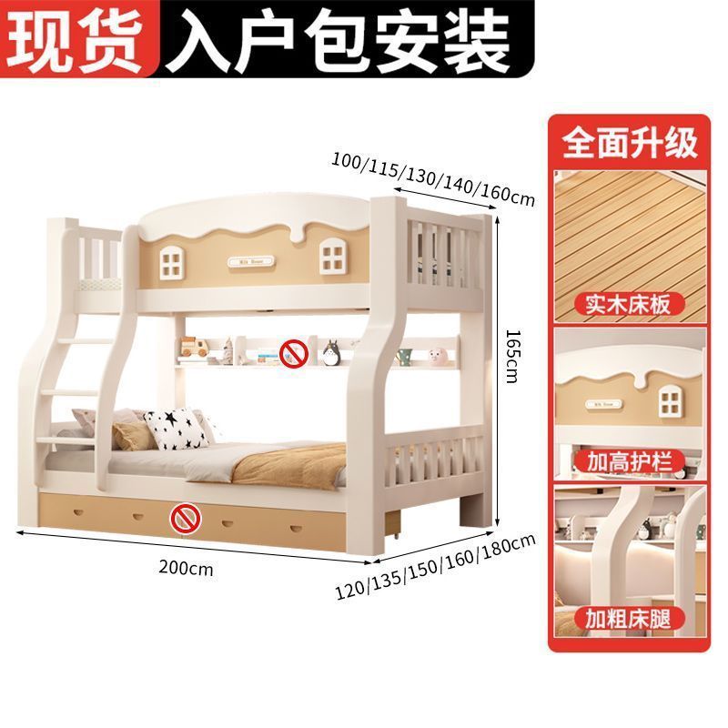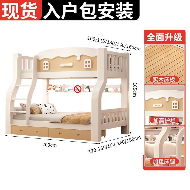 원목 2층 침대, 더블 레이어 침대, 더블 레이어 침대, 두껍고 높은 싱글 및 더블 공주 어린이 침대, 다기능 2층 침대 조합스토어 가기