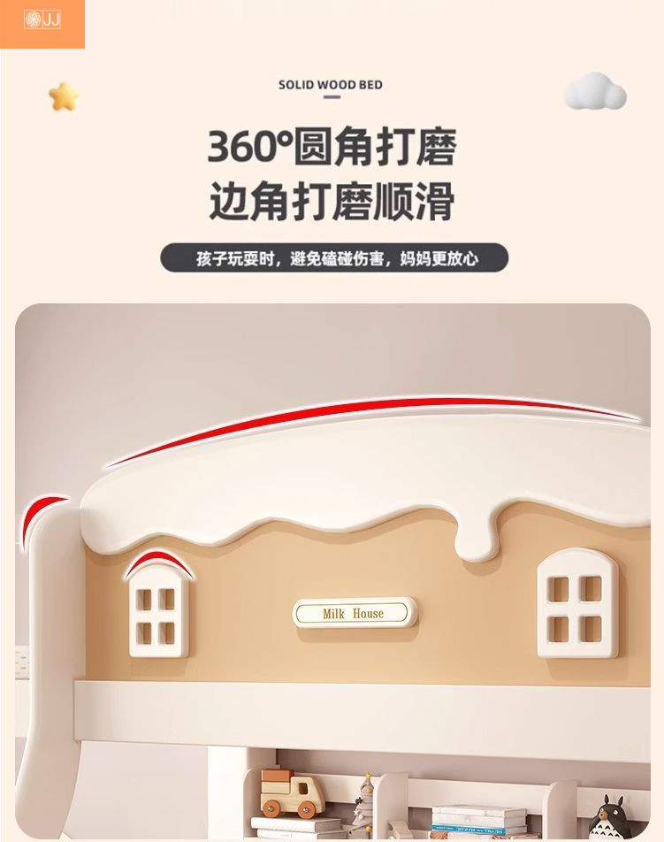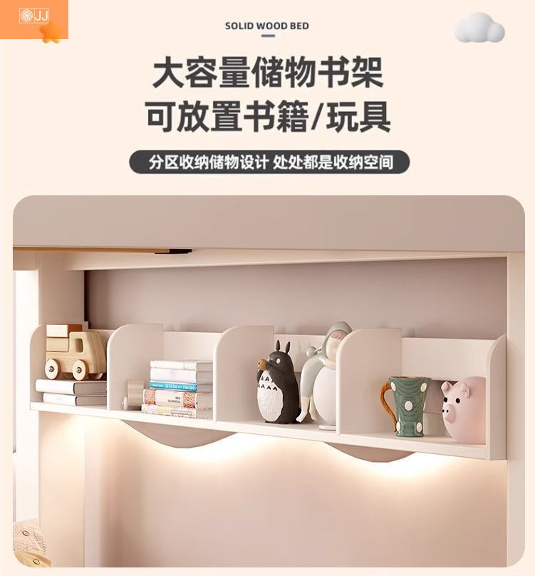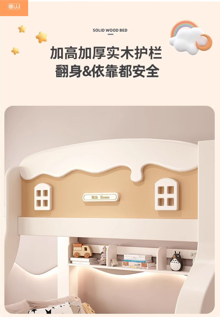 • JJ 크림 사다리 스타일 + 책장 + 무료 매트리스*2 + 위층으로 올라가기