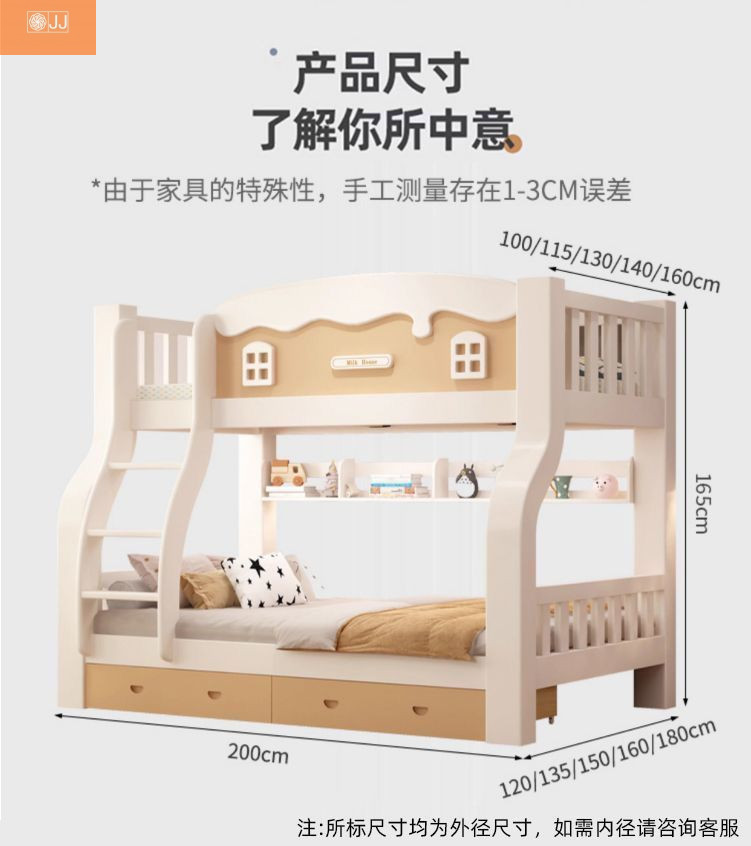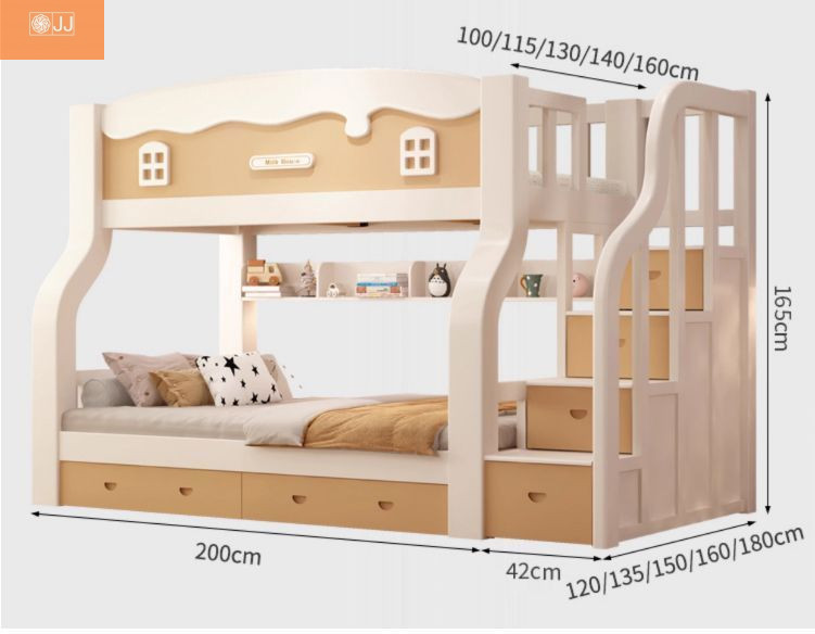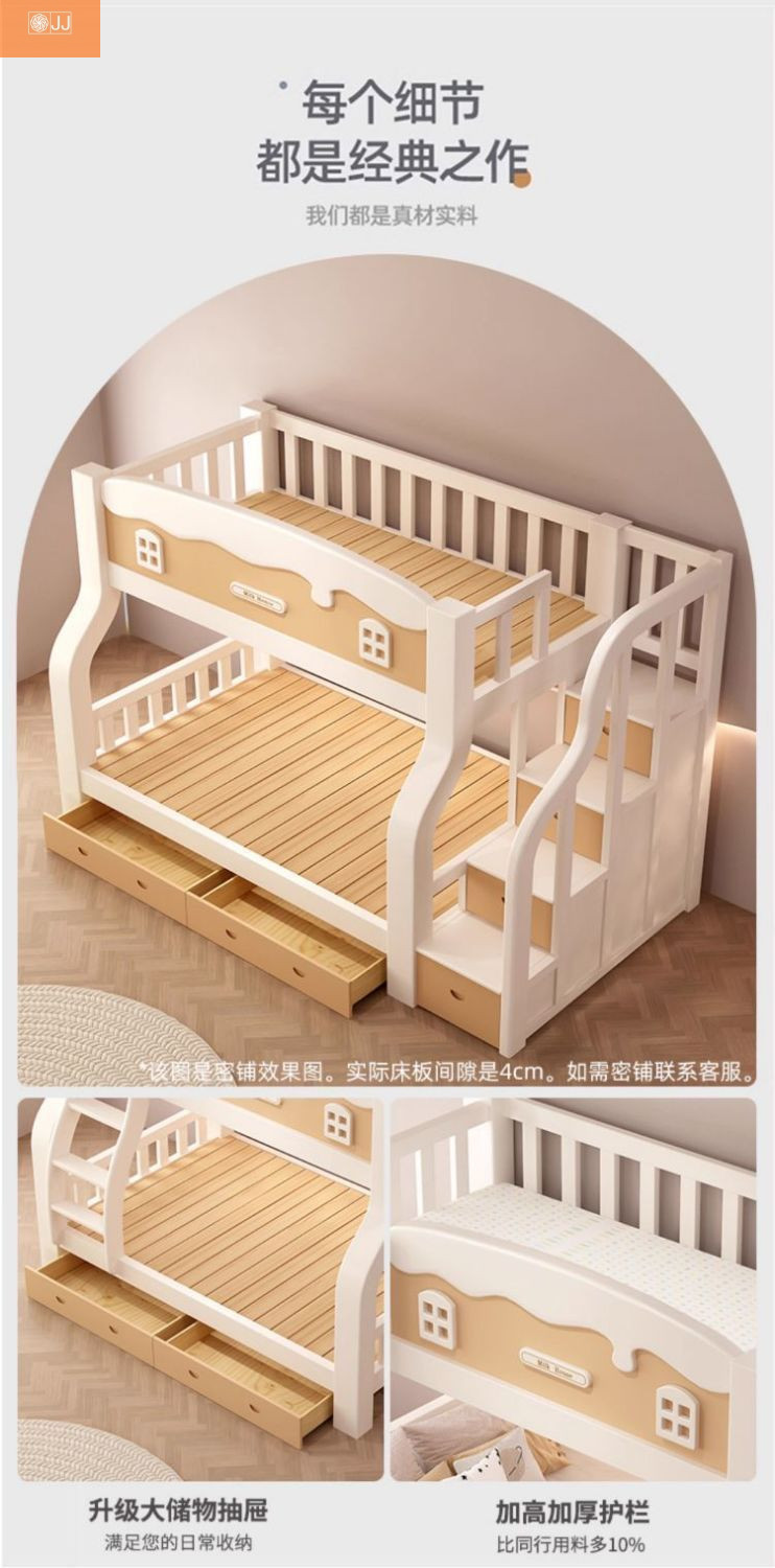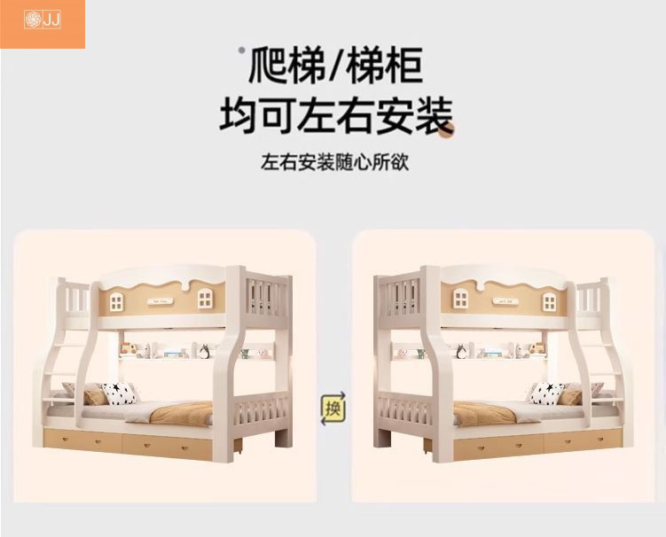 • JJ 크림 사다리 스타일 + 서랍 + 무료 매트리스*2 + 위층으로 올라가기
