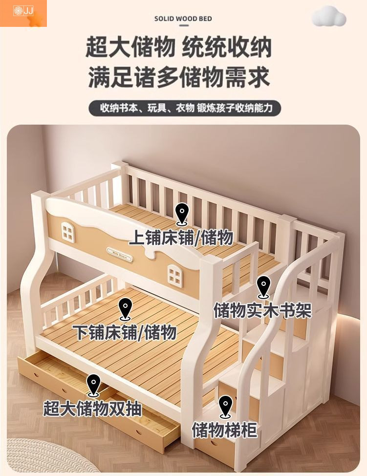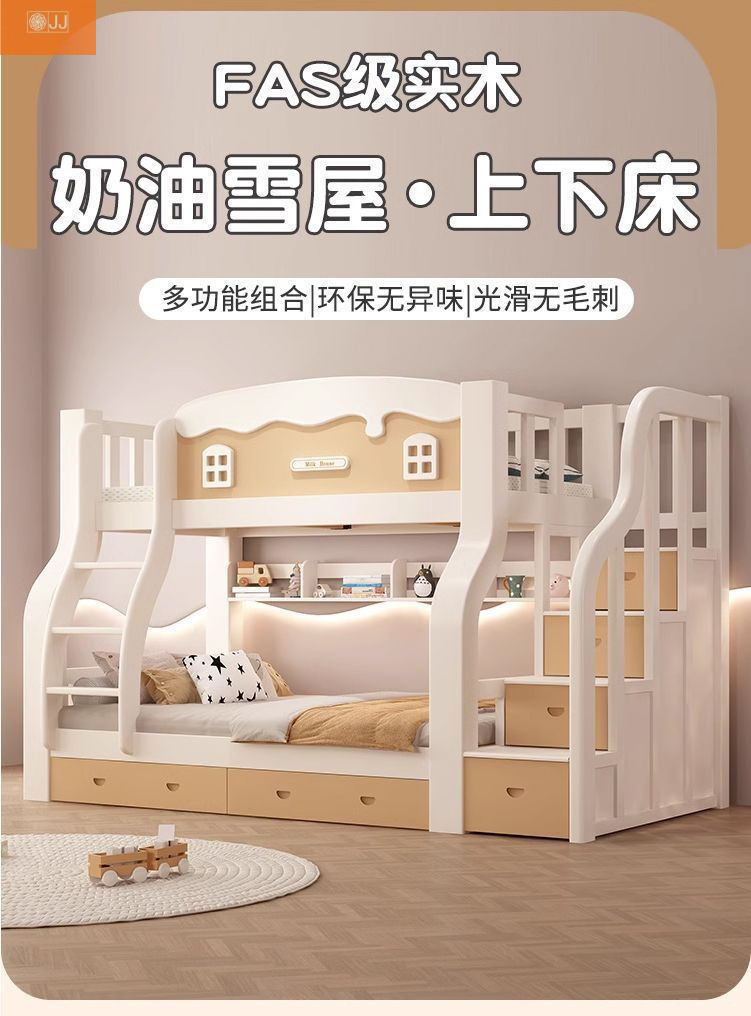 • JJ 크림 사다리장 + 책장 + 서랍 + 무료 매트리스*2 + 위층