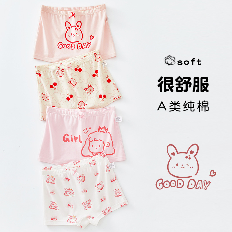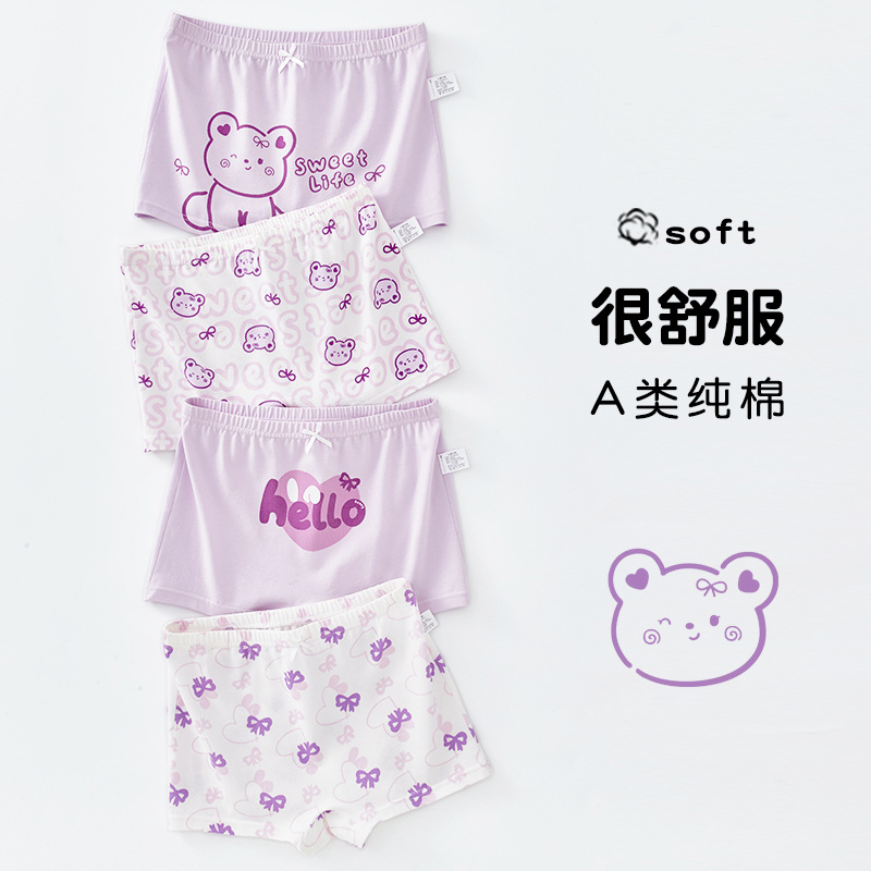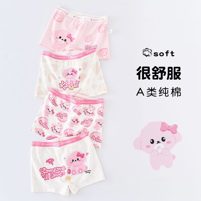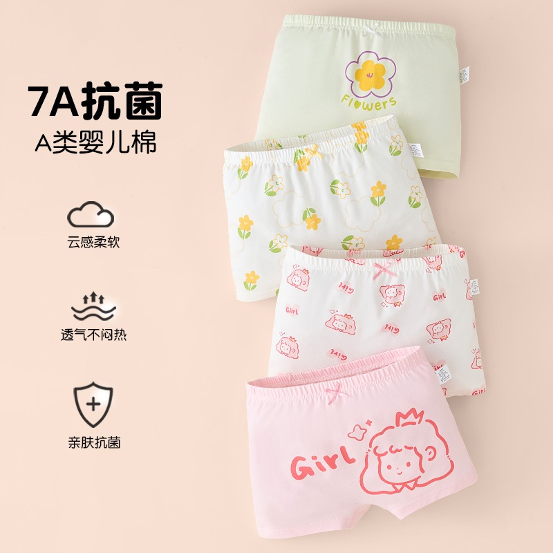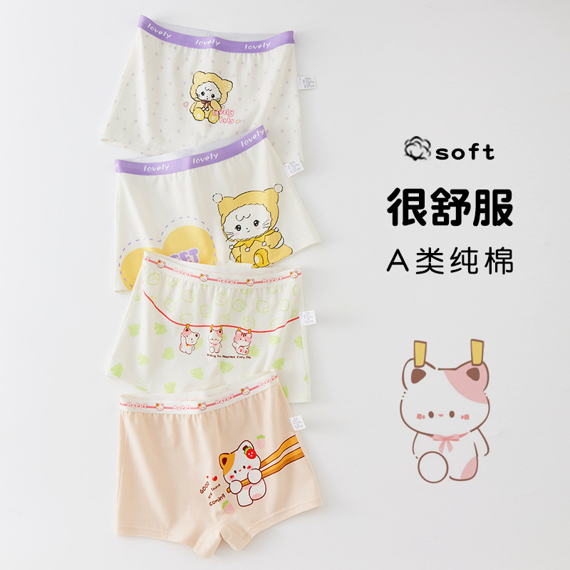 어린이 및 소녀 속옷 퓨어 코튼 클래스 A 코튼 6-12 세 어린 소녀와 아기의 중간 및 큰 어린이 복서 반바지스토어 가기