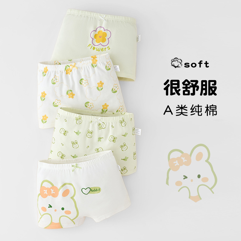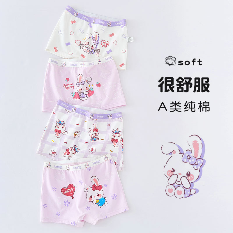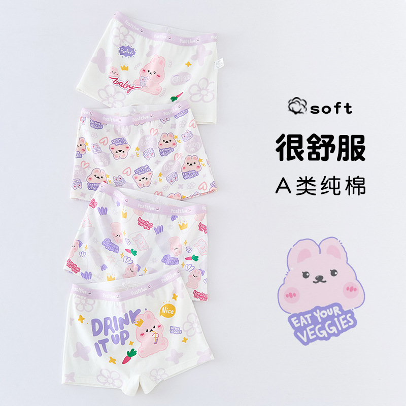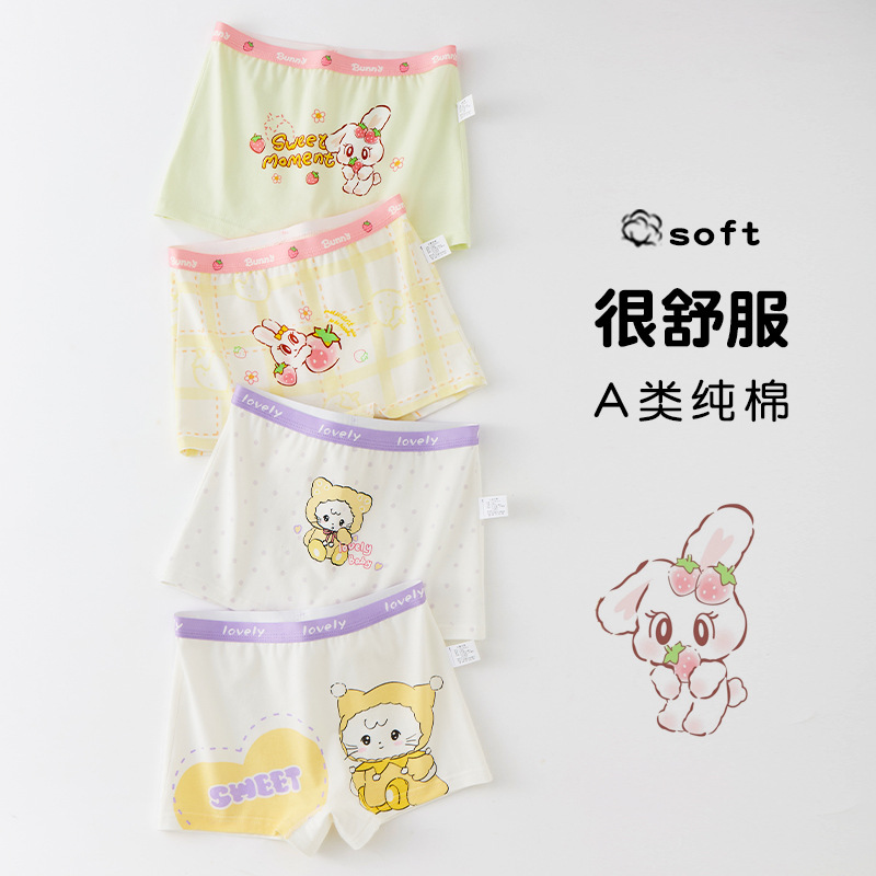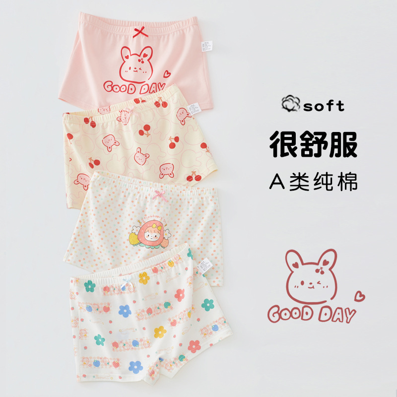 어린이 및 소녀 속옷 퓨어 코튼 클래스 A 코튼 6-12 세 어린 소녀와 아기의 중간 및 큰 어린이 복서 반바지스토어 가기