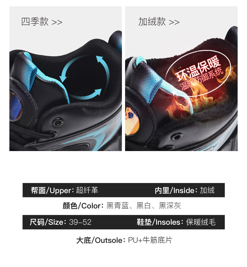 국경 초대형 50 트렌드 캐주얼 코튼 신발 52 두꺼운 바닥 마이크로 화이버 가죽 내마모성 51 기모 스포츠 남성 신발스토어 가기