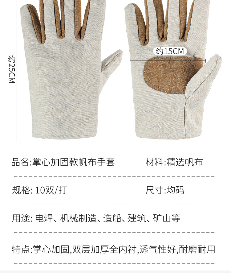 캔버스 장갑, 노동 보호, 내마모성 작업, 두껍고 통기성 24 라인 이중 층 건설 현장 작업, 노동 기계, 전기 용접 남성스토어 가기