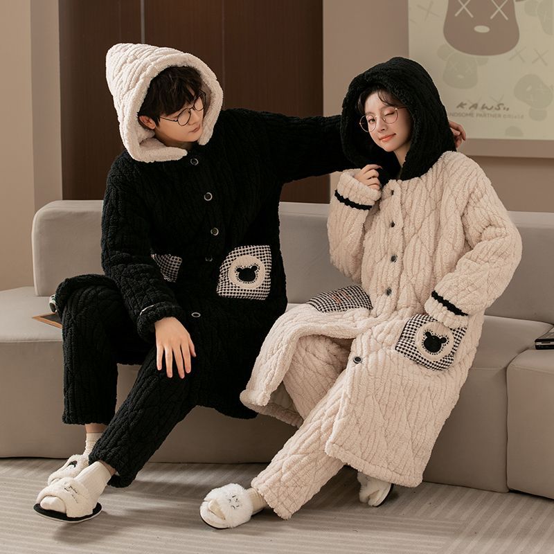 잠옷 가을과 겨울 두꺼운 기모 산호 양털 커플 잠옷 남녀 플란넬 따뜻한 가정 옷 세트스토어 가기