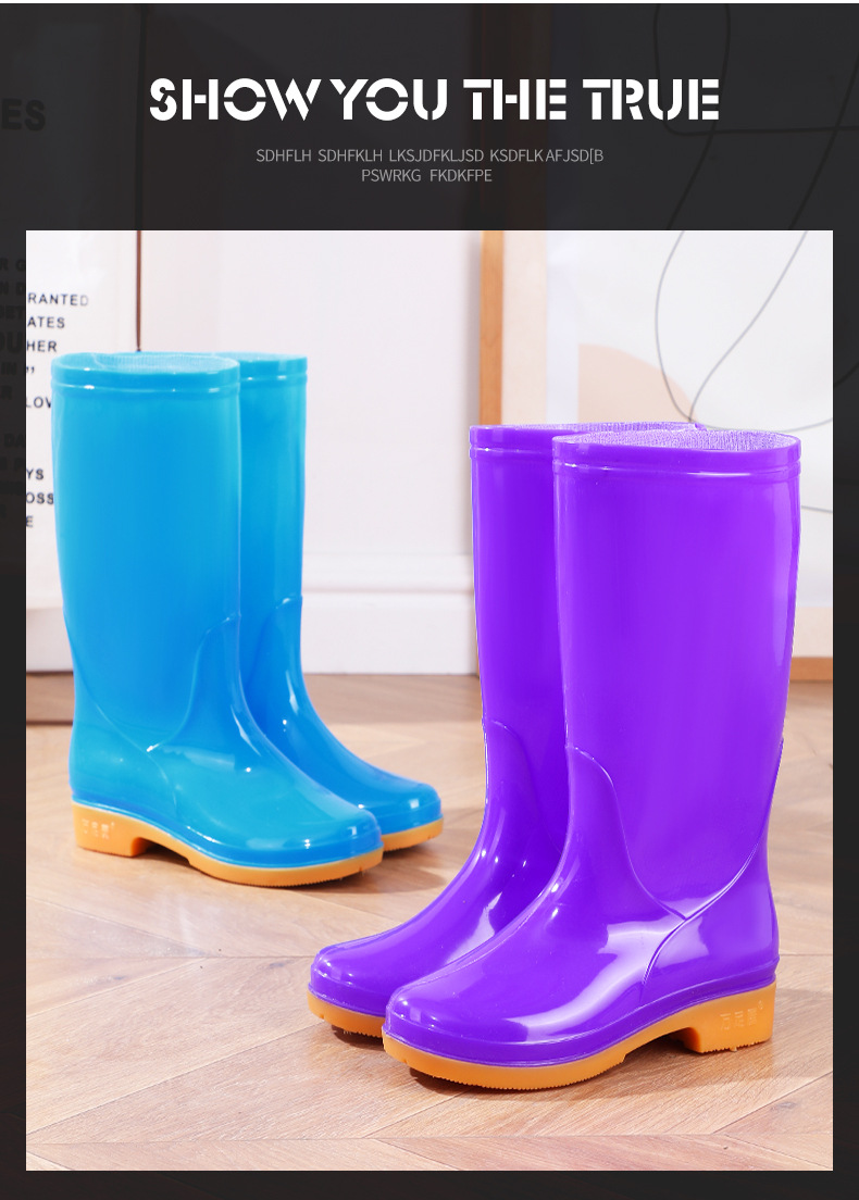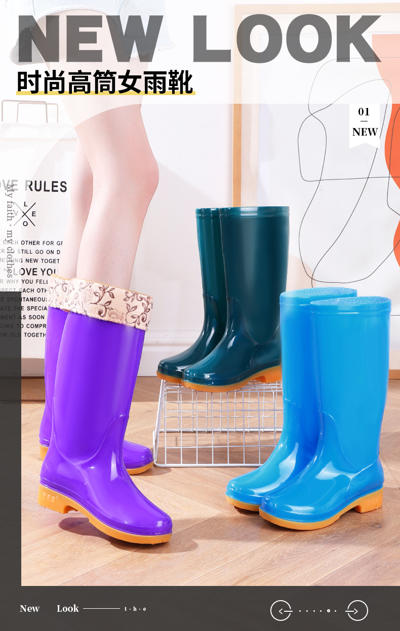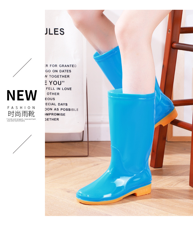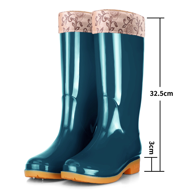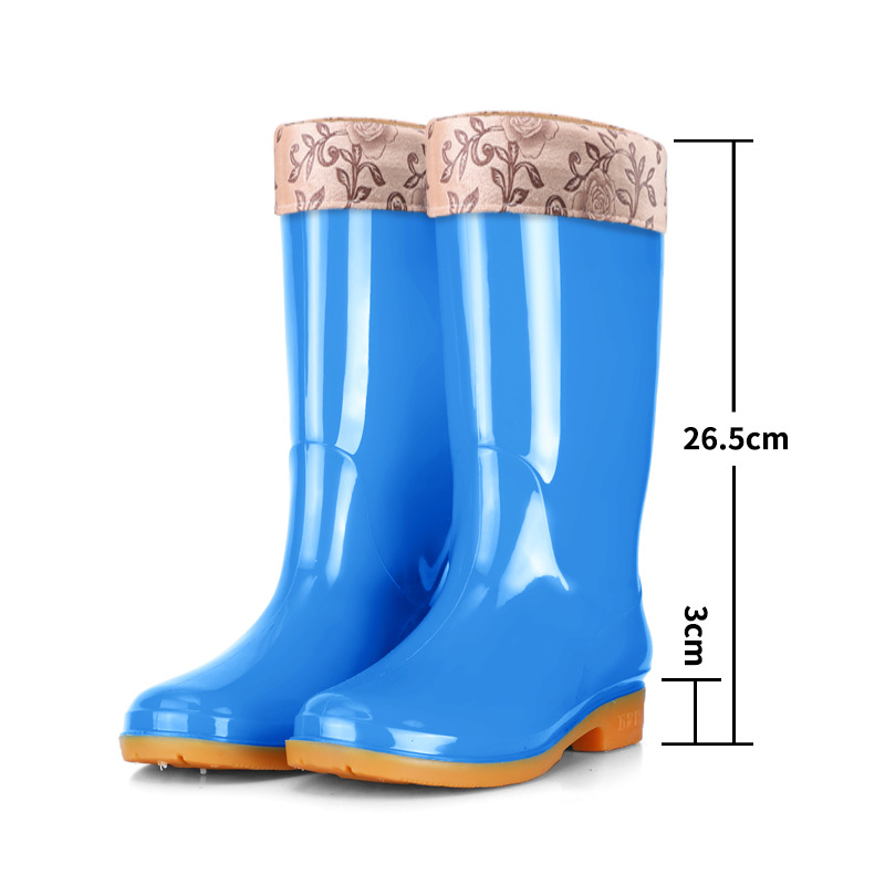 Four Seasons High-bart 여성용 레인 부츠 면화 따뜻한 미끄럼 방지 워터 슈즈 외부 방수 신발 중간 금지 성인 레인 부츠 고무 신발 내마모성스토어 가기