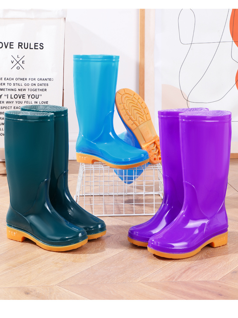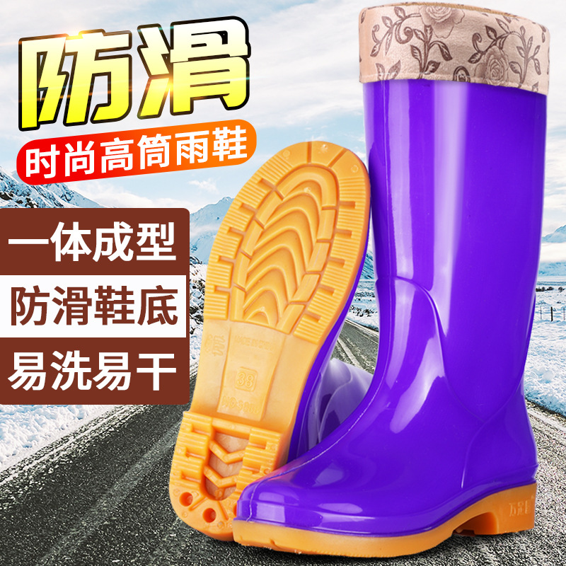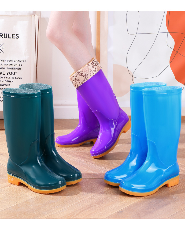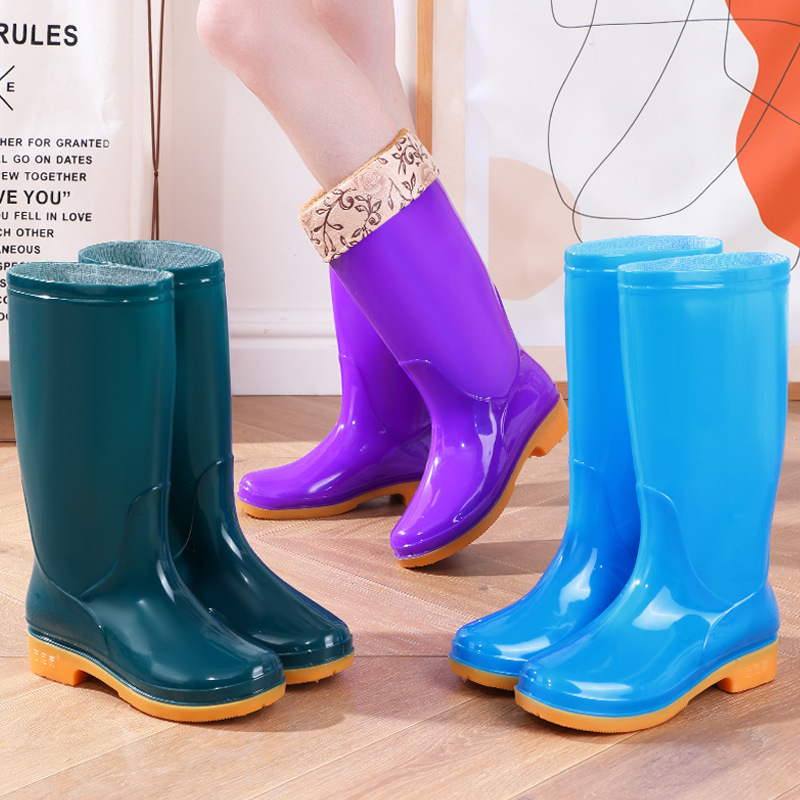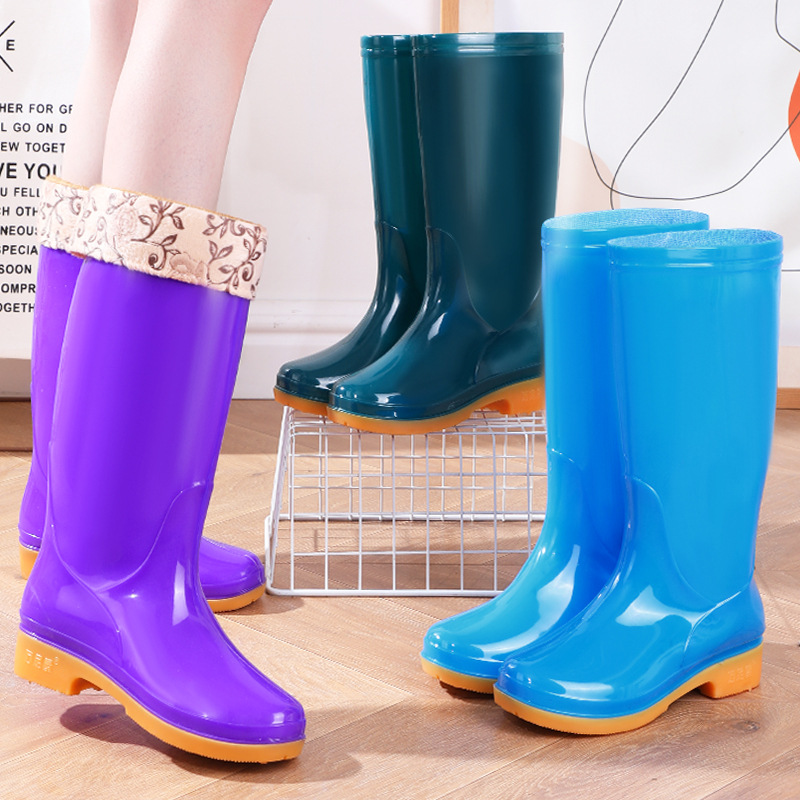 Four Seasons High-bart 여성용 레인 부츠 면화 따뜻한 미끄럼 방지 워터 슈즈 외부 방수 신발 중간 금지 성인 레인 부츠 고무 신발 내마모성