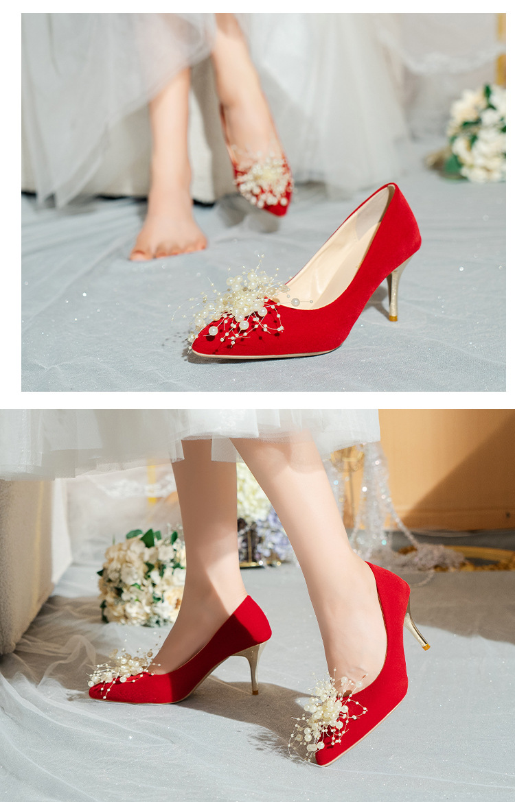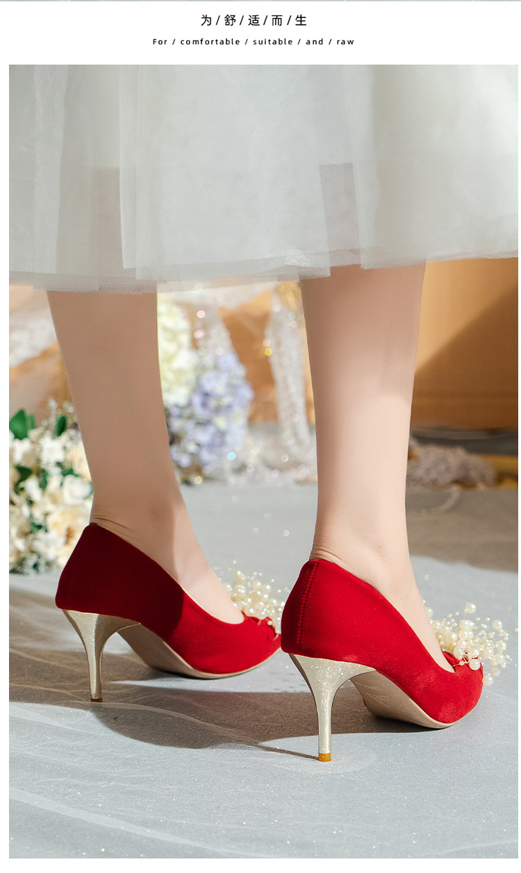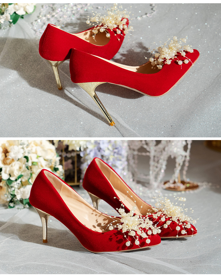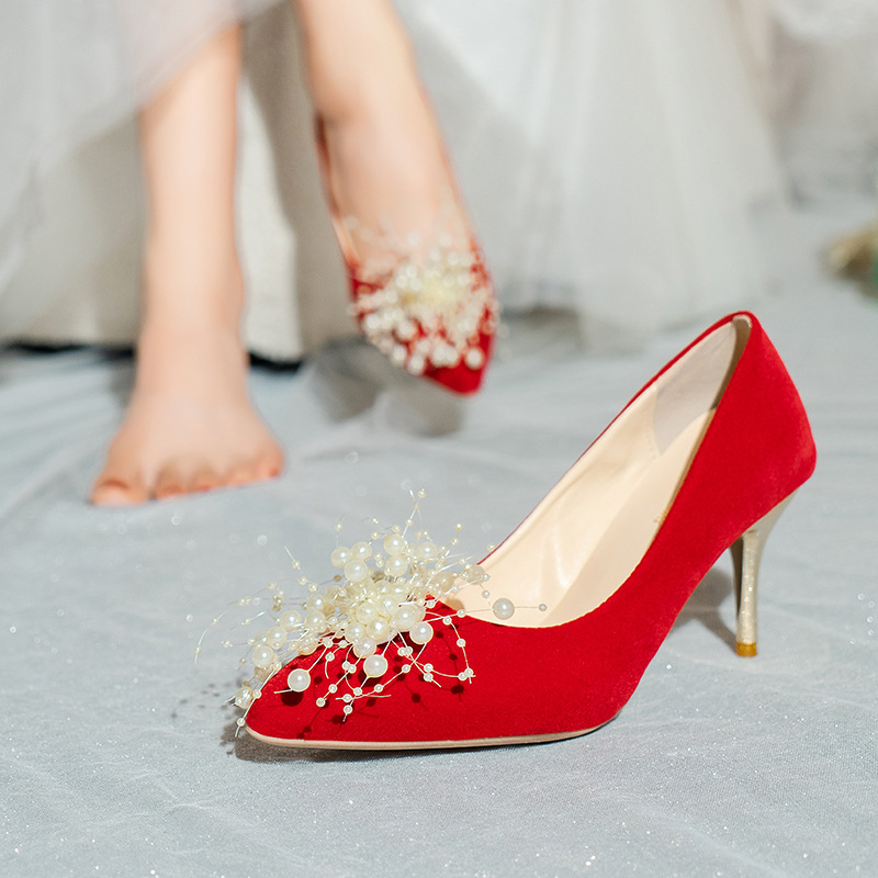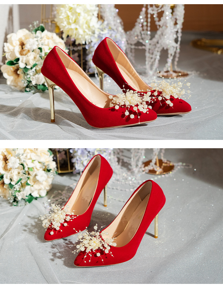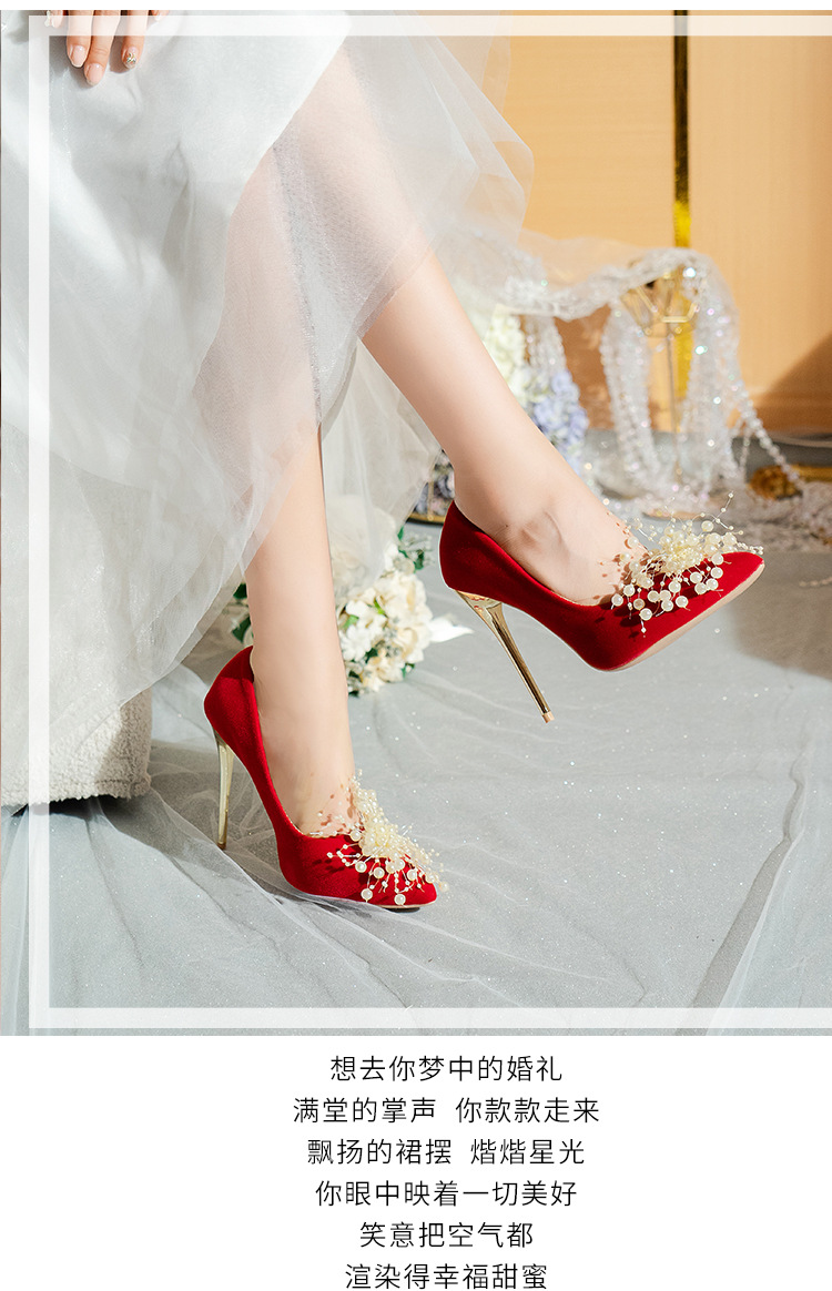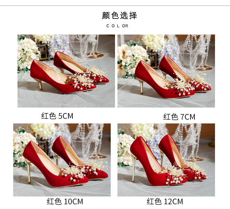 10CM 하이힐 여성의 뾰족한 얕은 스틸레토 힐 45 플러스 사이즈 싱글 슈즈 여성 펄 패션 슈즈 신부 웨딩 슈즈 여성스토어 가기