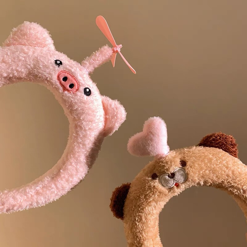 돼지 고기 팬 헤어 후프 여성의 2024 새로운 스타일 풀 코드 플라이 서클 재미 귀여운 워시 페이스 헤어 후프 헤어 액세서리