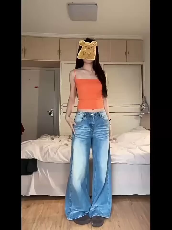 아메리칸 스타일 레트로 와이드 레그 청바지 여성의 2024 년 여름 새로운 물 세척 블루 루즈 슬리밍 스트레이트 팬츠스토어 가기