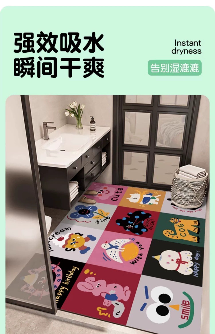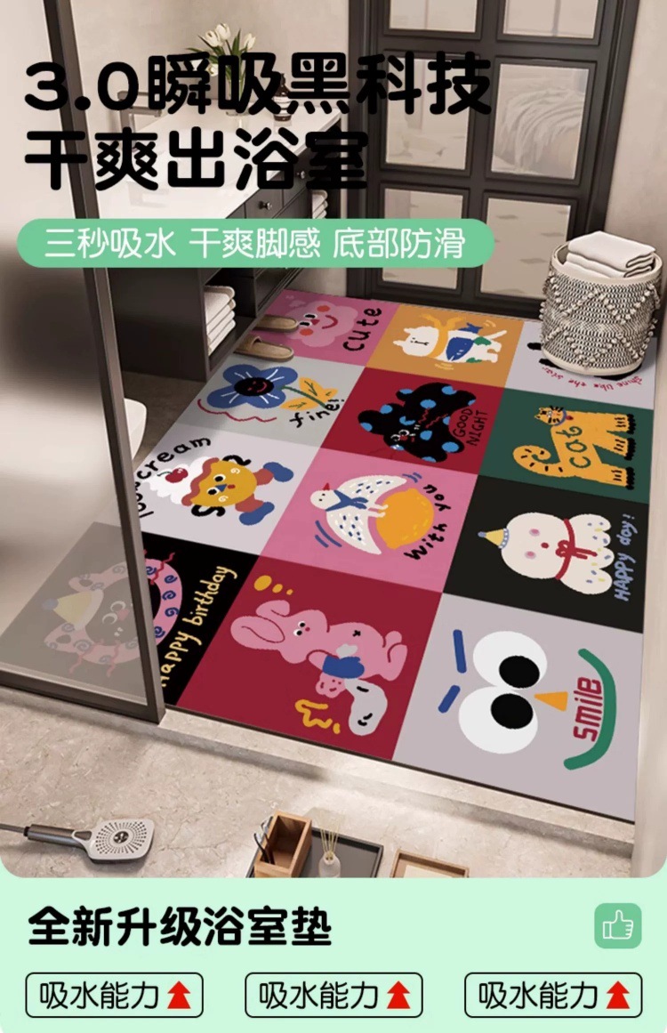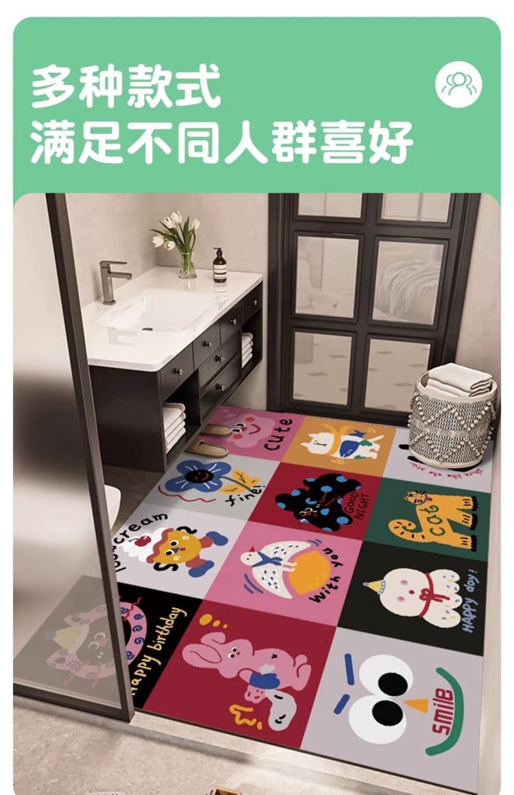 만화 욕실 풀 샵 바닥 매트 다이아몬드 머드 바닥 매트 흡수성 미끄럼 방지 발 매트 욕실 화장실 빠른 건조 더러운 방지 카펫