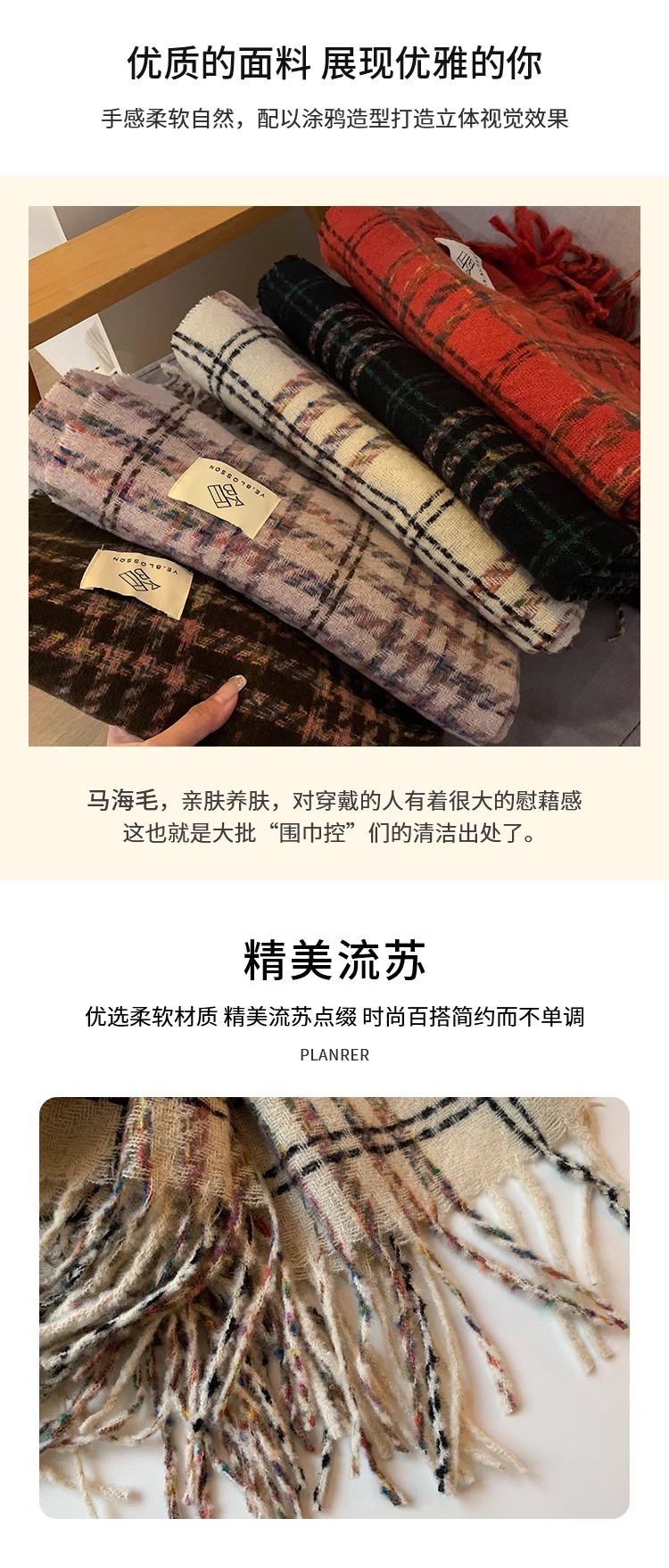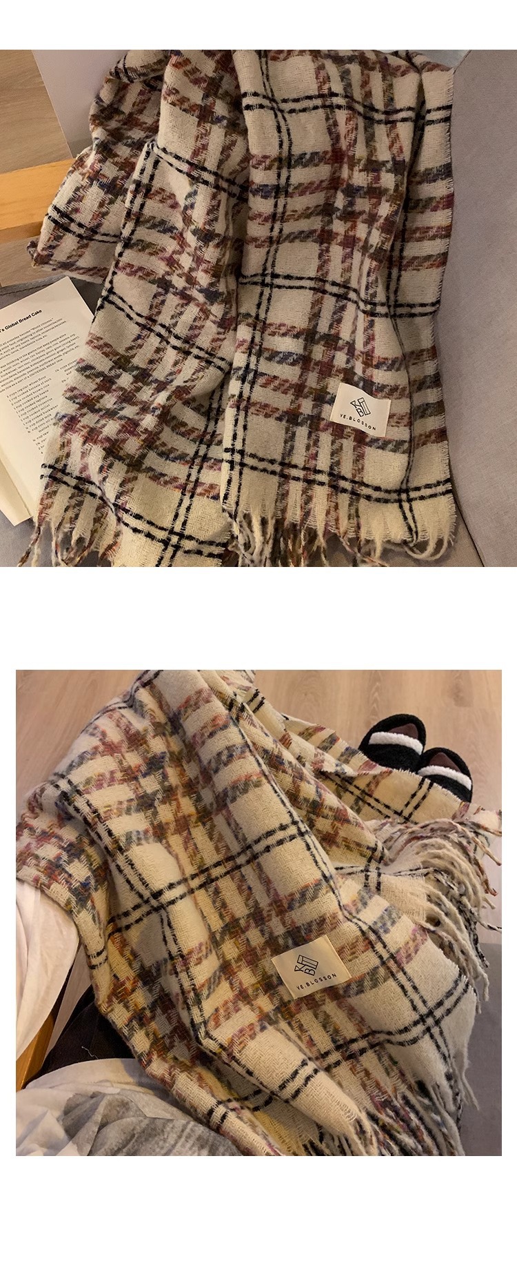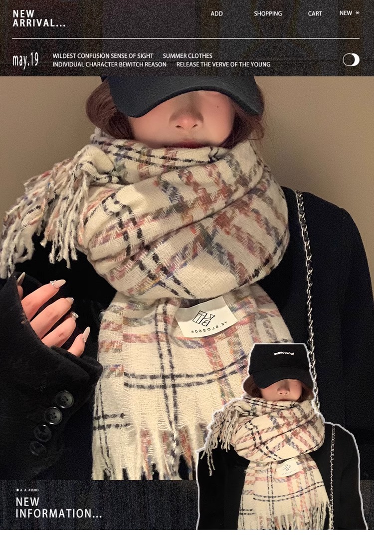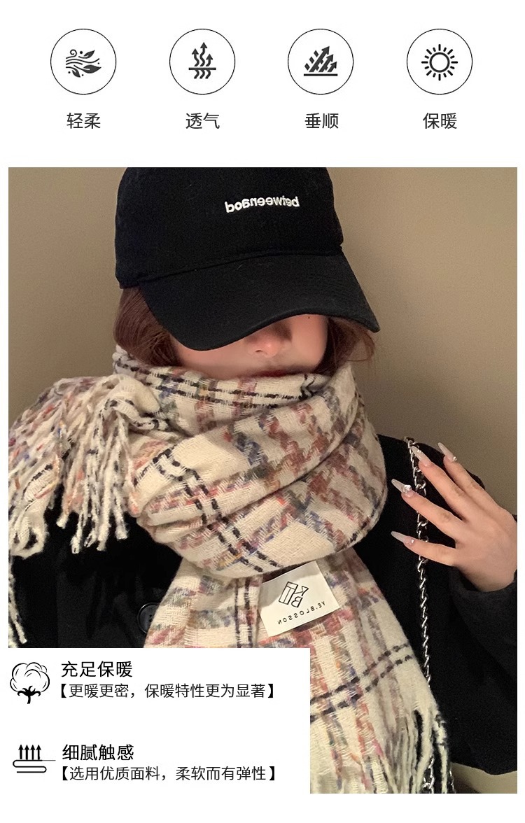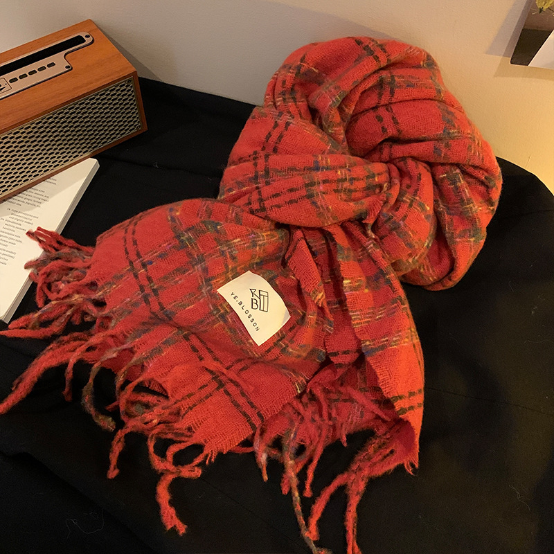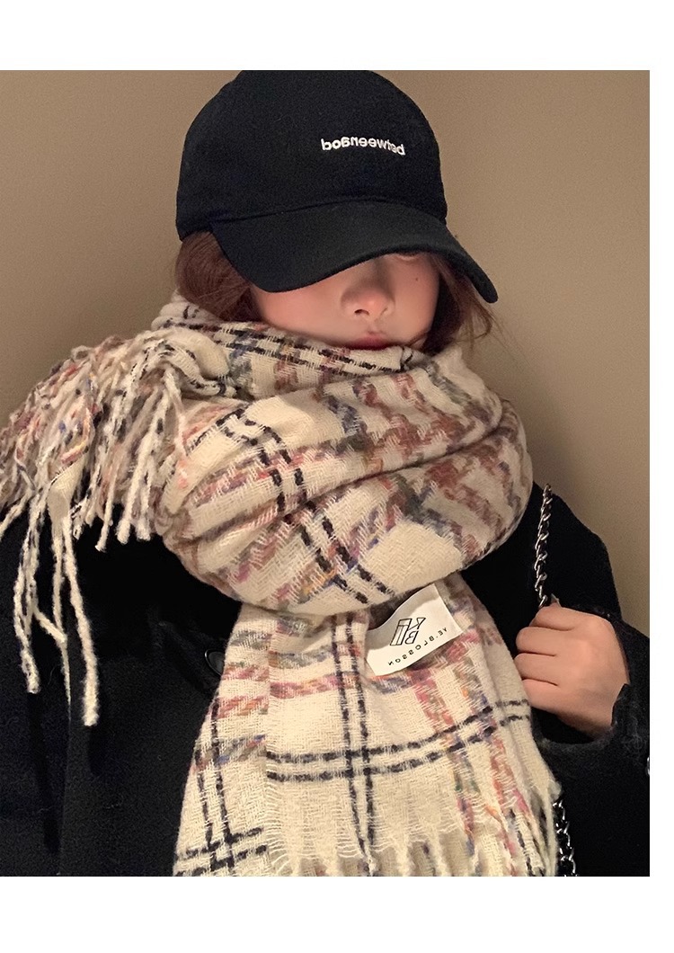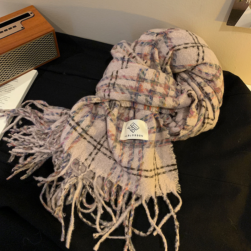 한국 분위기 격자 무늬 술 스카프 여성의 가을과 겨울 2024 고급 따뜻한 니트 커플의 목 목도리스토어 가기