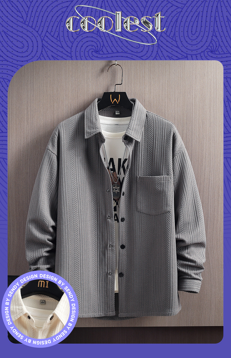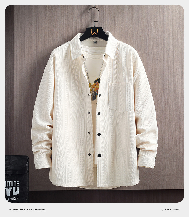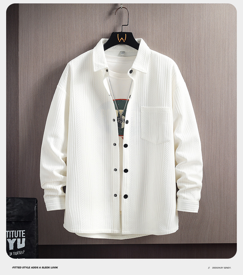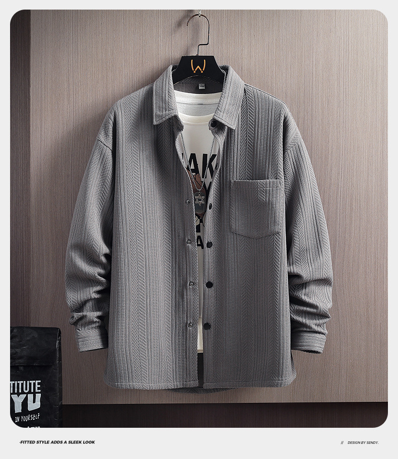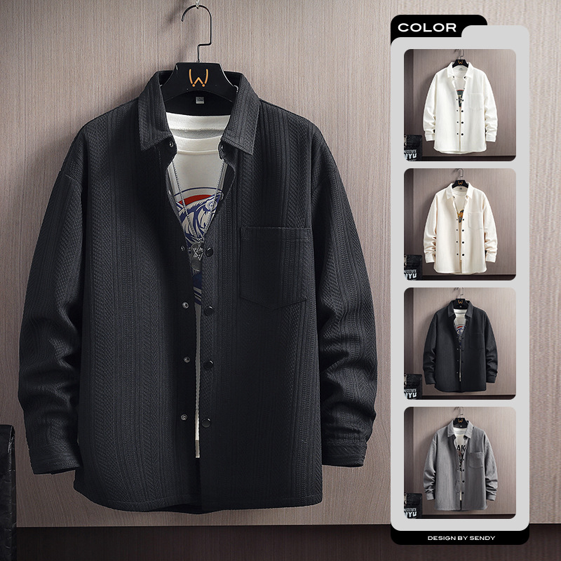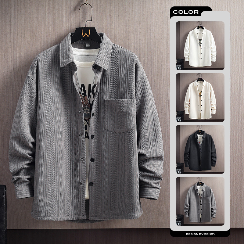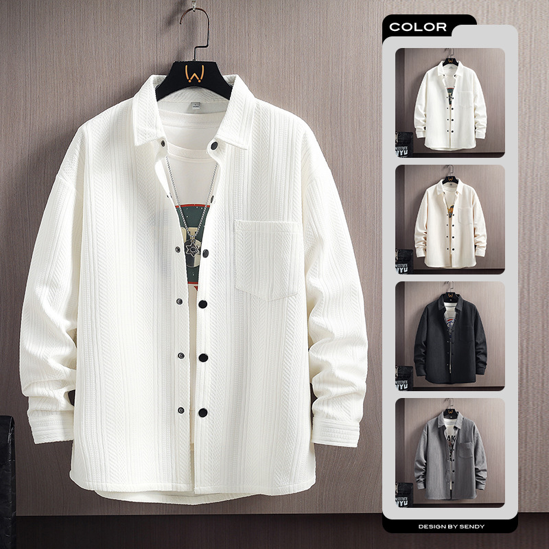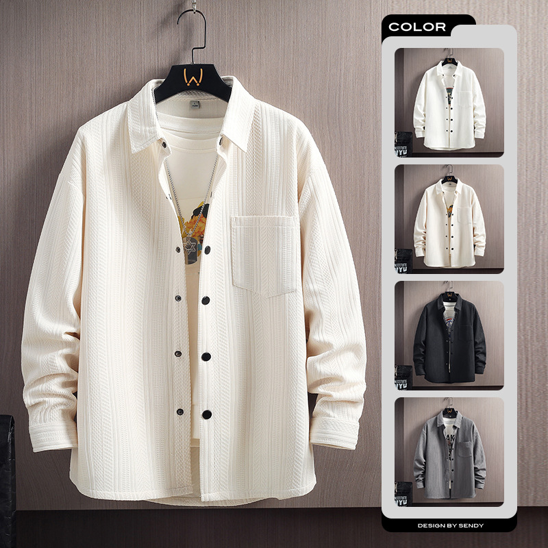 긴 소매 셔츠 남자의 봄과 여름 자카드 300g 캐주얼 작업복 셔츠 남자의 재킷 커플 셔츠