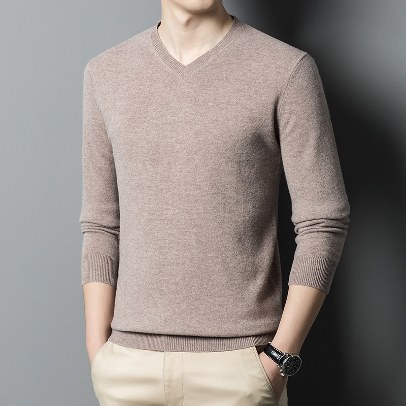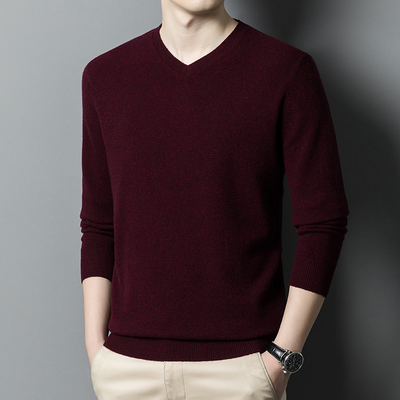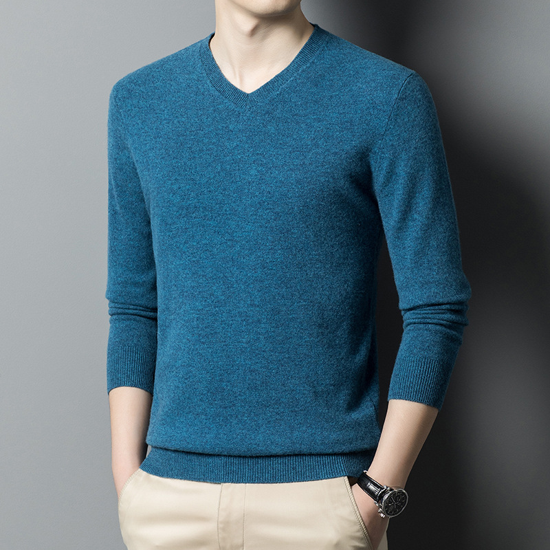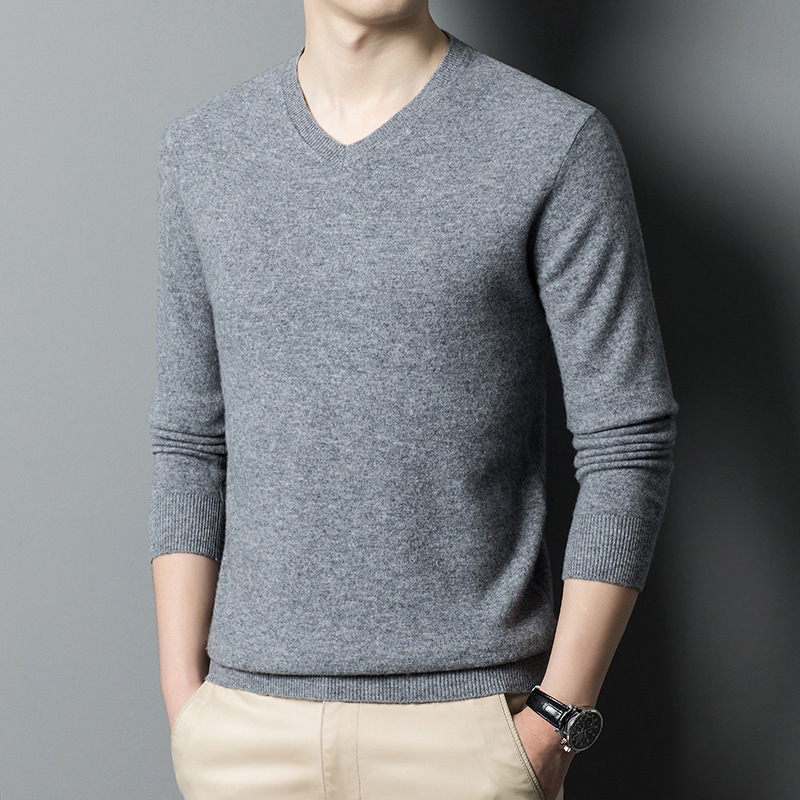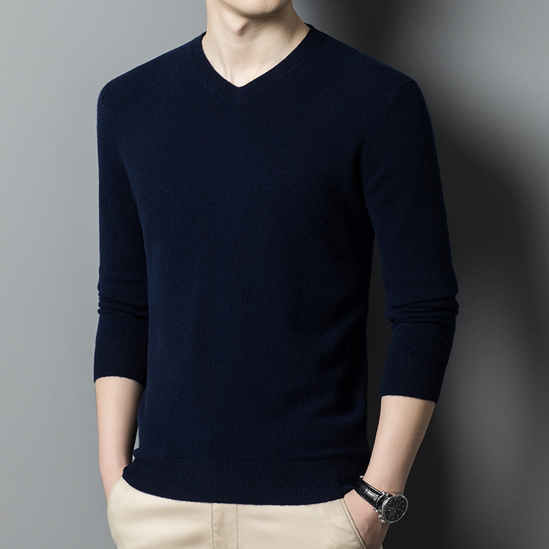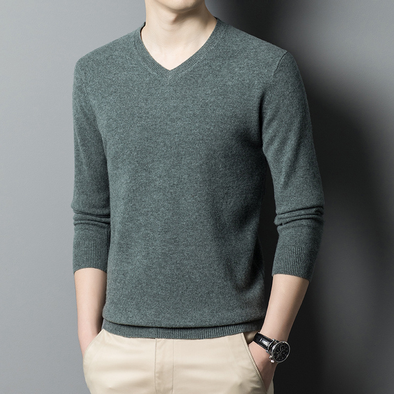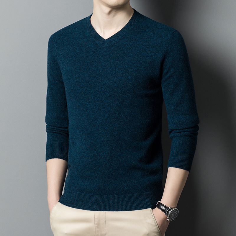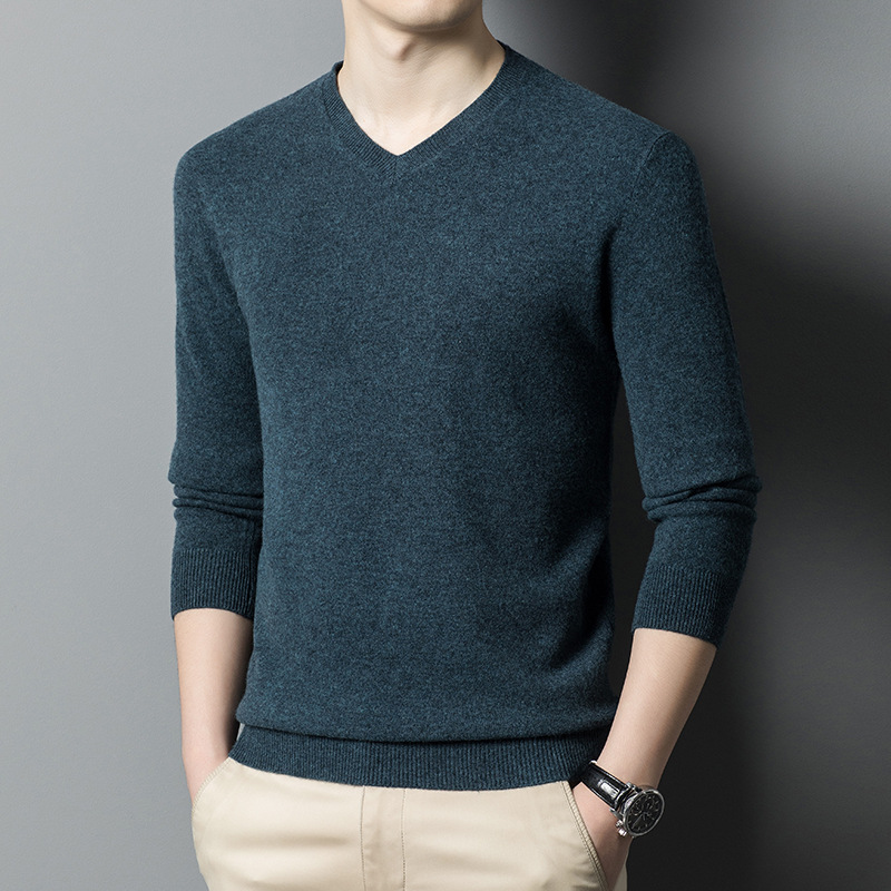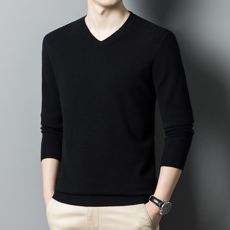 국경 도매 V 넥 스웨터 남성용 2024 년 봄과 가을 새로운 치킨 하트 칼라 긴 소매 단색 니트 남성 바닥 셔츠