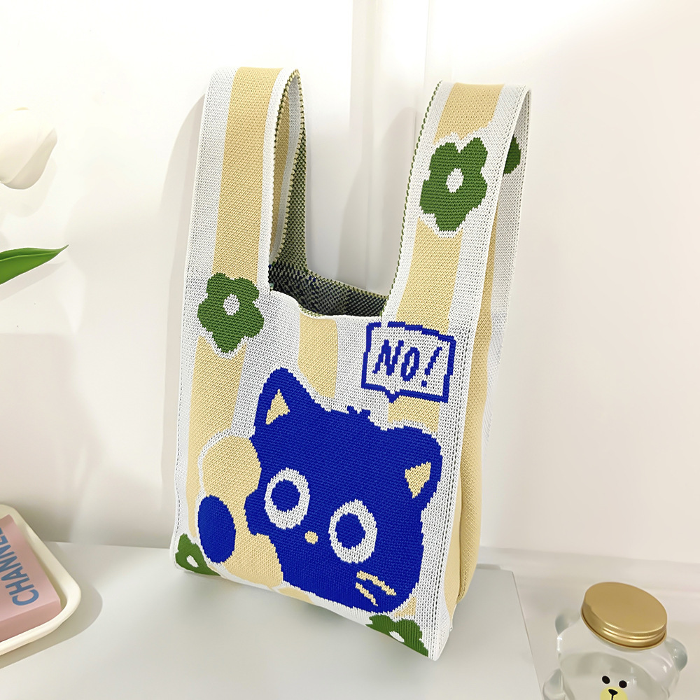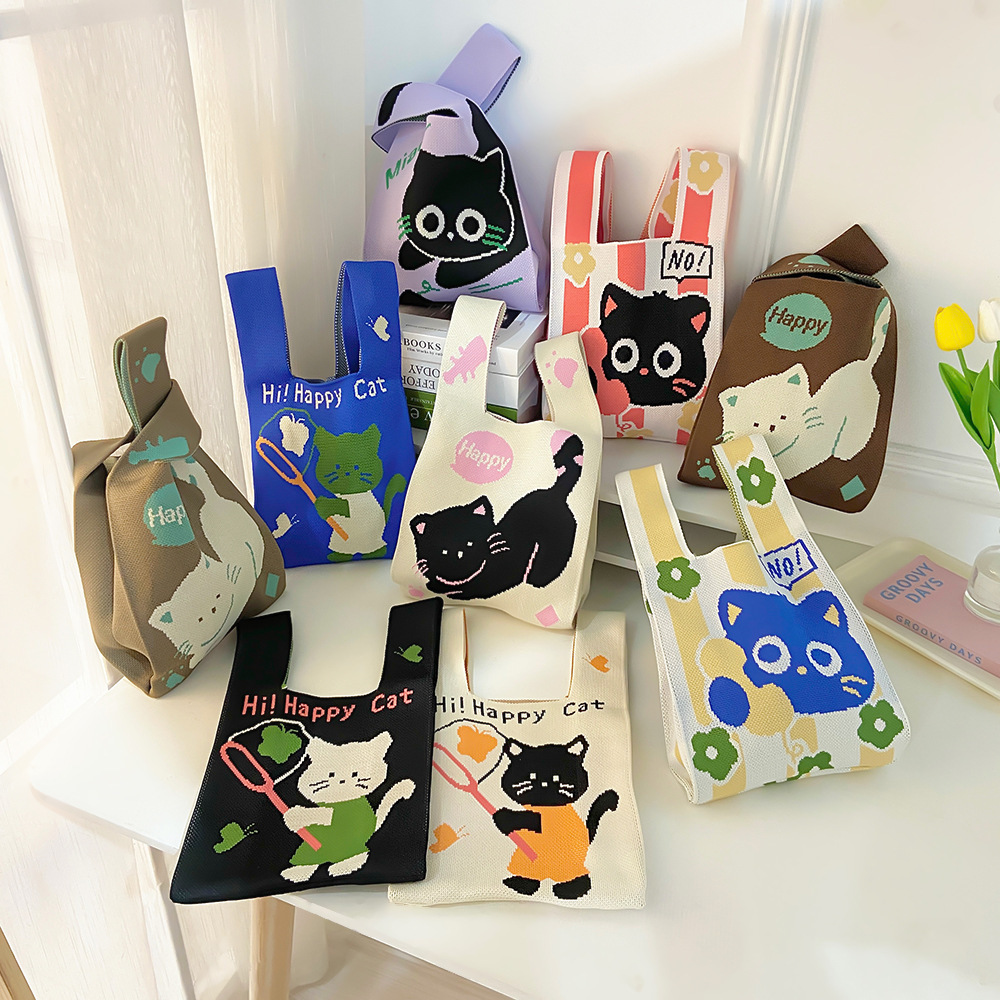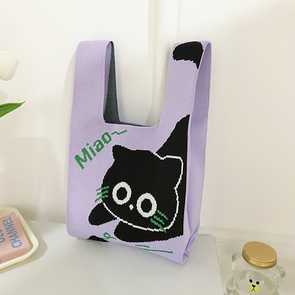 니트 가방 틈새 디자인 귀여운 고양이 핸드백 대용량 핸드 백 캐주얼 작은 광장 가방 도시락 가방스토어 가기