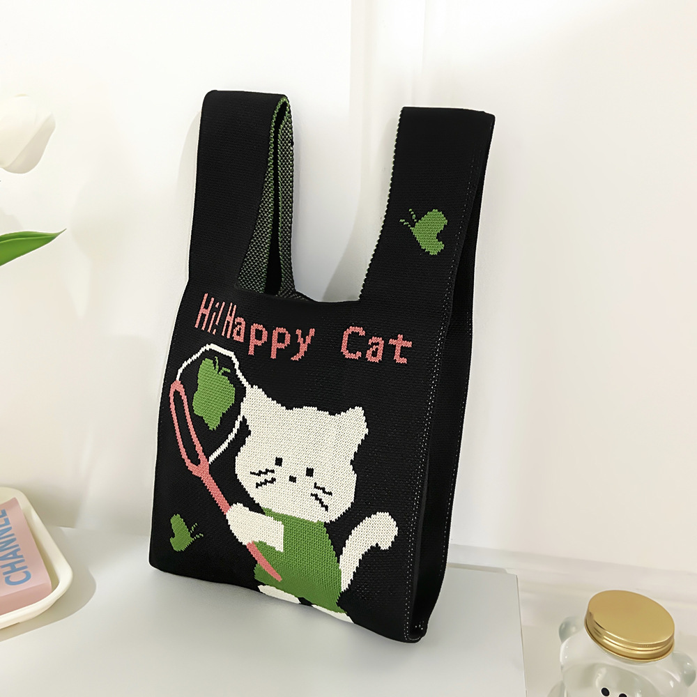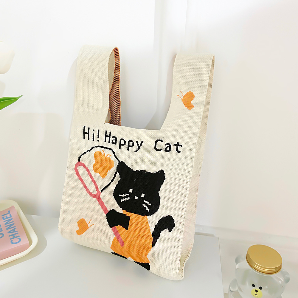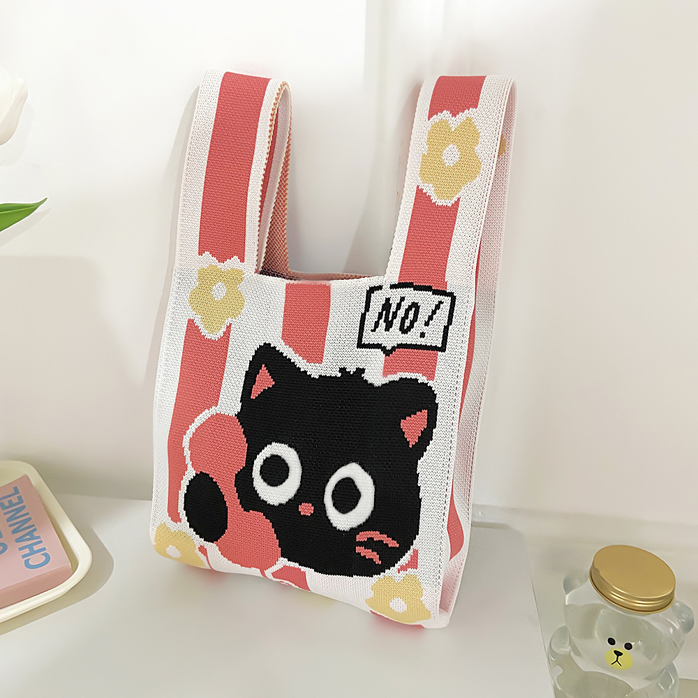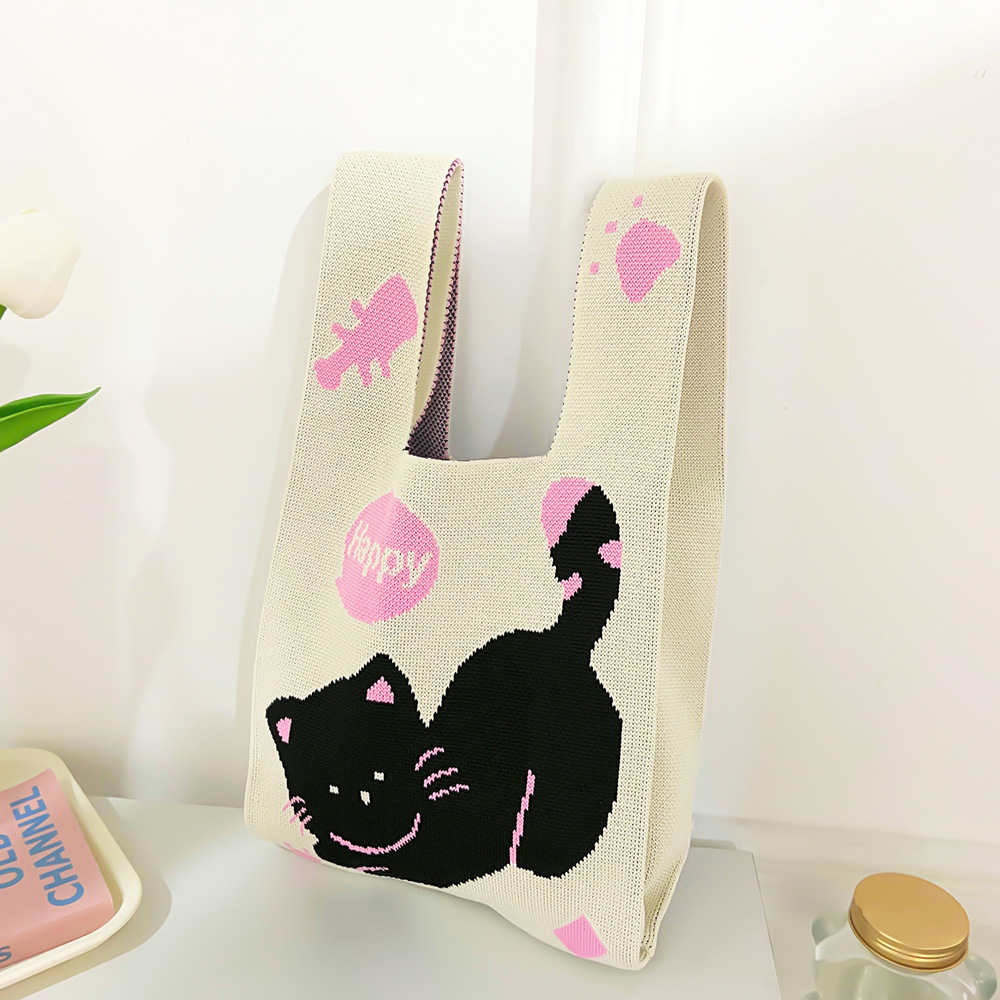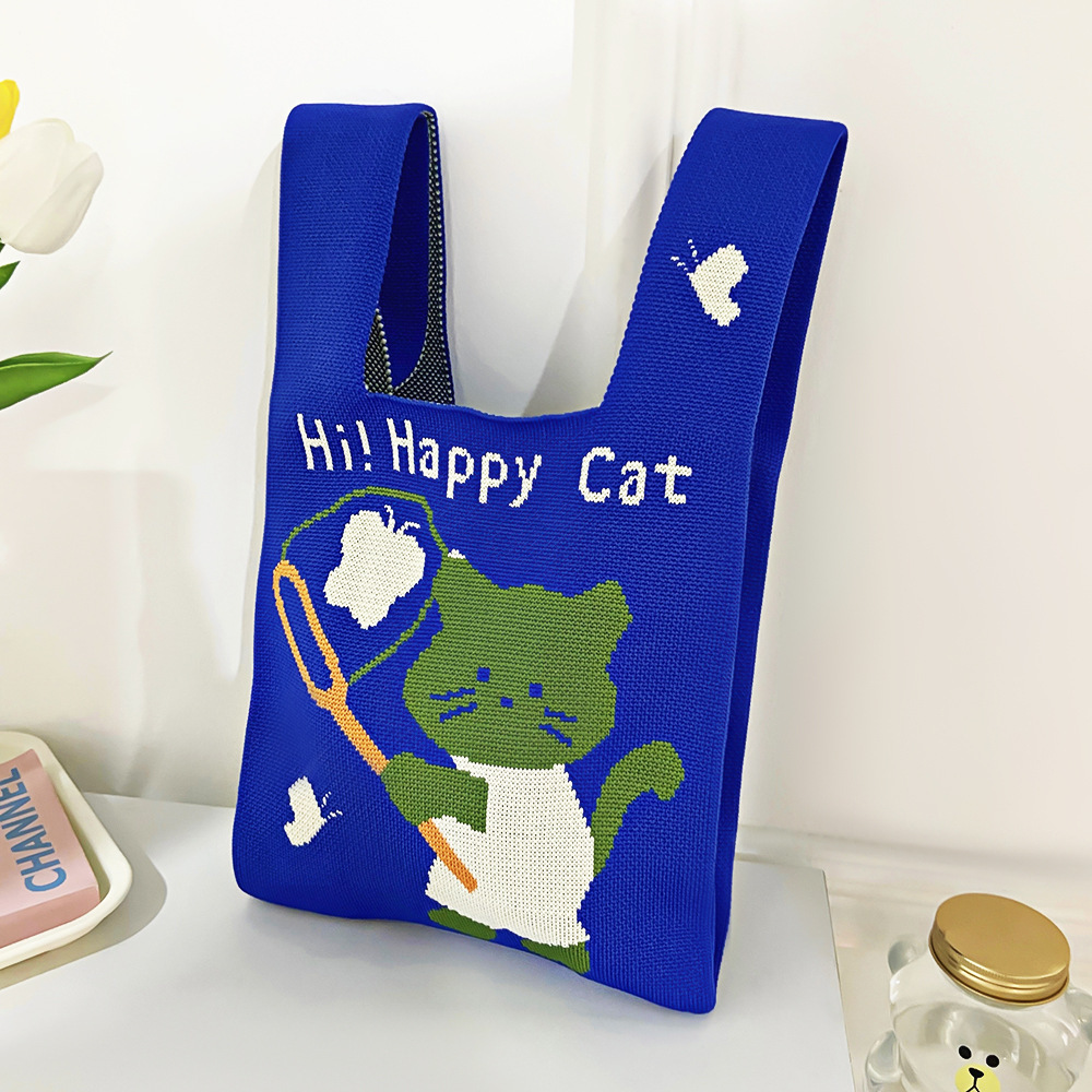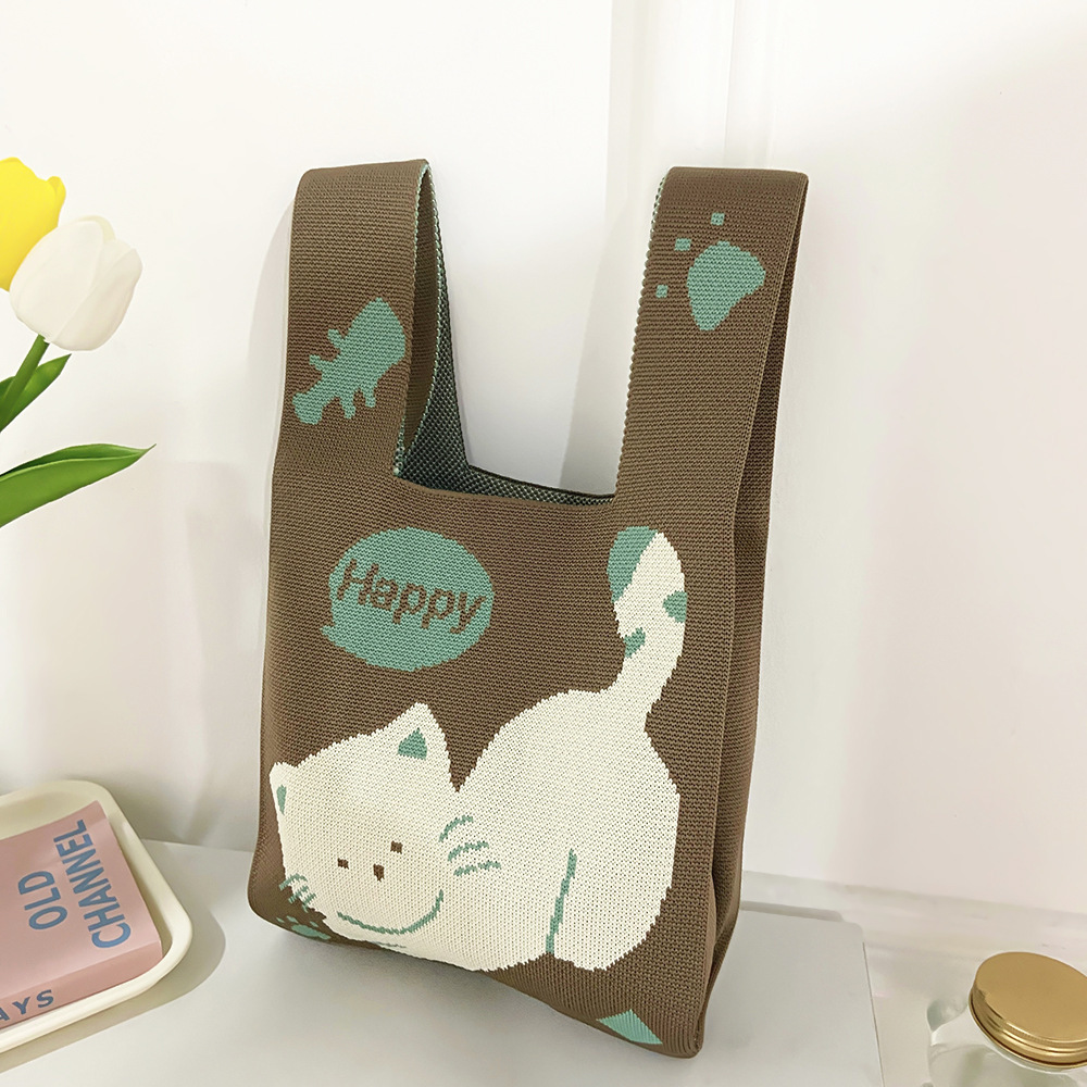 니트 가방 틈새 디자인 귀여운 고양이 핸드백 대용량 핸드 백 캐주얼 작은 광장 가방 도시락 가방