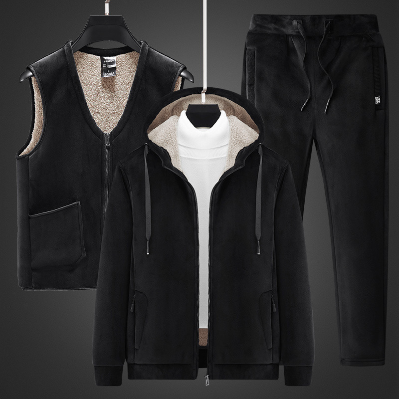 3 피스 겨울 실버 폭스 벨벳 플러스 사이즈 기모 운동복 세트 남자 두꺼운 따뜻한 양고기 벨벳 재킷 남자 운동복